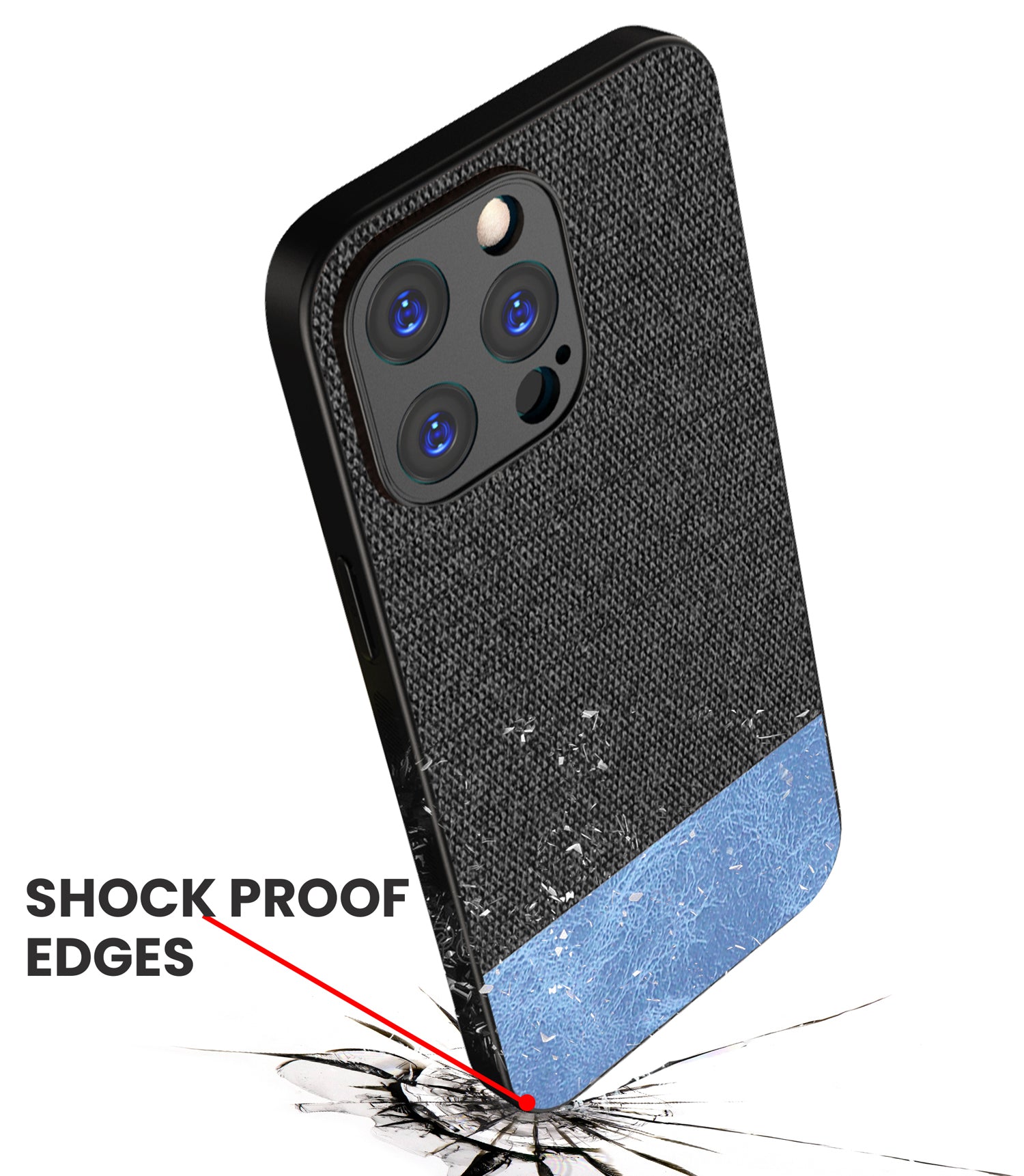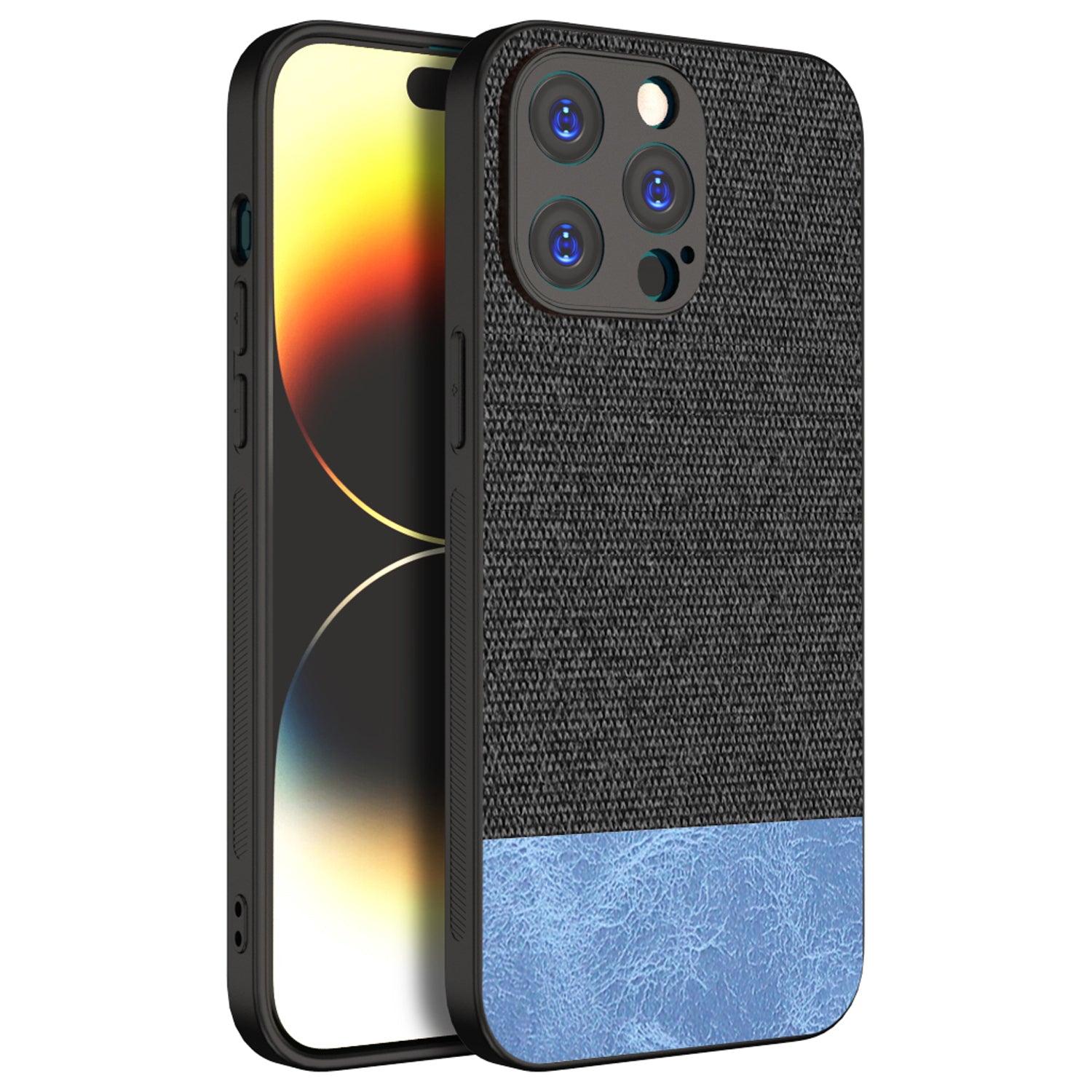 Mobizang Soft Fabric & Leather Hybrid Protective Back Cover for Apple iPhone 15 Pro | Shockproof Slim Hard Anti Slip Back Case (Black::Blue)