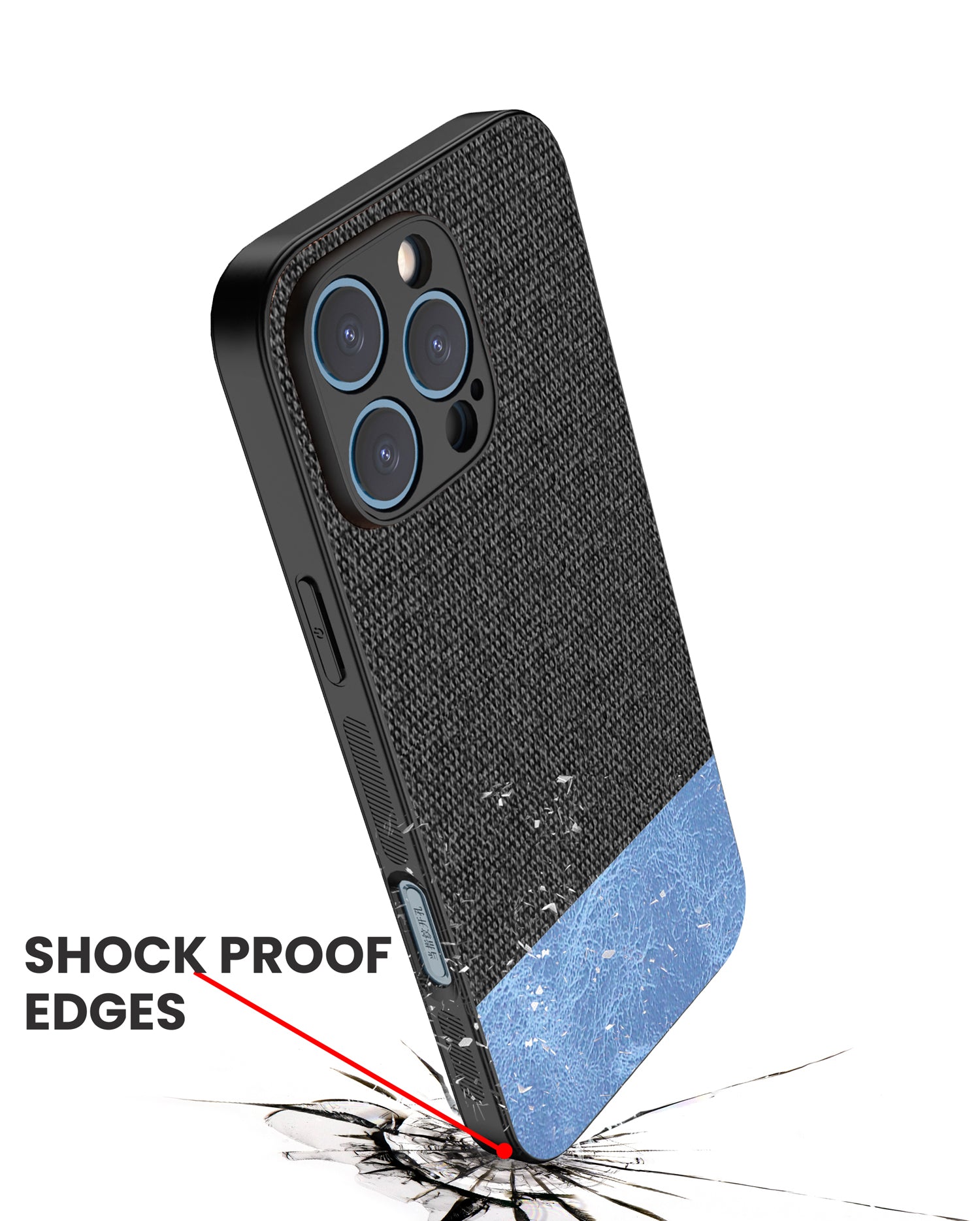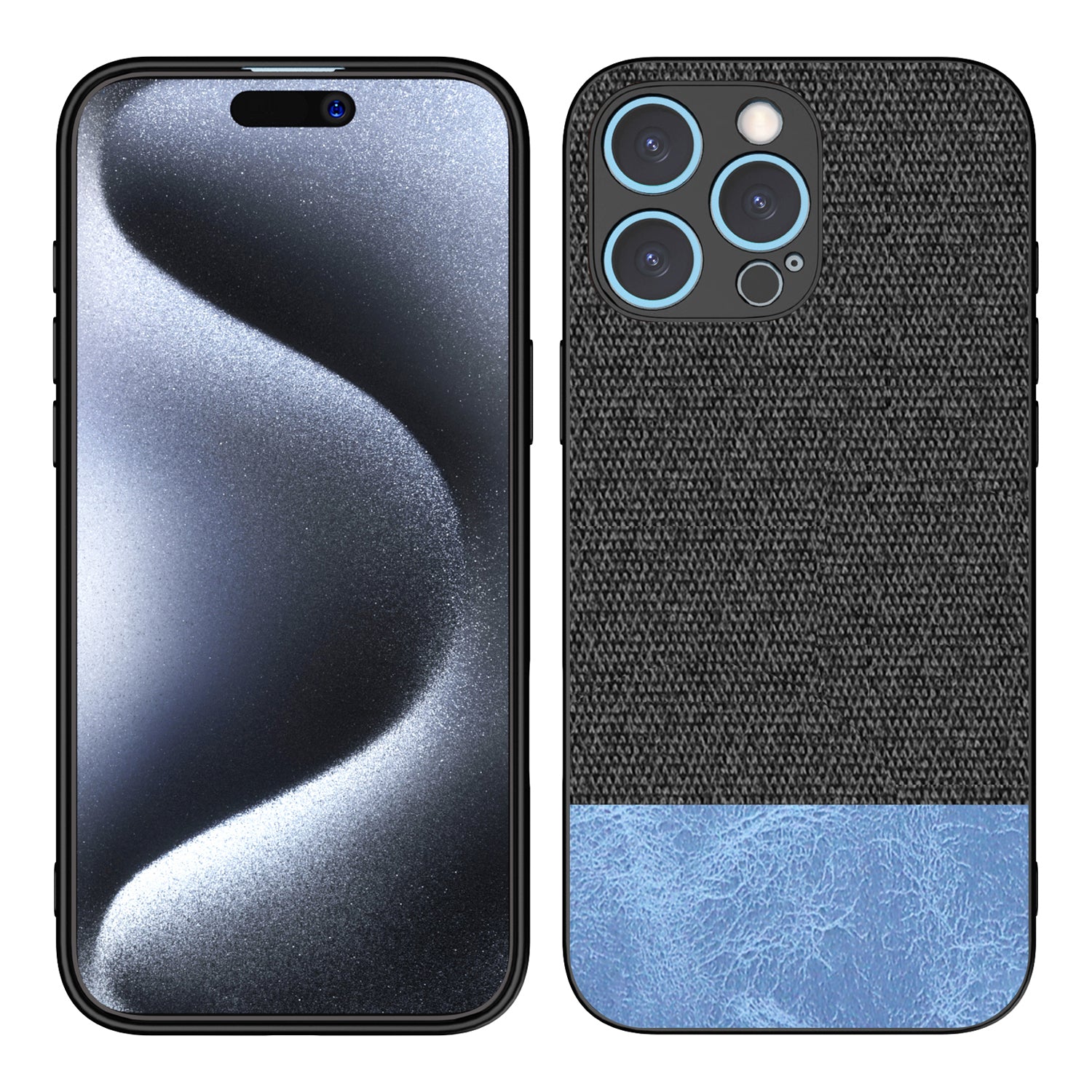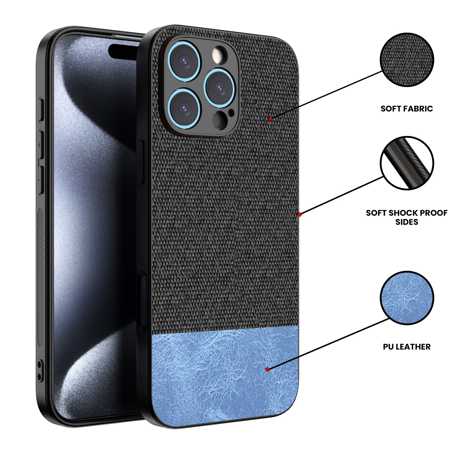 Mobizang Soft Fabric & Leather Hybrid Protective Back Cover for Apple iPhone 16 Pro | Shockproof Slim Hard Anti Slip Back Case (Black,Blue)