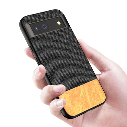 Mobizang Soft Fabric & Leather Hybrid Protective Back Cover for Google Pixel 8A | Shockproof Slim Hard Anti Slip Back Case (Black , Brown)