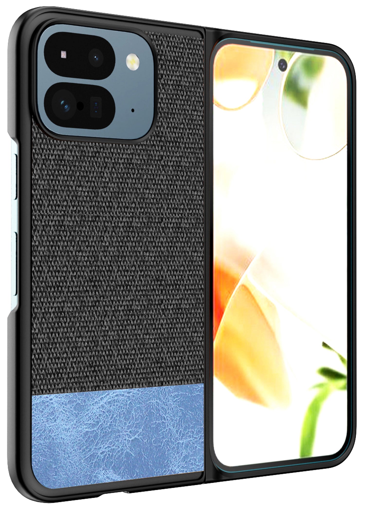 Mobizang Soft Fabric & Leather Hybrid Protective Back Cover for Google Pixel 9 Pro Fold | Shockproof Slim Hard Anti Slip Back Case (Black,Blue)