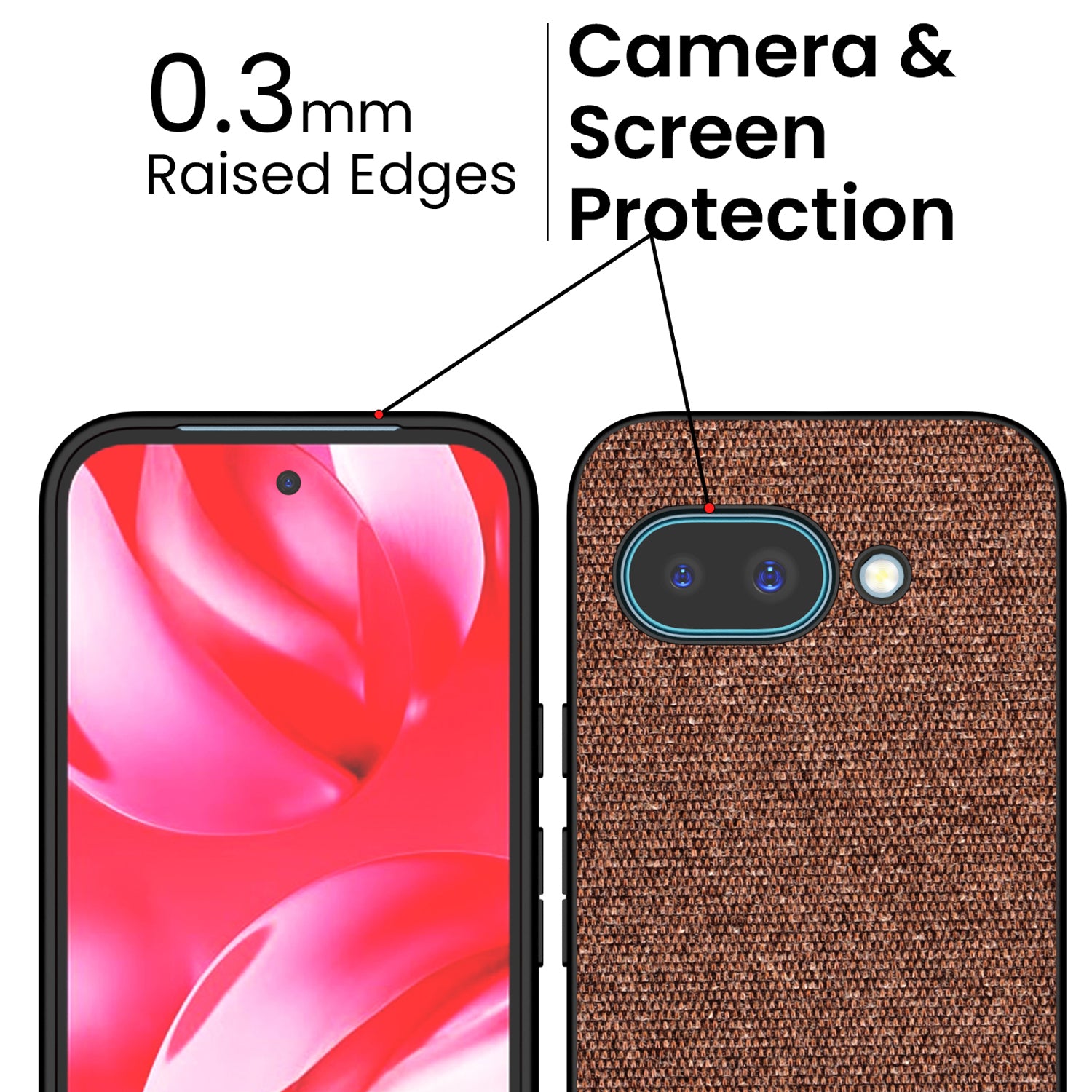 Mobizang Soft Fabric & Leather Hybrid Protective Back Cover for Google Pixel 9A | Shockproof Slim Hard Anti Slip Back Case (Brown)