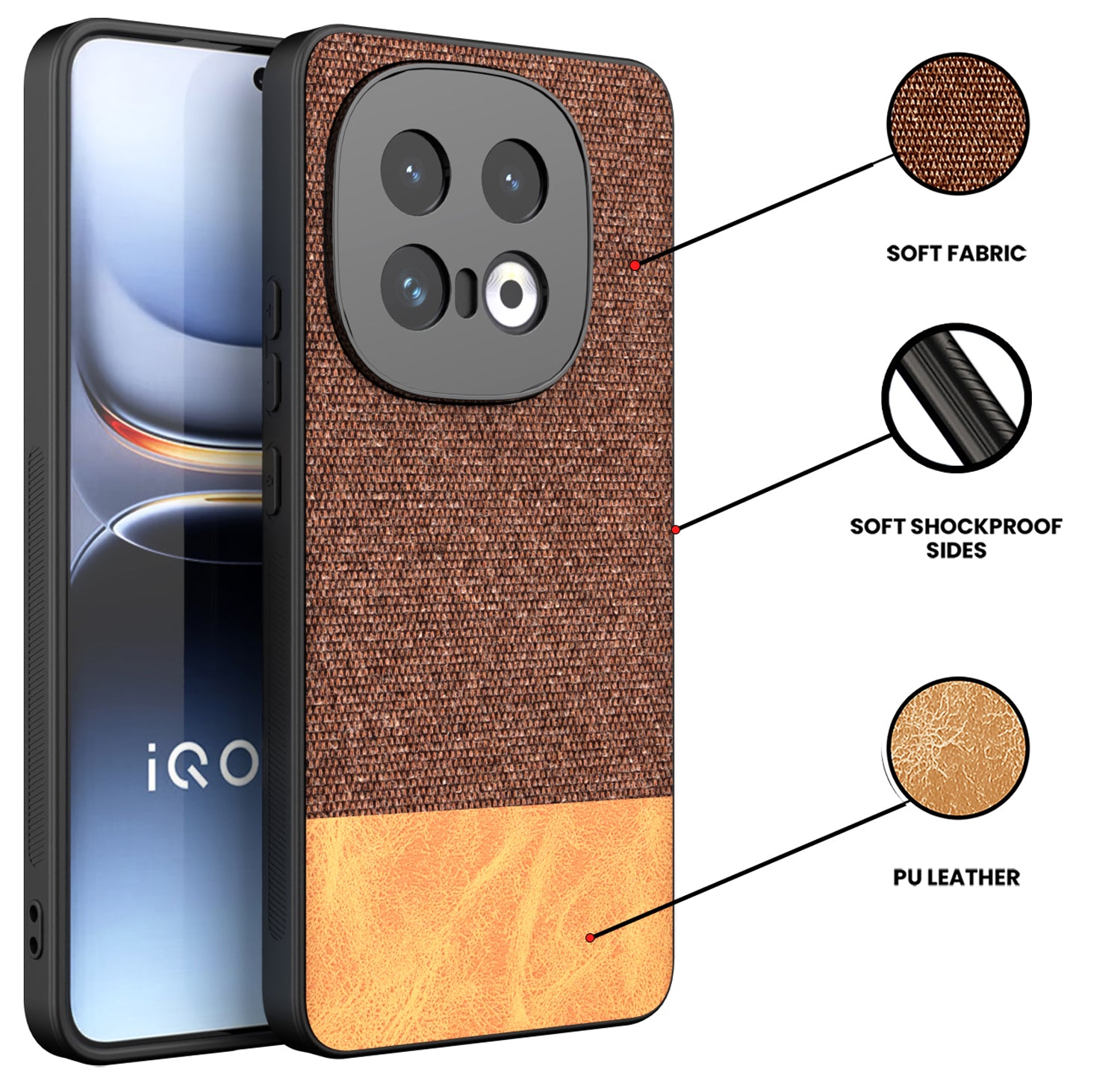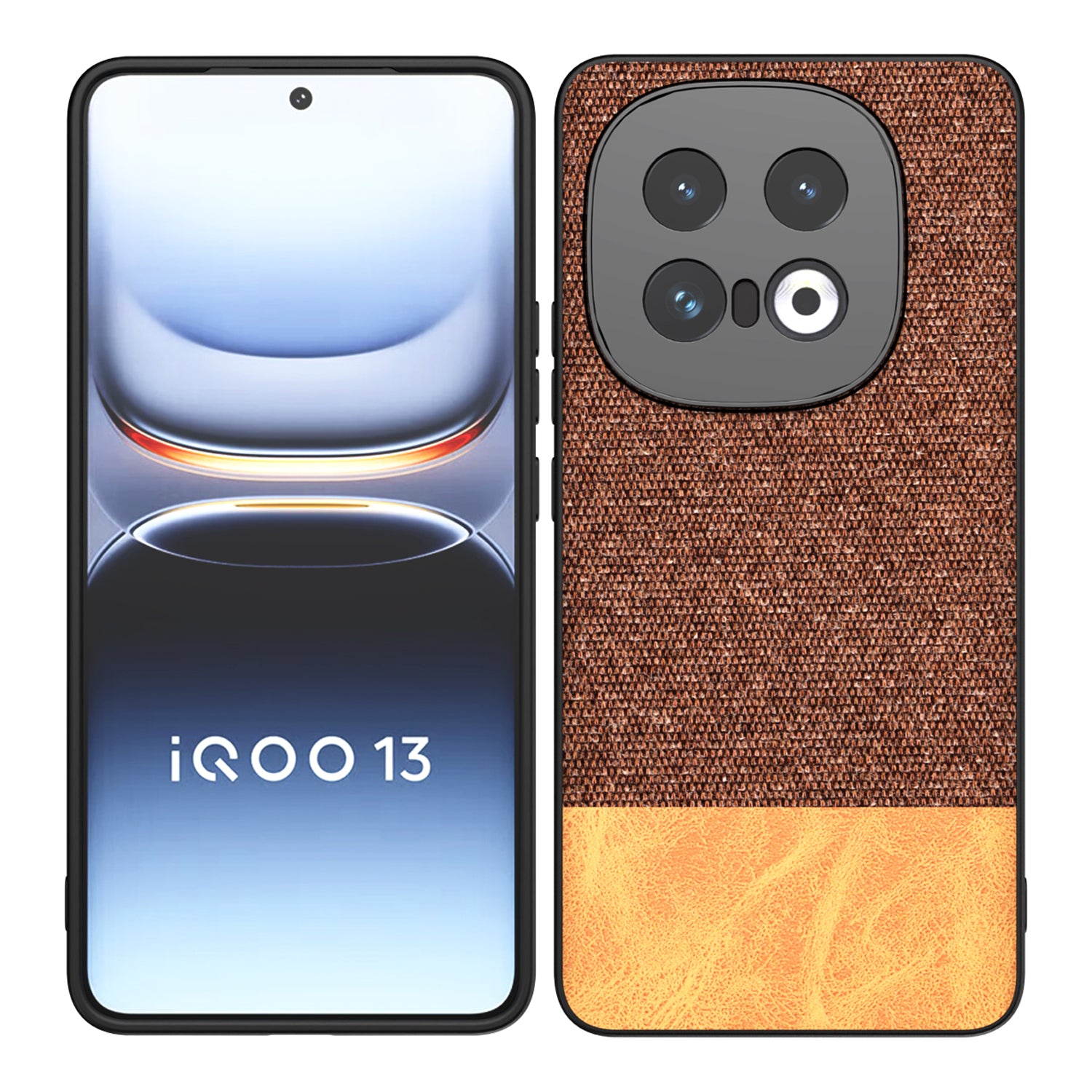 Mobizang Soft Fabric & Leather Hybrid Protective Back Cover for Iqoo 13 (5G) | Shockproof Slim Hard Anti Slip Back Case (Brown)