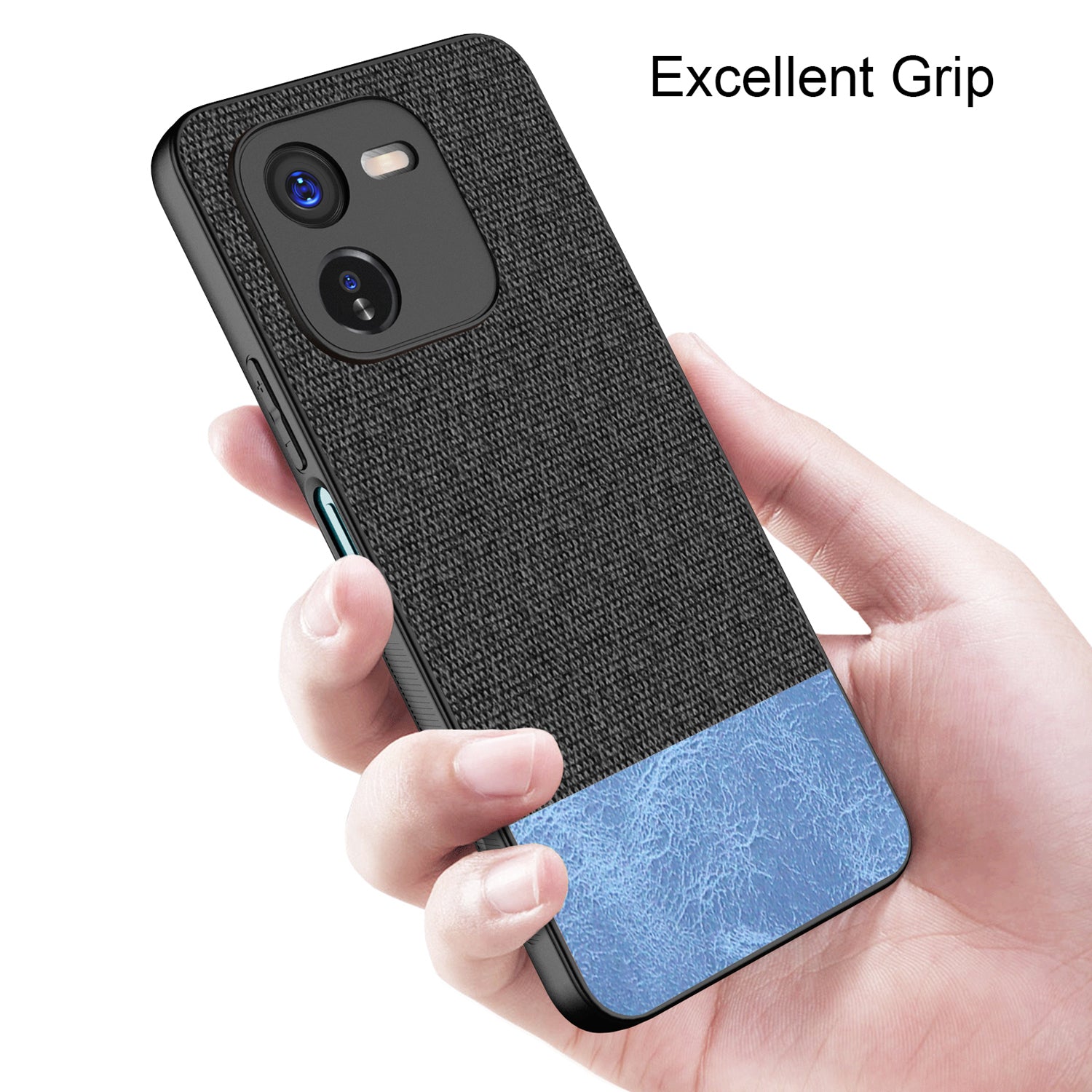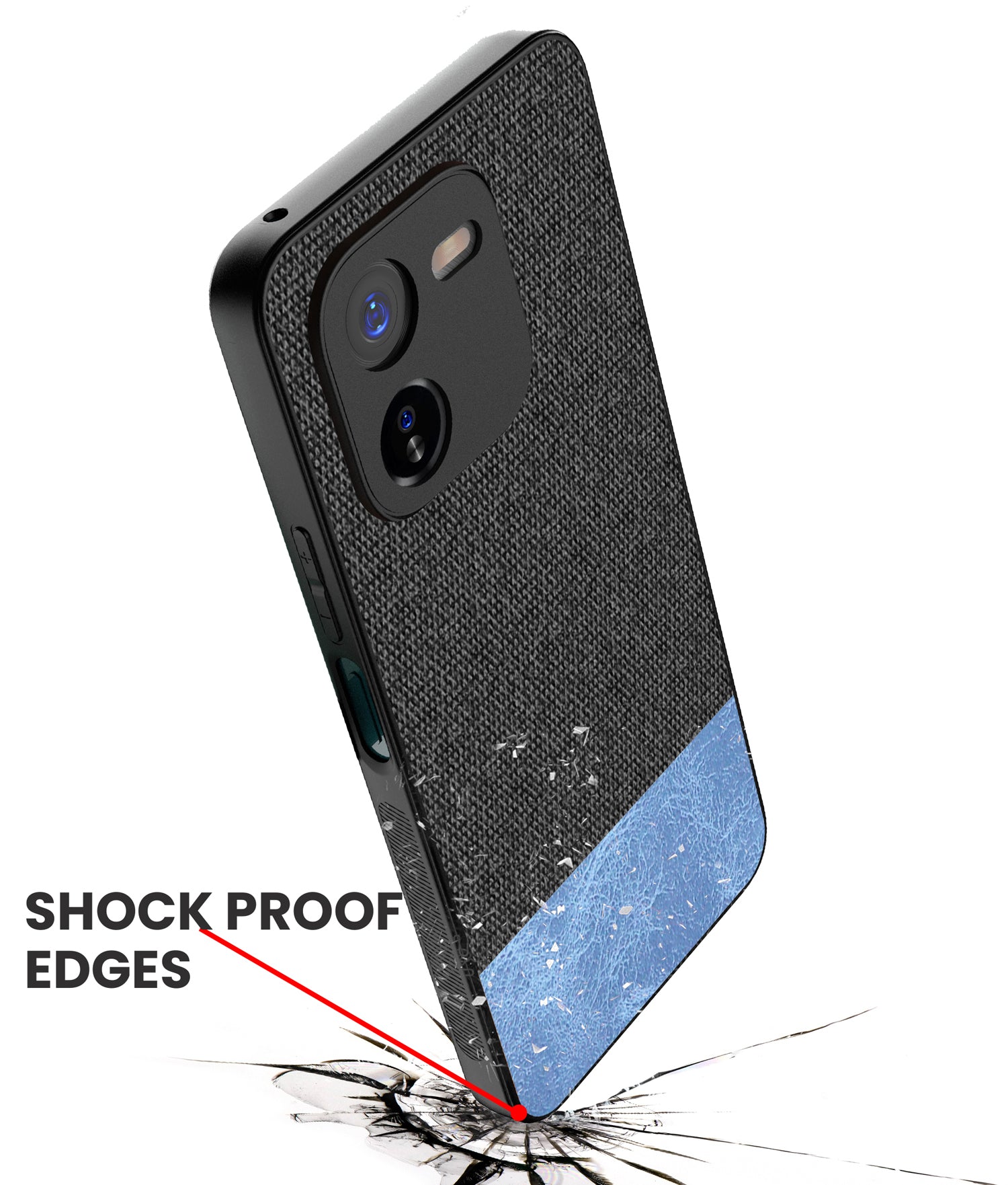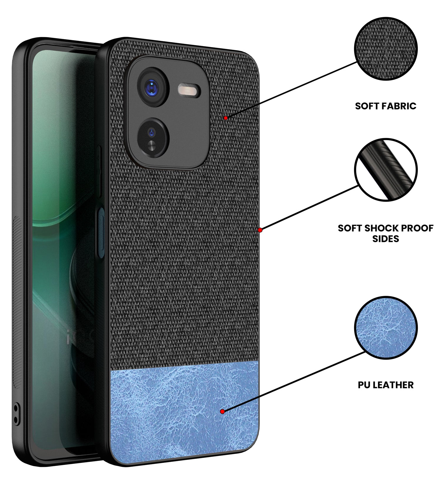Mobizang Soft Fabric & Leather Hybrid Protective Back Cover for IQOO Z9X | Shockproof Slim Hard Anti Slip Back Case (Black,Blue)