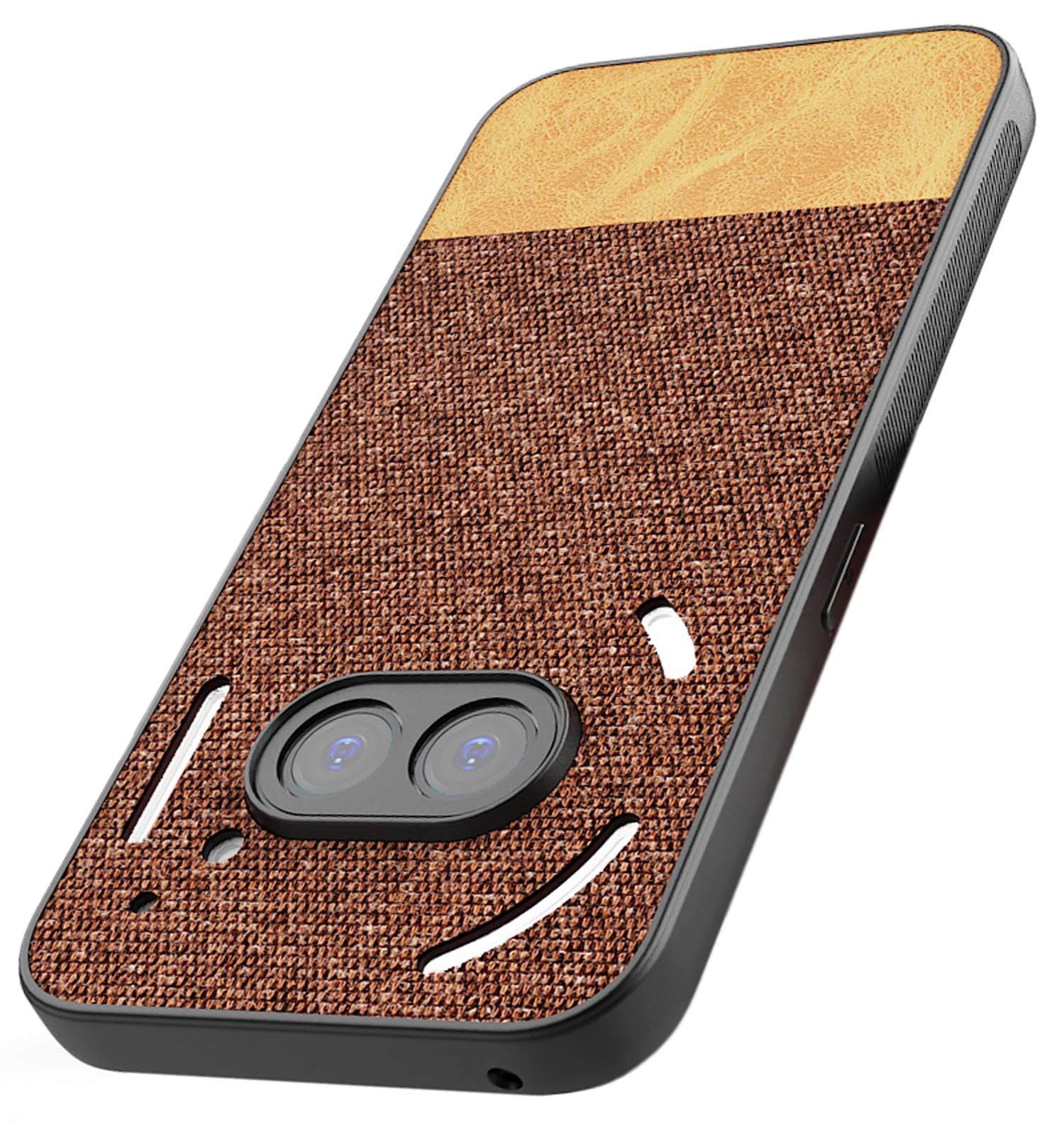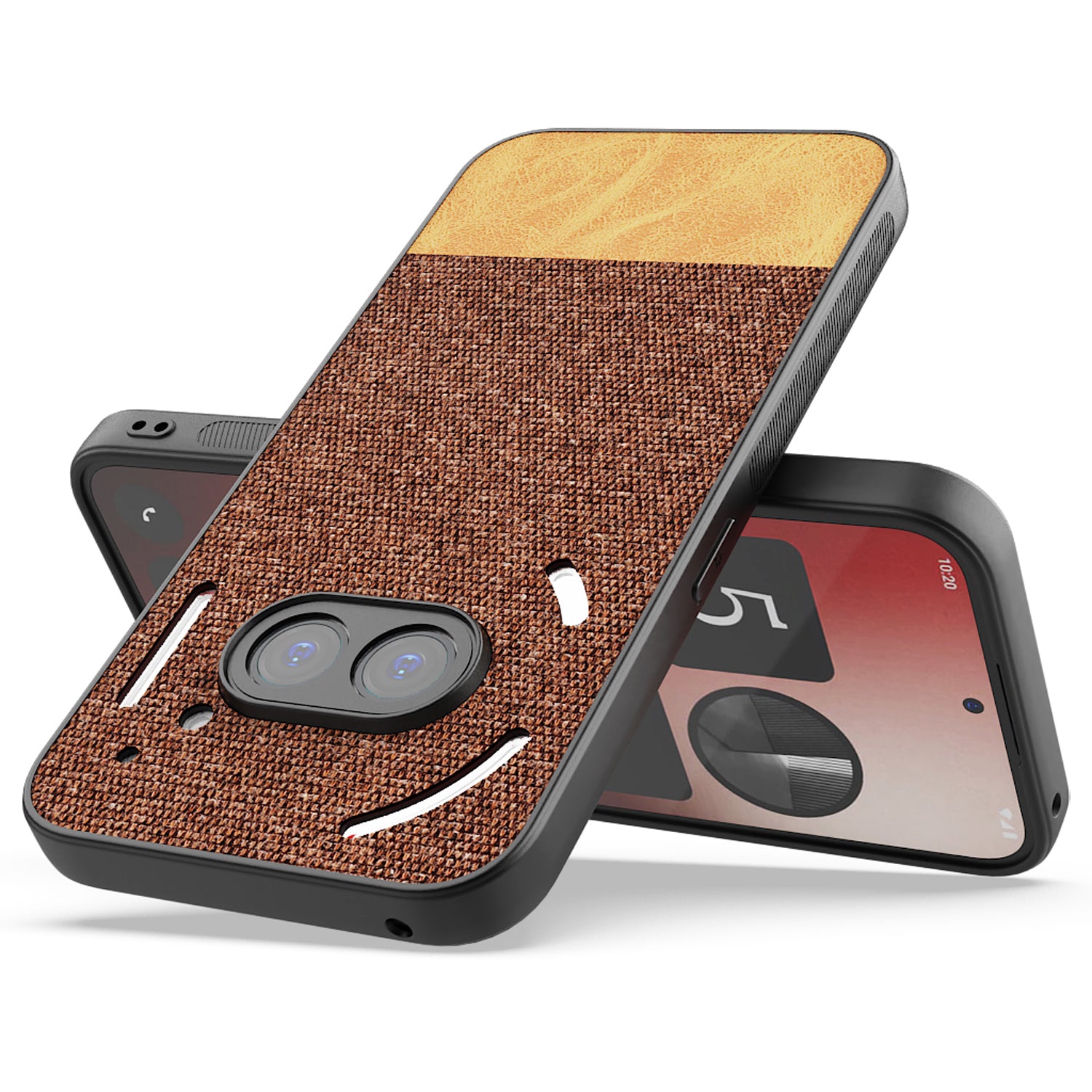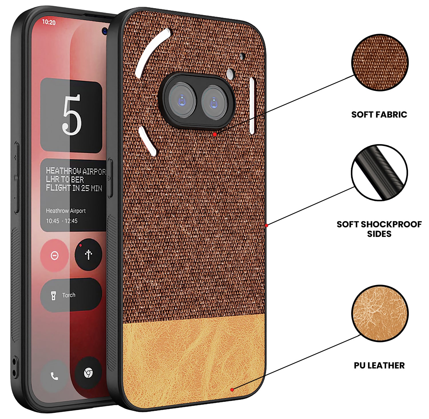 Mobizang Soft Fabric & Leather Hybrid Protective Back Cover for Nothing Phone 2A | Shockproof Slim Hard Anti Slip Back Case (Brown)