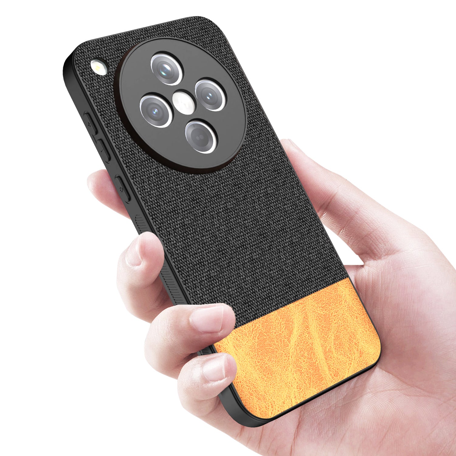 Mobizang Soft Fabric & Leather Hybrid Protective Back Cover for Oppo Find X8 | Shockproof Slim Hard Anti Slip Back Case (Black,Brown)