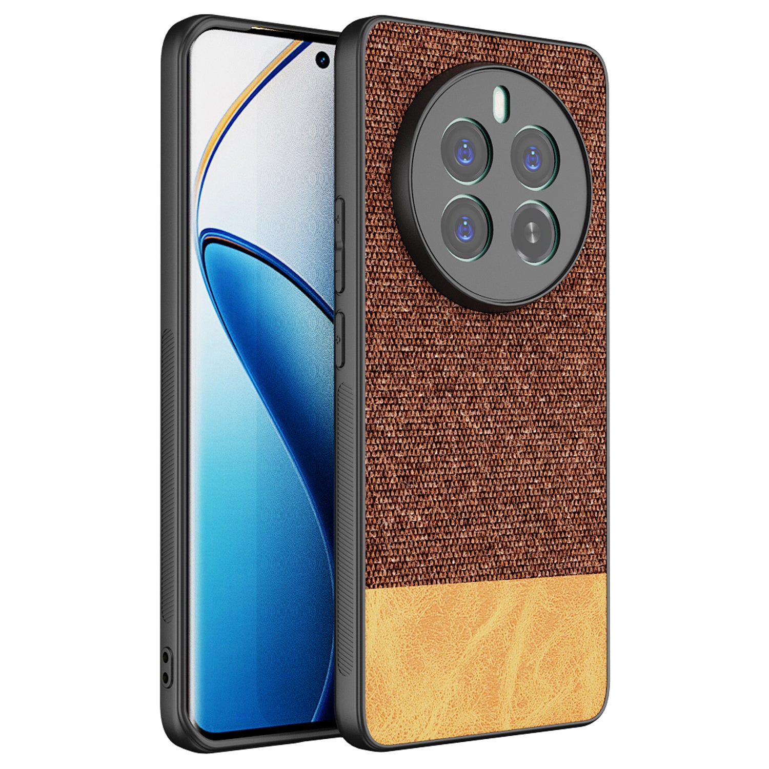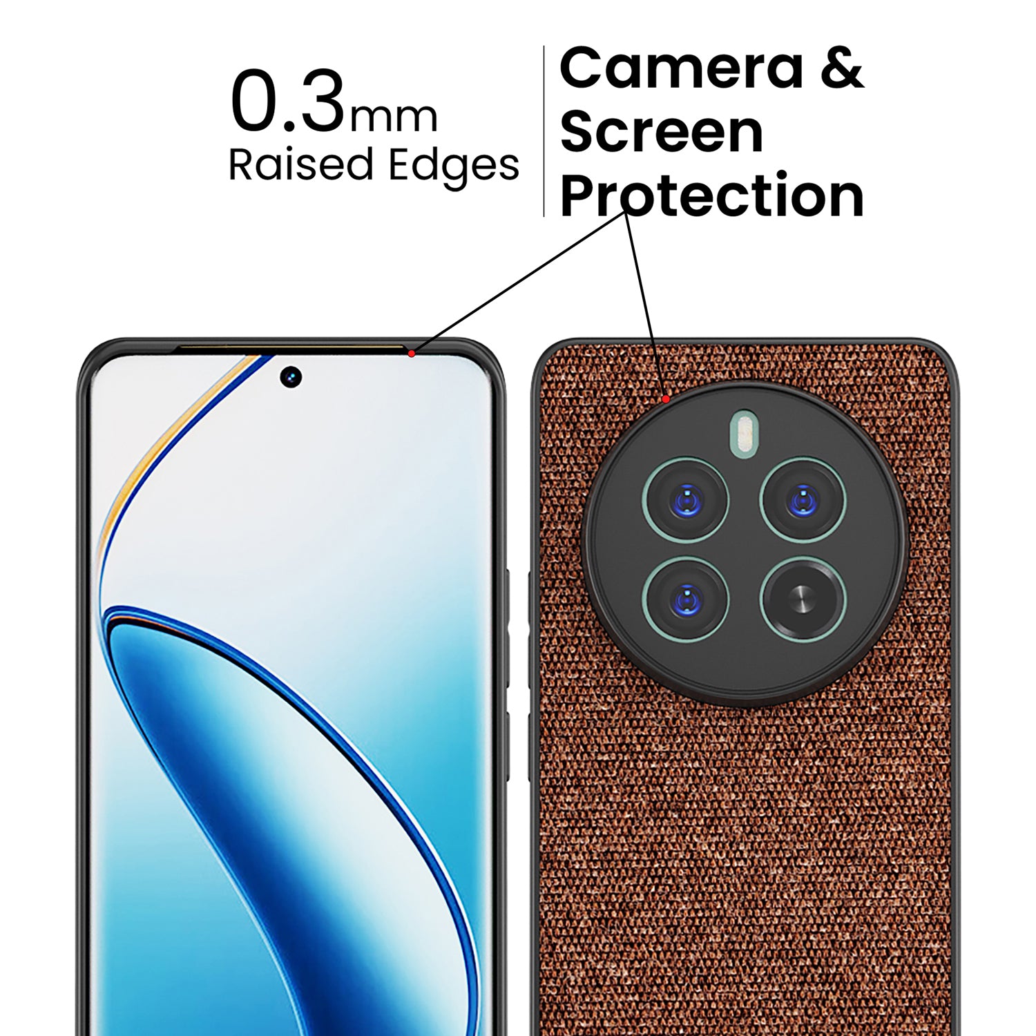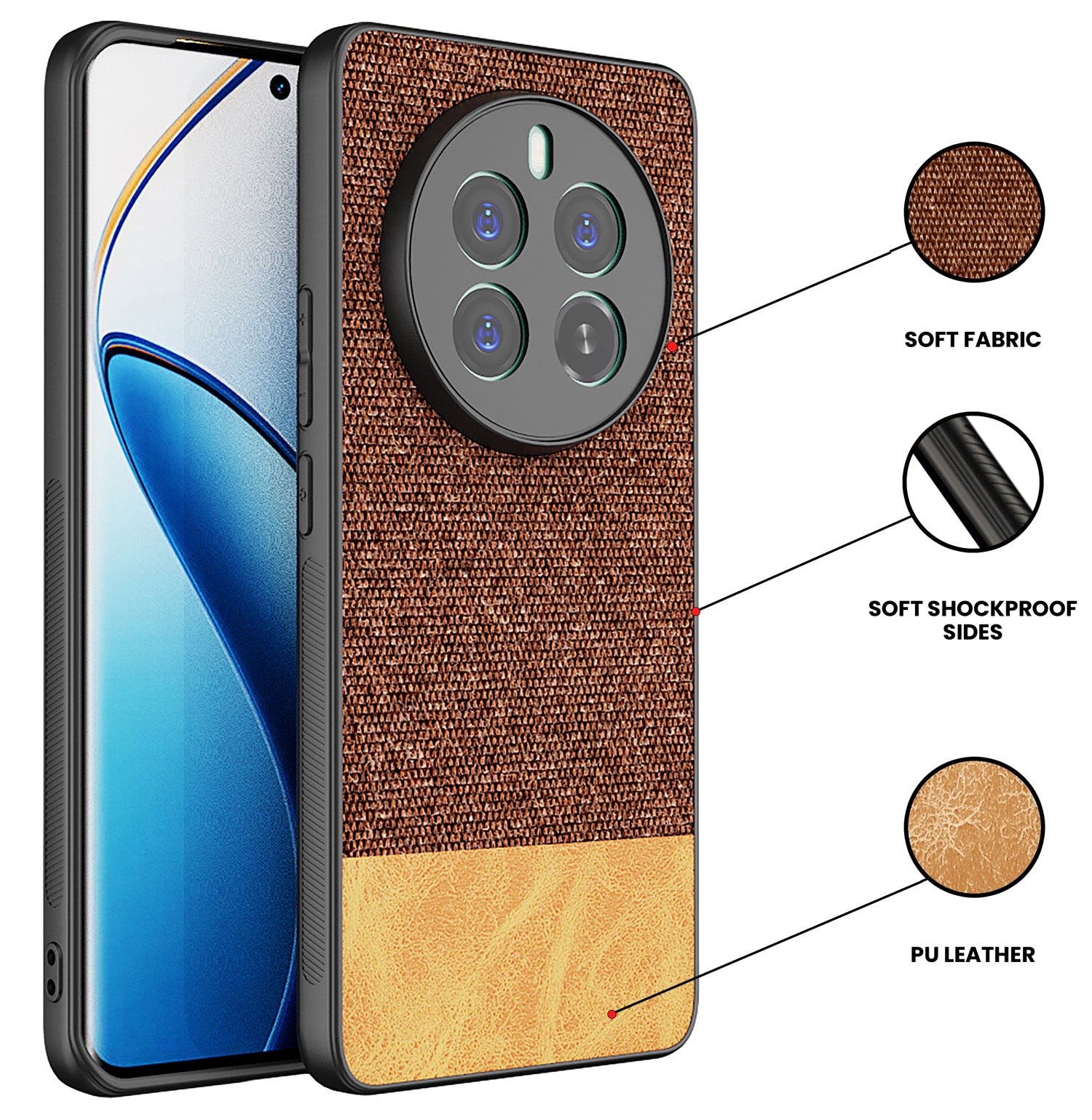 Mobizang Soft Fabric & Leather Hybrid Protective Back Cover for Realme 12 Plus / Narzo 70 / Narzo 70 PRO | Shockproof Slim Hard Anti Slip Back Case (Brown)