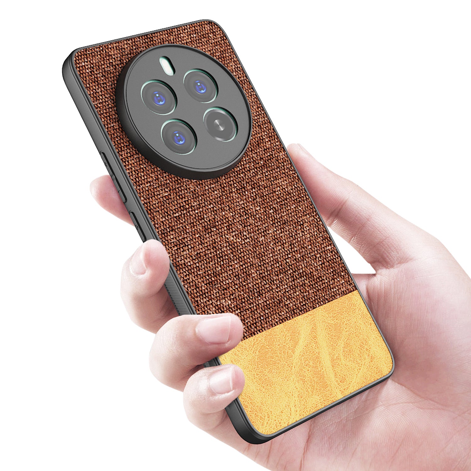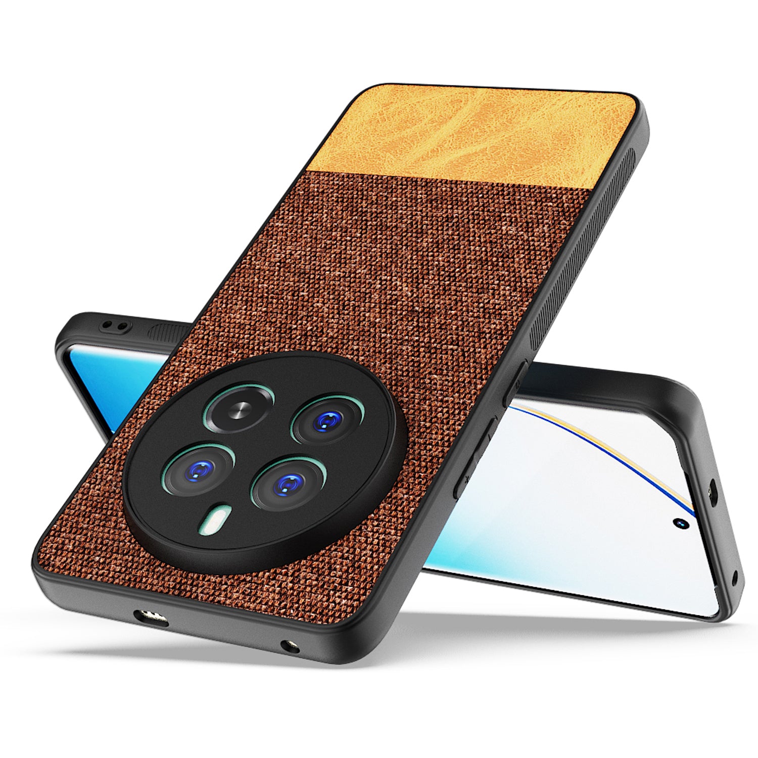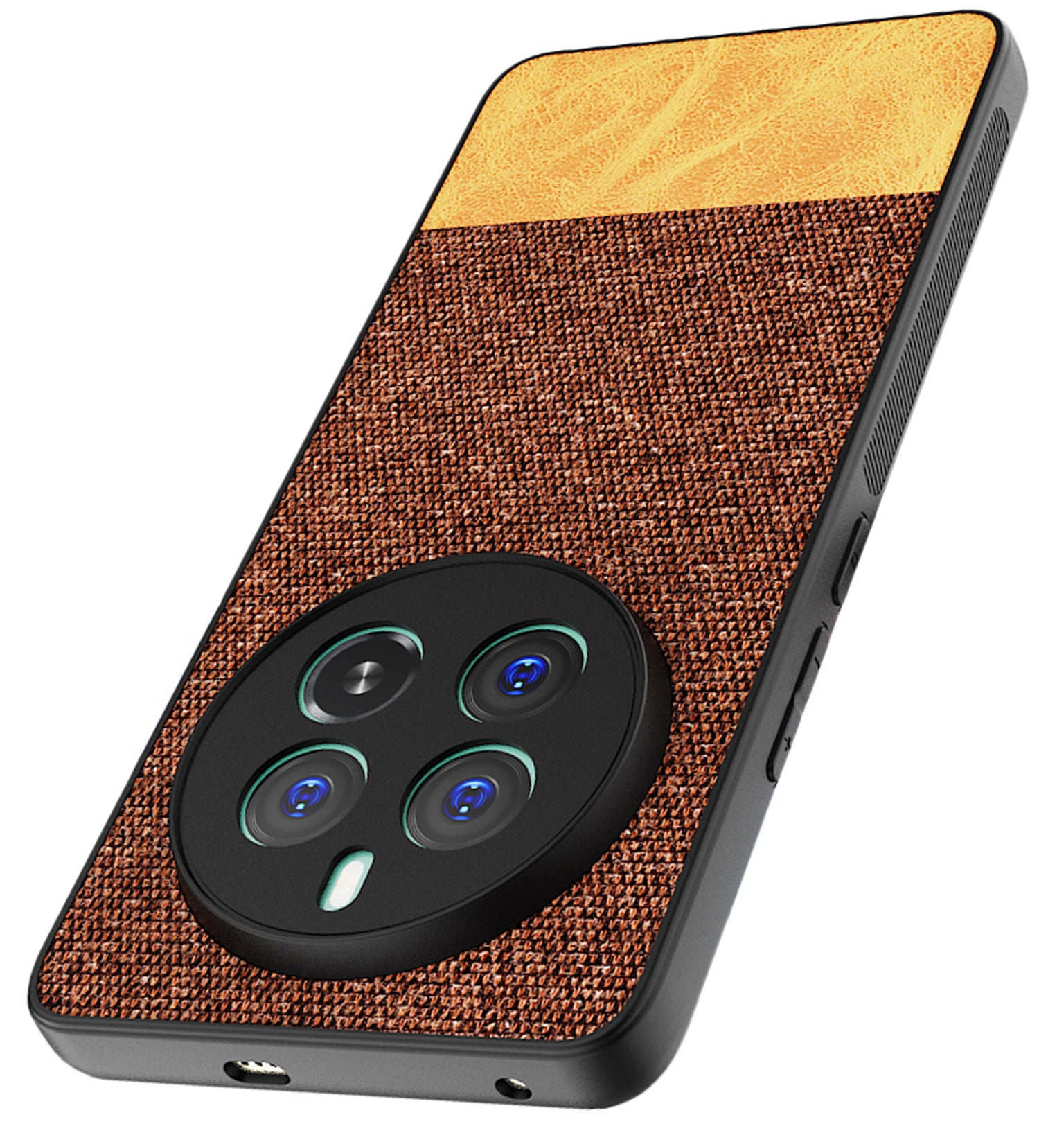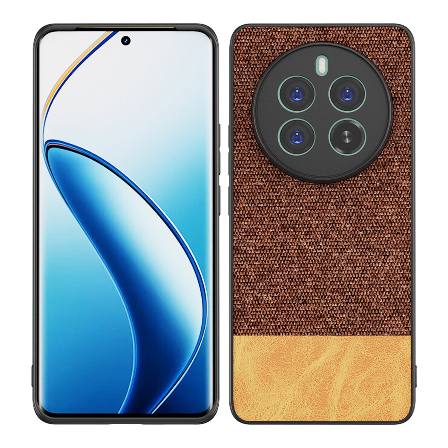 Mobizang Soft Fabric & Leather Hybrid Protective Back Cover for Realme 12 Plus / Narzo 70 / Narzo 70 PRO | Shockproof Slim Hard Anti Slip Back Case (Brown)