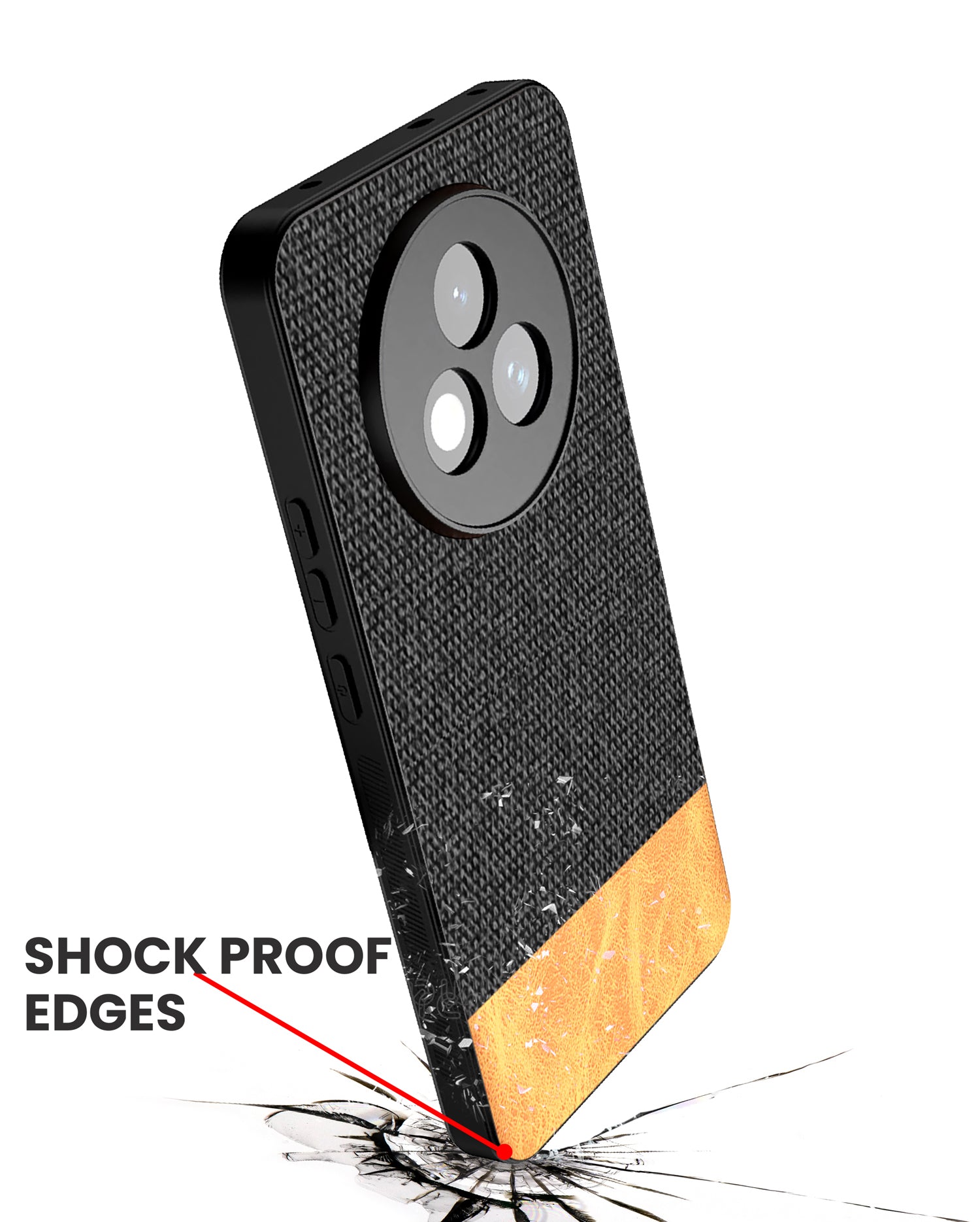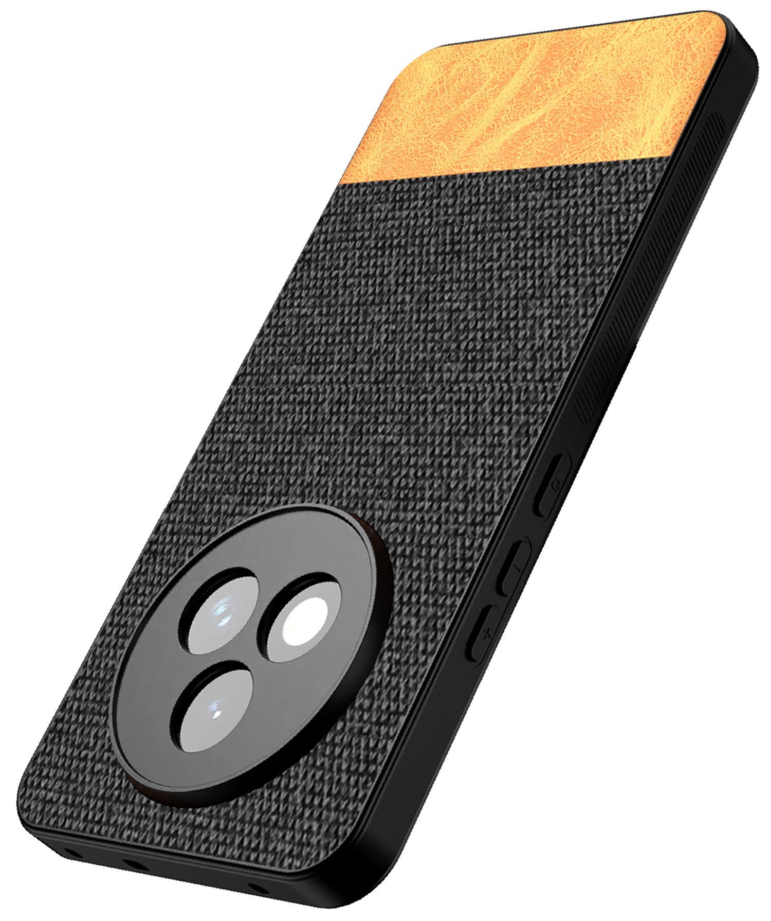 Mobizang Soft Fabric & Leather Hybrid Protective Back Cover for Realme P3 PRO 5G | Shockproof Slim Hard Anti Slip Back Case (Black,Brown)
