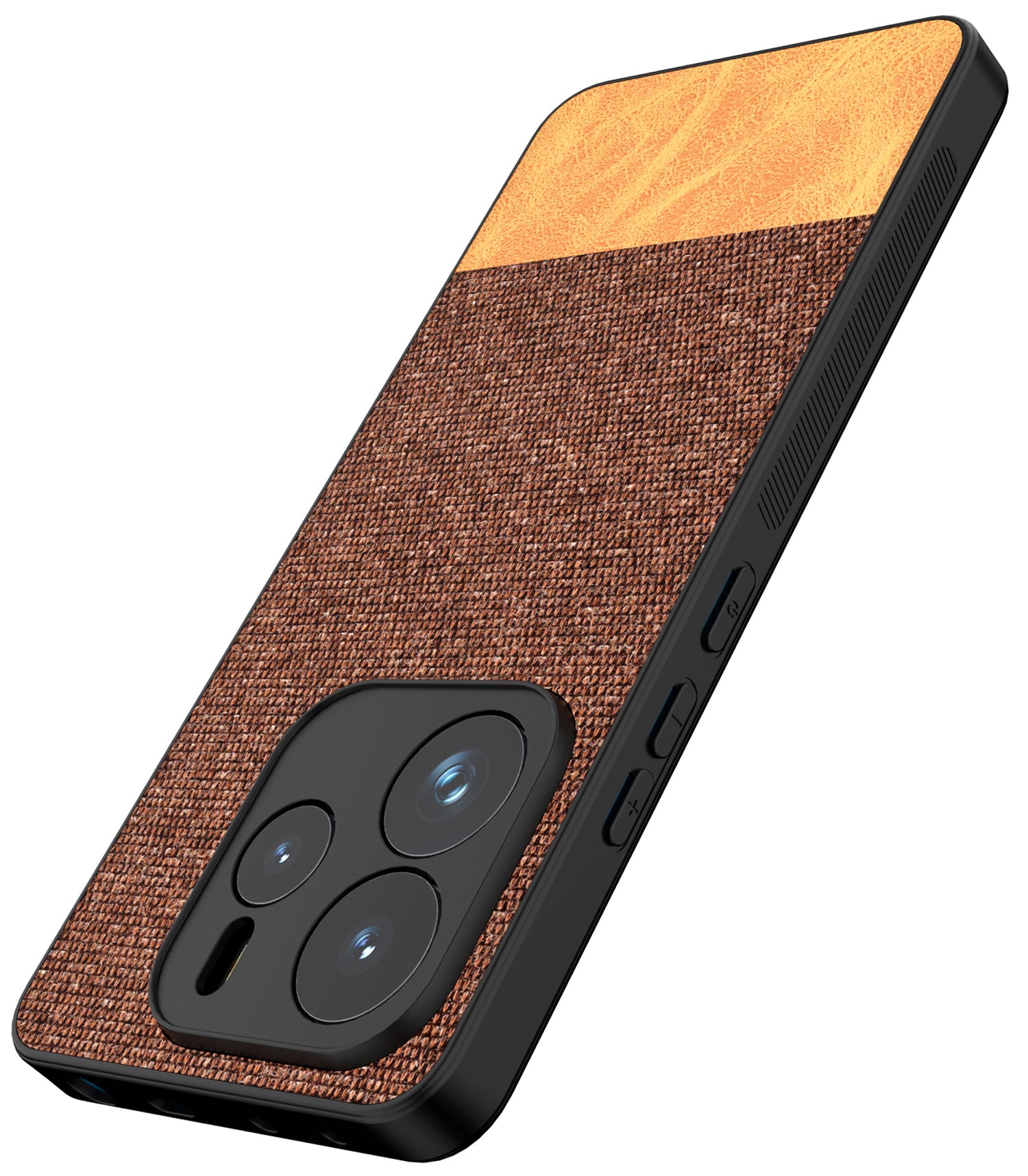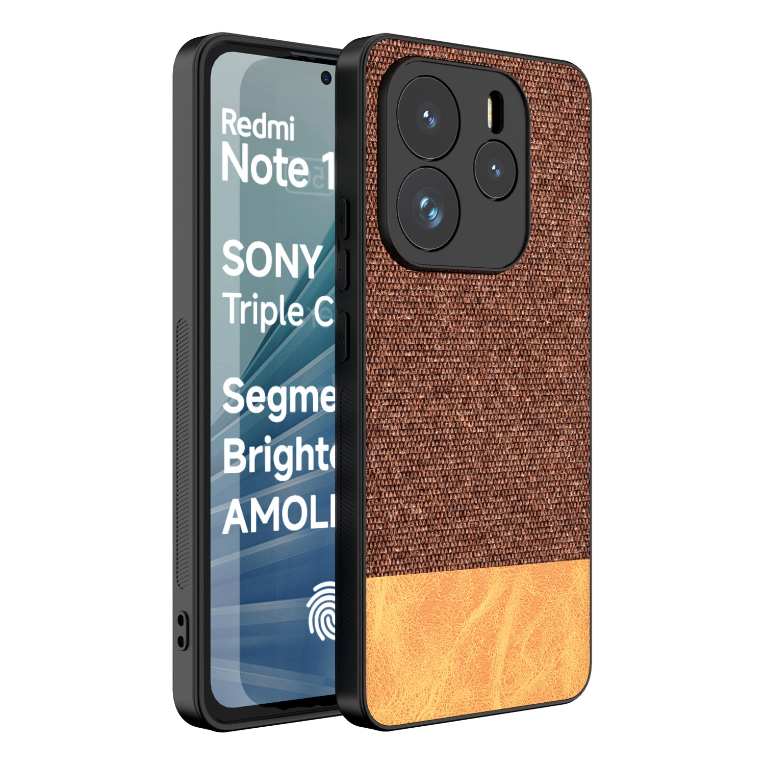 Mobizang Soft Fabric & Leather Hybrid Protective Back Cover for Redmi Note 14 (5G) | Shockproof Slim Hard Anti Slip Back Case (Brown)