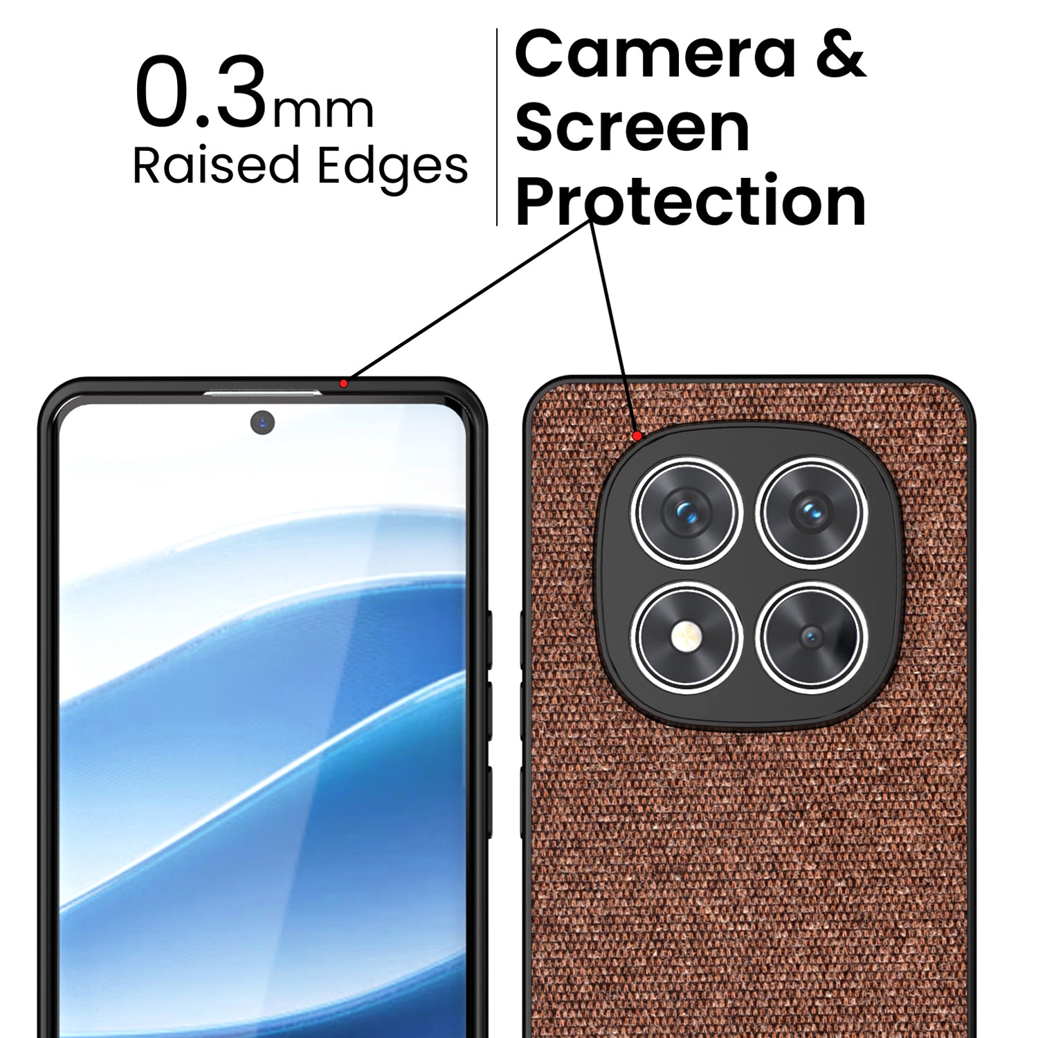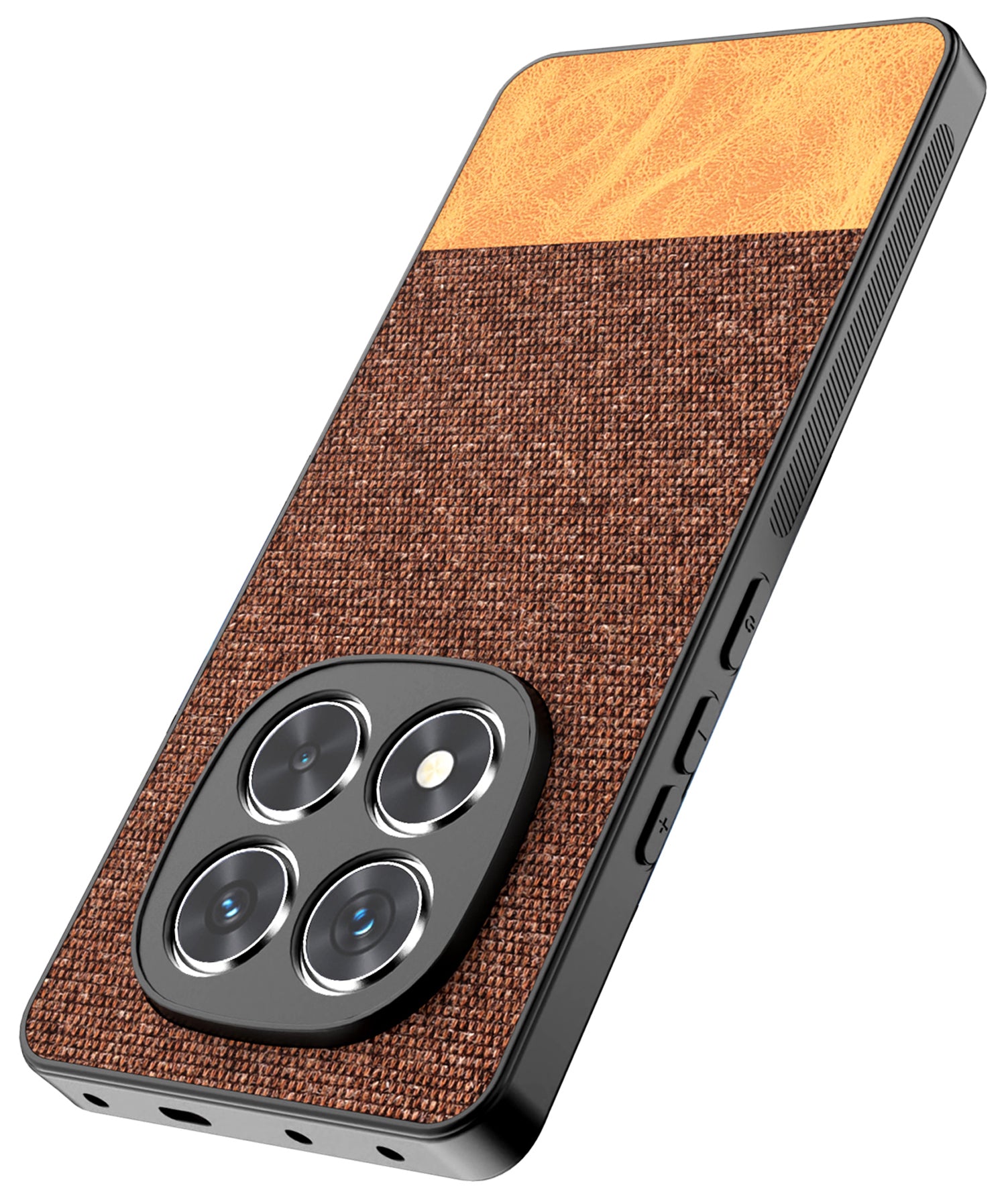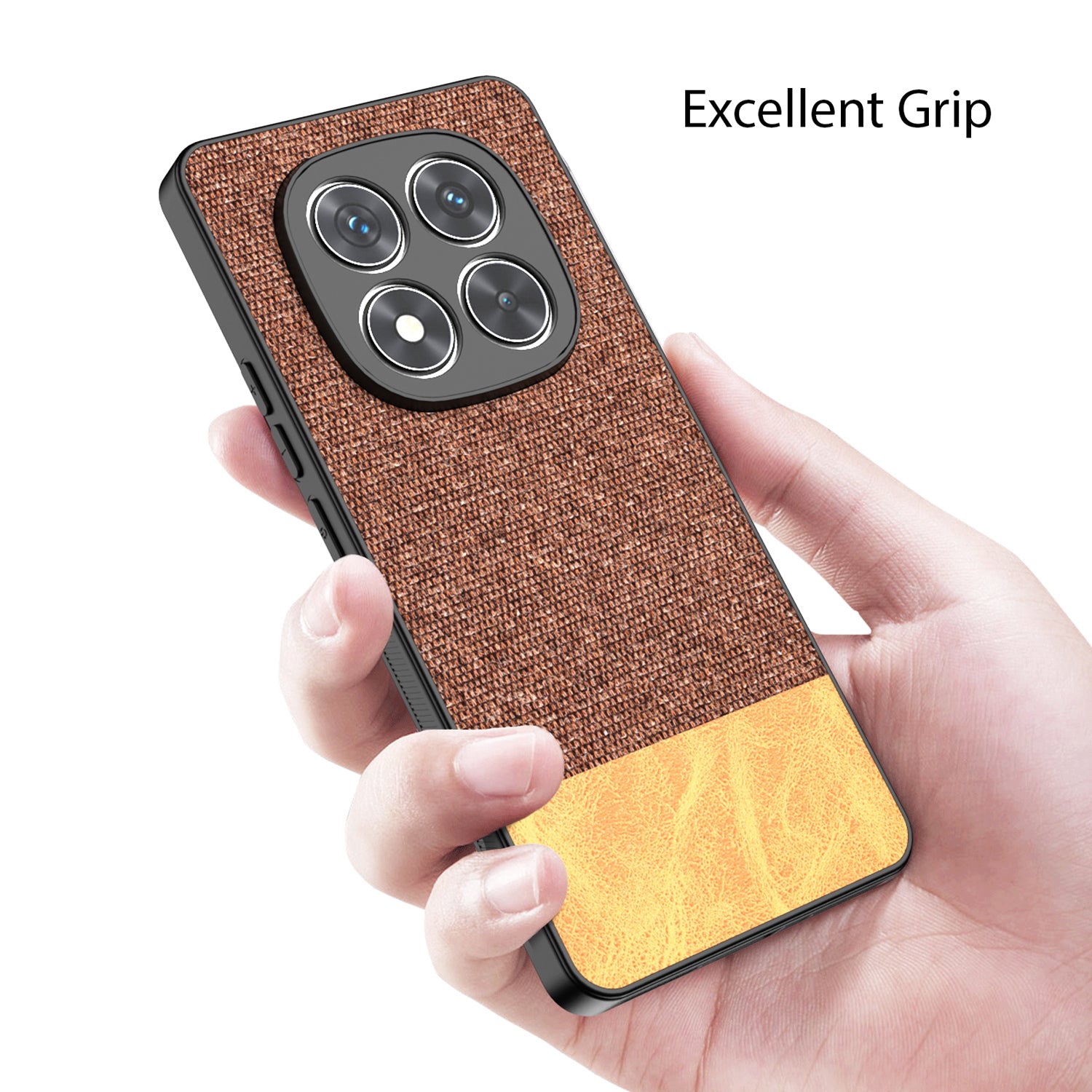 Mobizang Soft Fabric & Leather Hybrid Protective Back Cover for Redmi Note 14 Pro Plus | Shockproof Slim Hard Anti Slip Back Case (Brown)