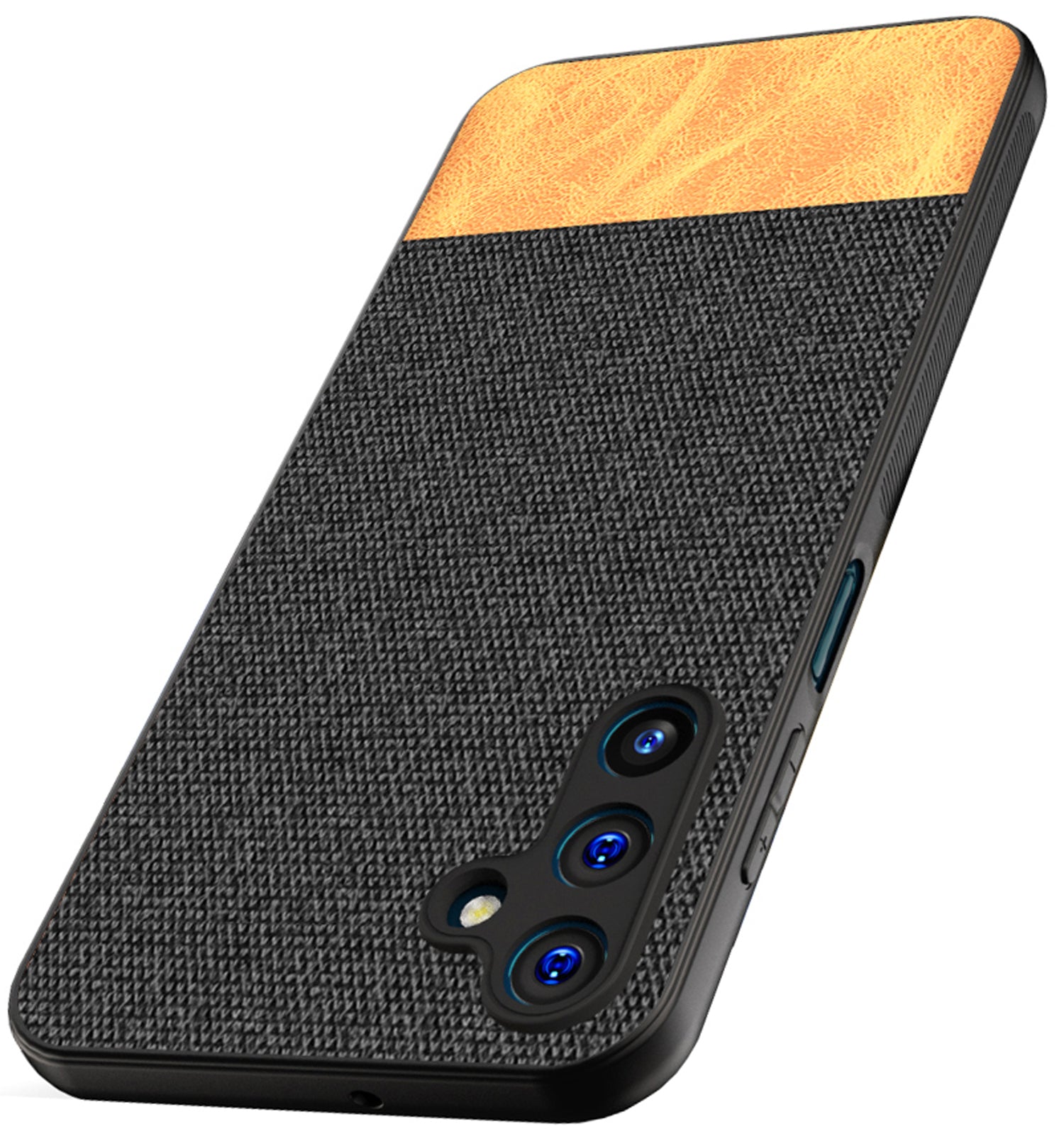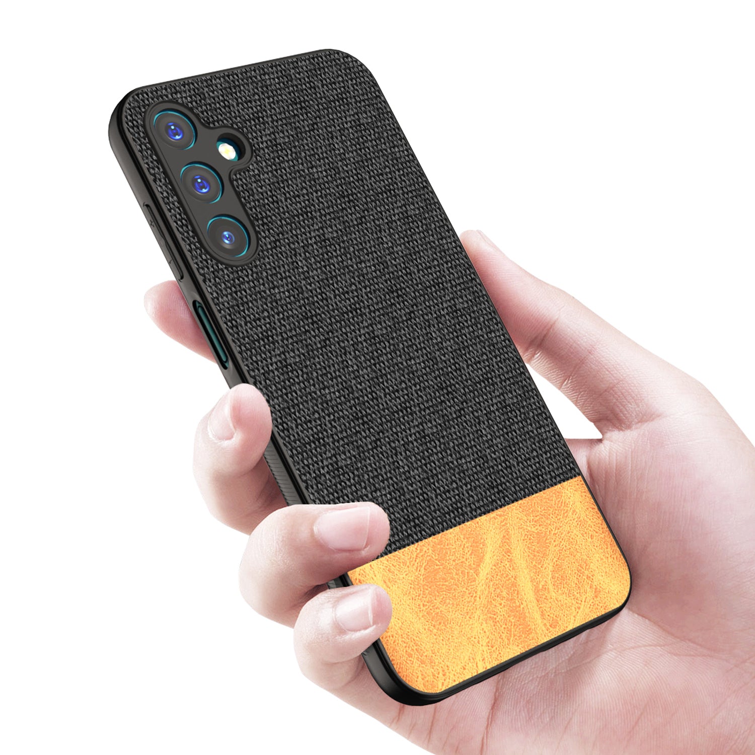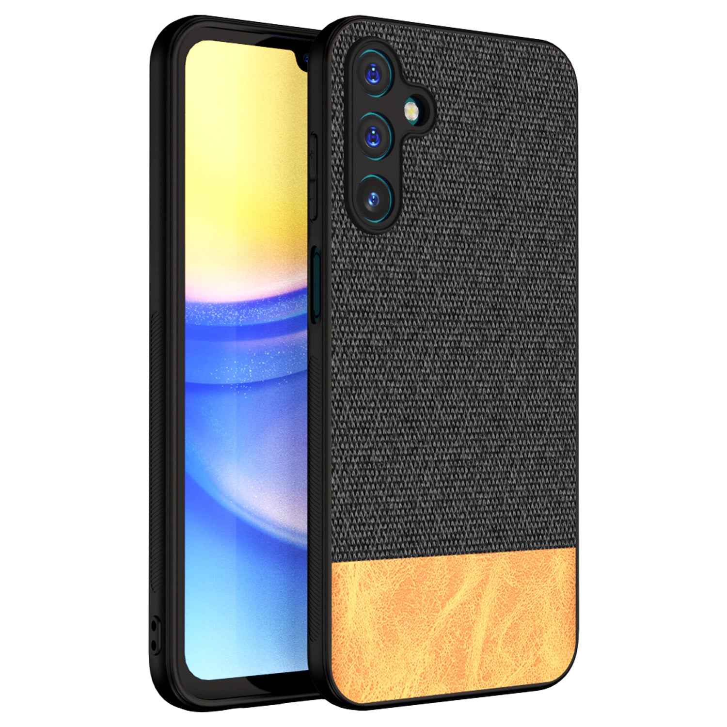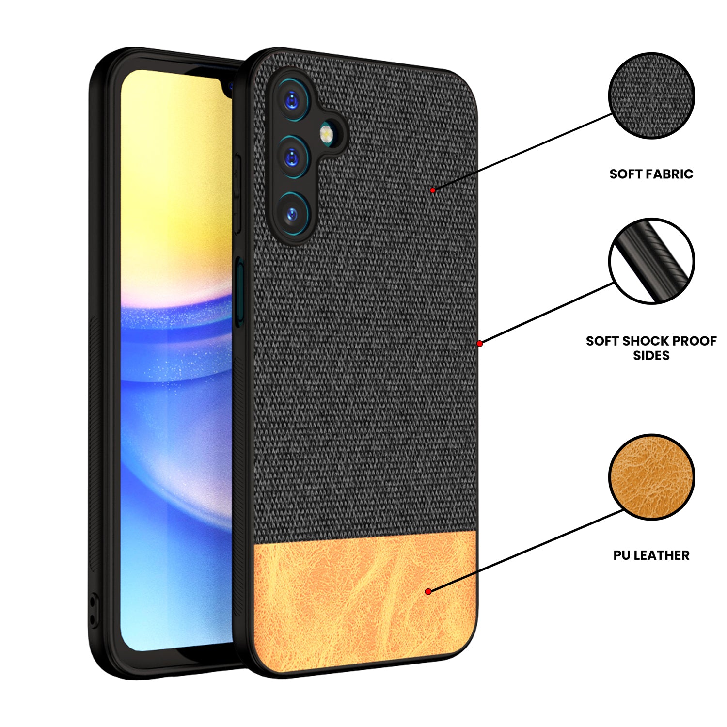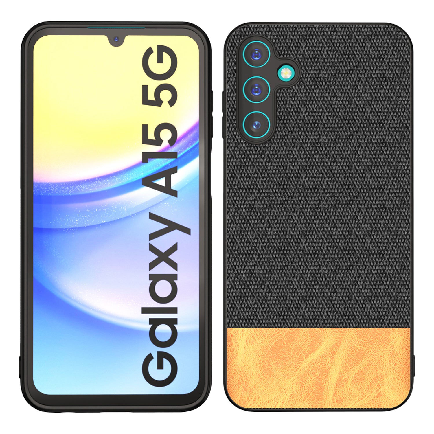 Mobizang Soft Fabric & Leather Hybrid Protective Back Cover for Samsung Galaxy A15 | Shockproof Slim Hard Anti Slip Back Case (Black , Brown)
