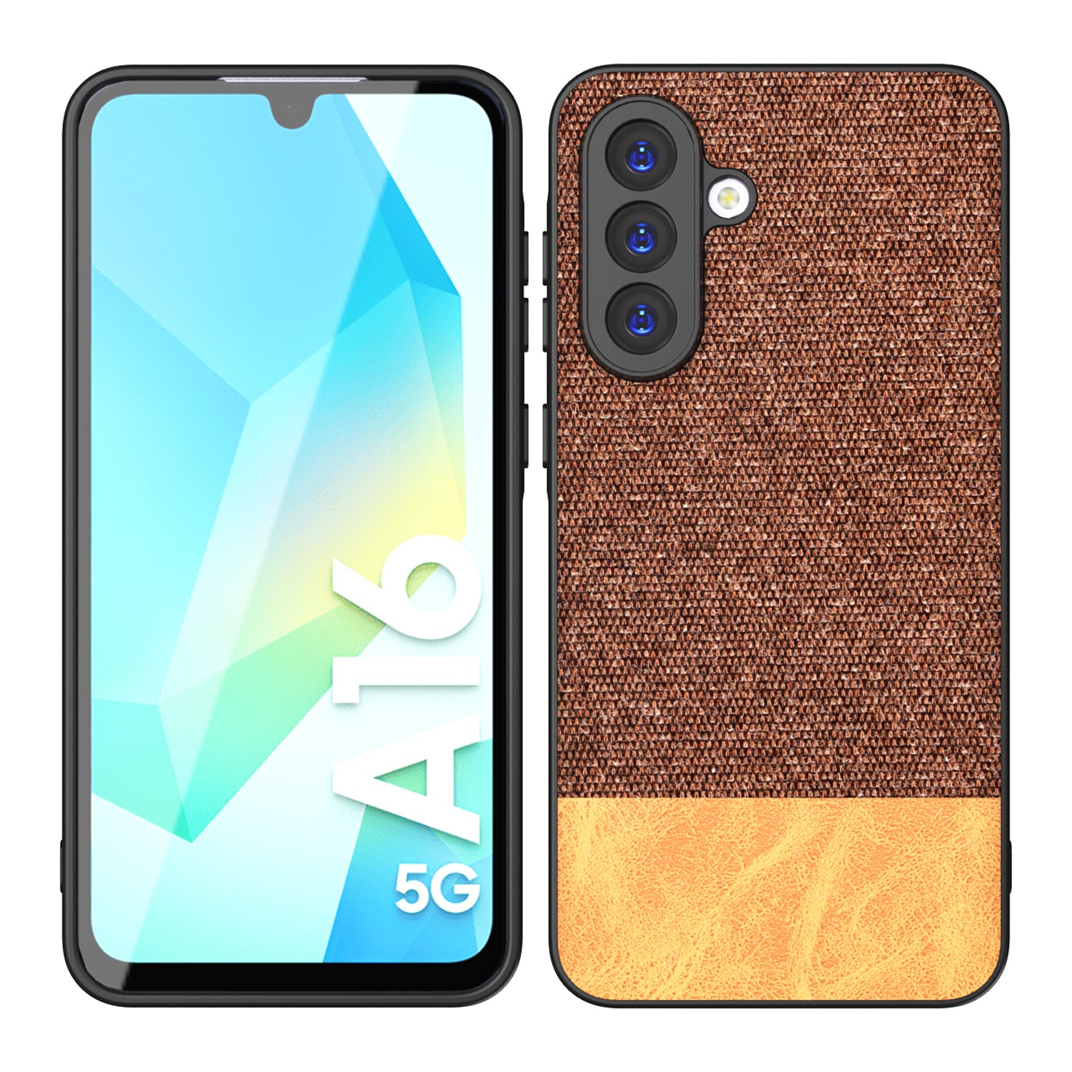 Mobizang Soft Fabric & Leather Hybrid Protective Back Cover for Samsung Galaxy A16 | Shockproof Slim Hard Anti Slip Back Case (Brown)