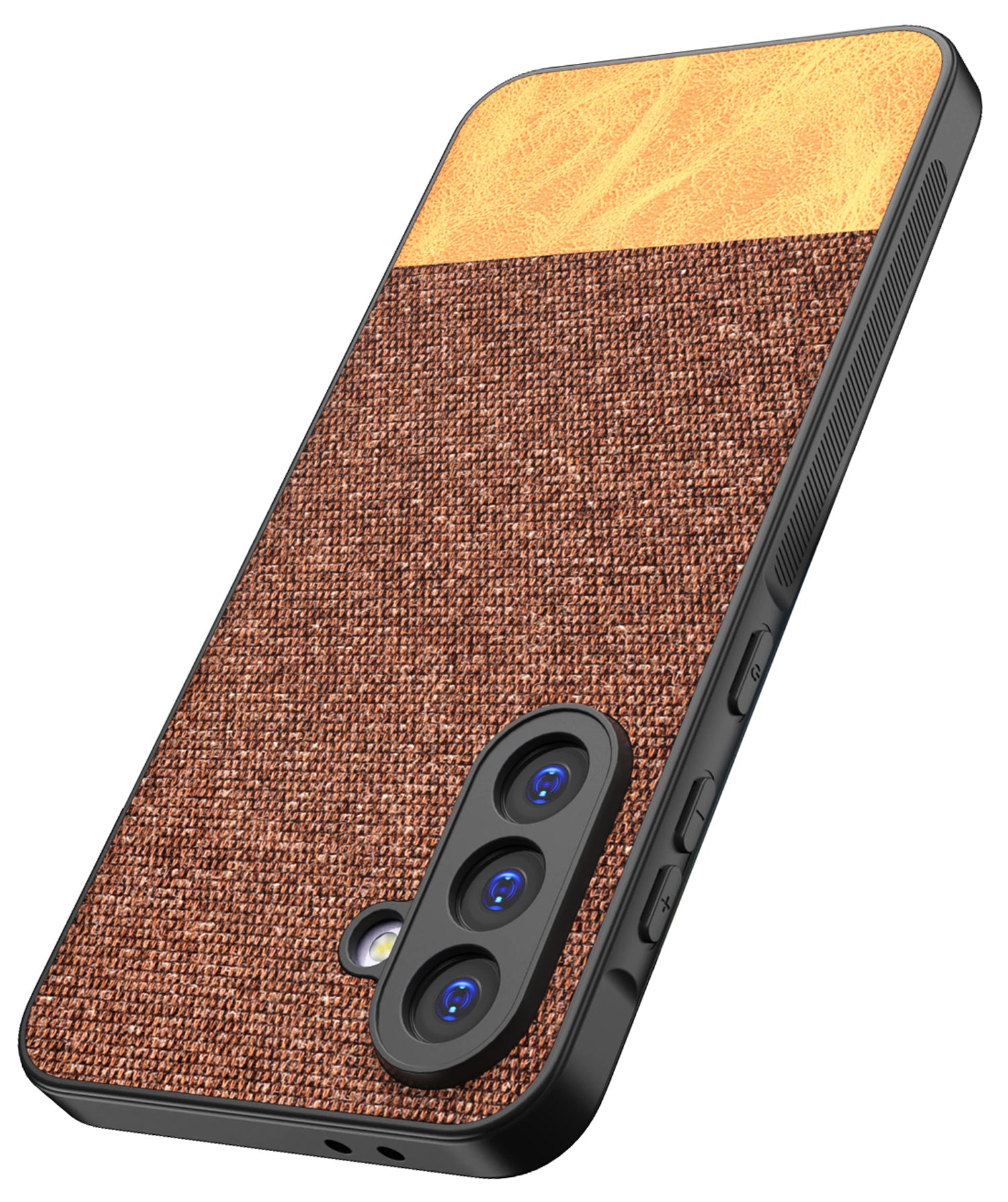 Mobizang Soft Fabric & Leather Hybrid Protective Back Cover for Samsung Galaxy A36 | Shockproof Slim Hard Anti Slip Back Case (Brown)