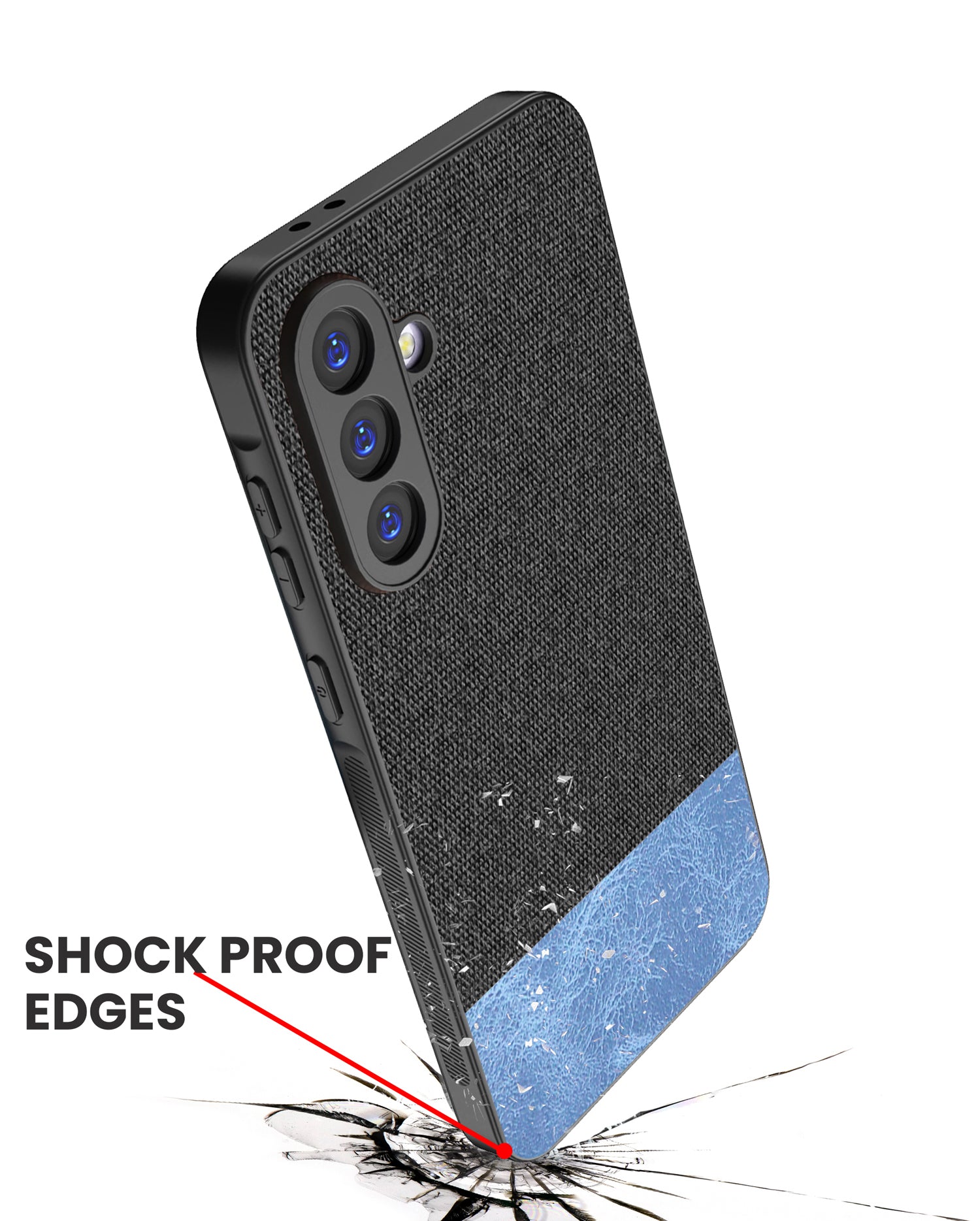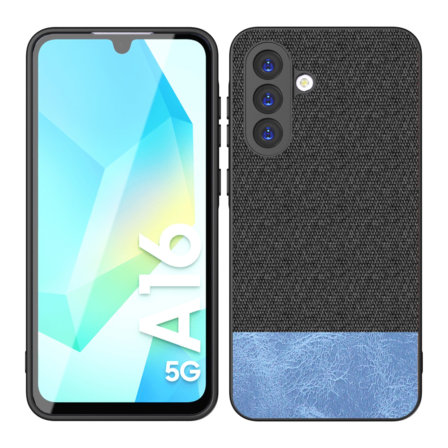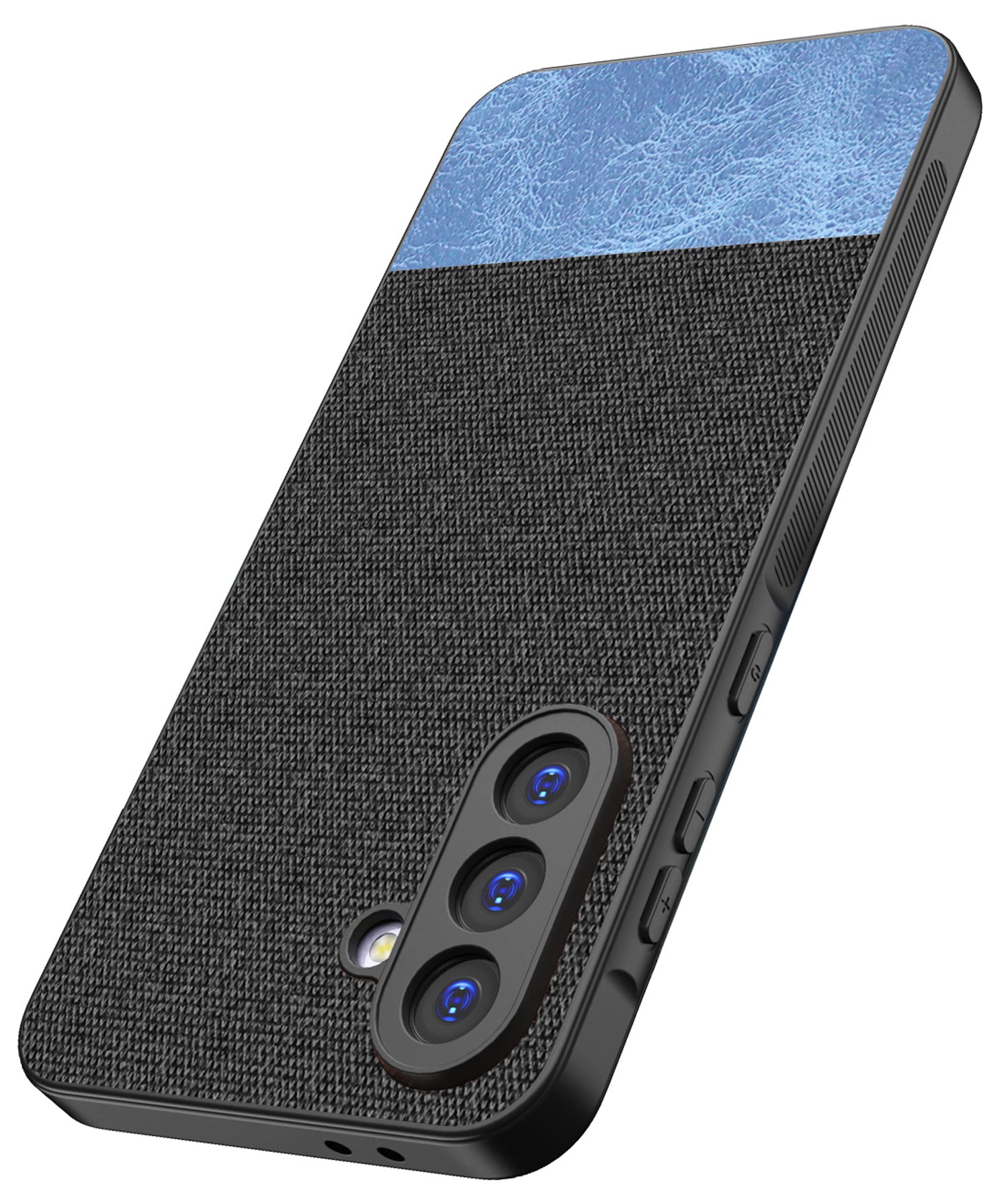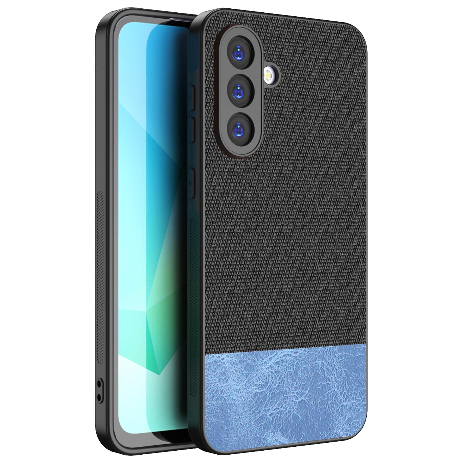 Mobizang Soft Fabric & Leather Hybrid Protective Back Cover for Samsung Galaxy A56 | Shockproof Slim Hard Anti Slip Back Case (Black,Blue)