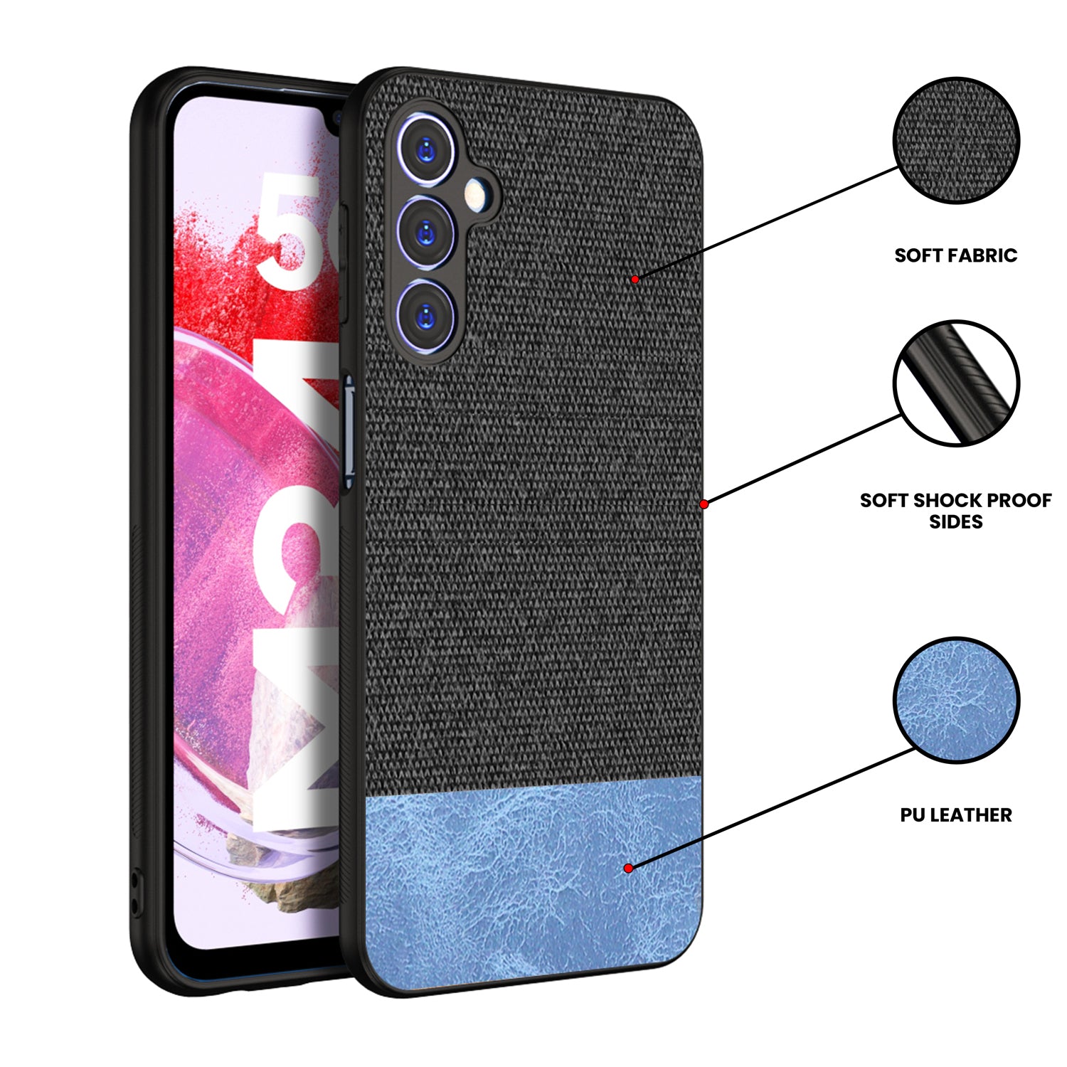 ** [Soft Fabric & PU Material ] : Made from Soft Fabric on the Back which gives premium look and better grip to phone . Lower Part is made from PU leather , provides Fabulous contrast look and premium feel to phone