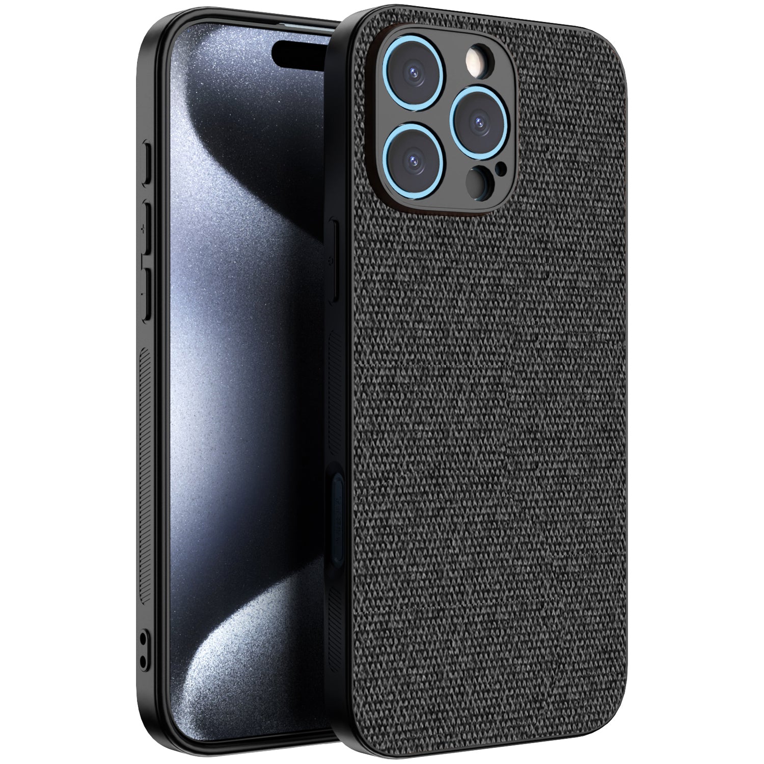 Mobizang Soft Full Fabric Protective Back Case Cover for Apple iPhone 16 Pro Max | Shockproof Slim Hard Anti Slip Back Case (Black)