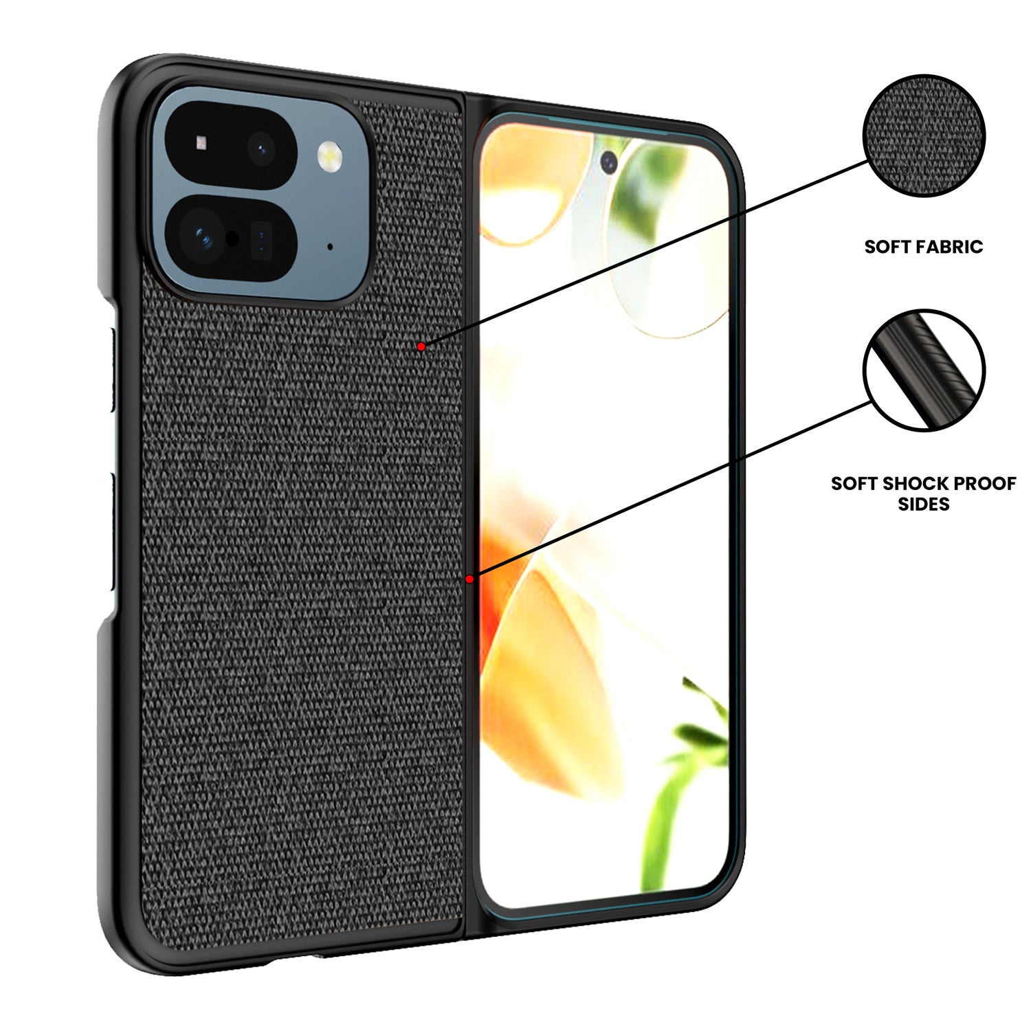 Mobizang Soft Full Fabric Protective Back Case Cover for Google Pixel 9 Pro Fold | Shockproof Slim Hard Anti Slip Back Case (Black)