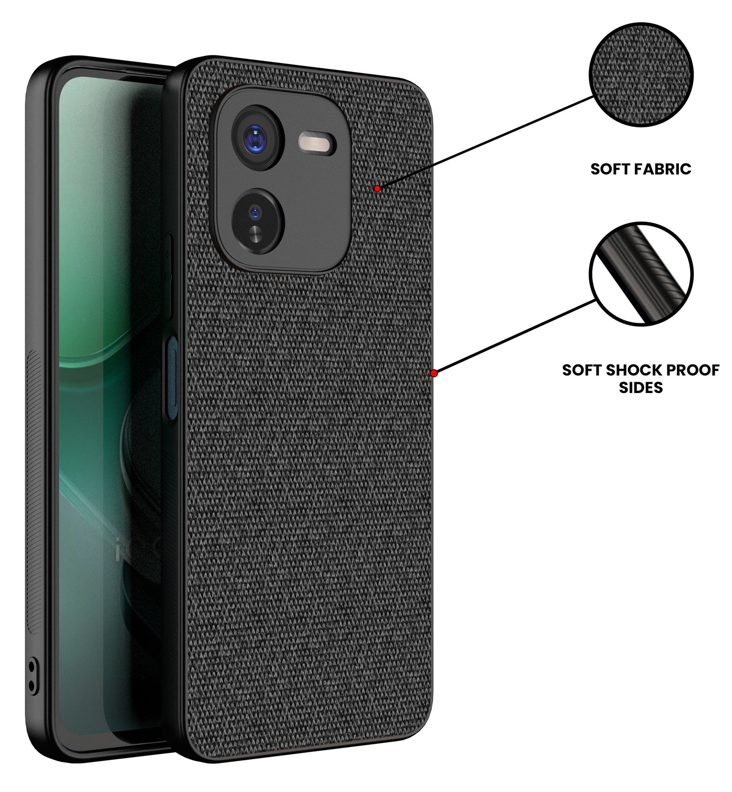 Mobizang Soft Full Fabric Protective Back Case Cover for IQOO Z9X | Shockproof Slim Hard Anti Slip Back Case (Black)