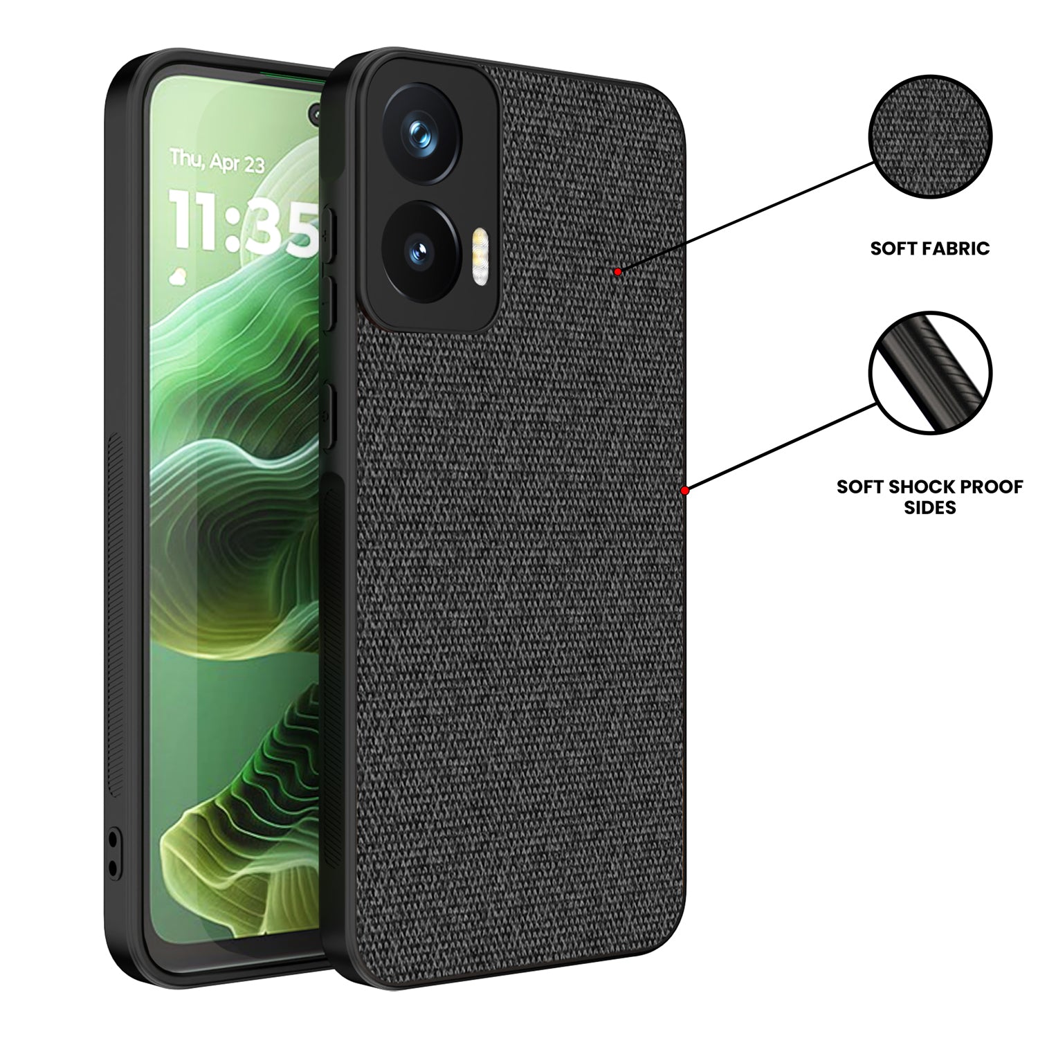 Mobizang Soft Full Fabric Protective Back Case Cover for Moto G35 | Shockproof Slim Hard Anti Slip Back Case (Black)