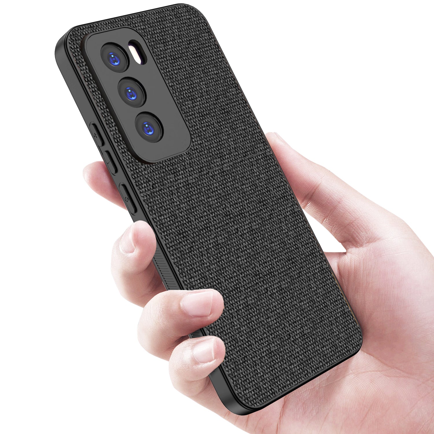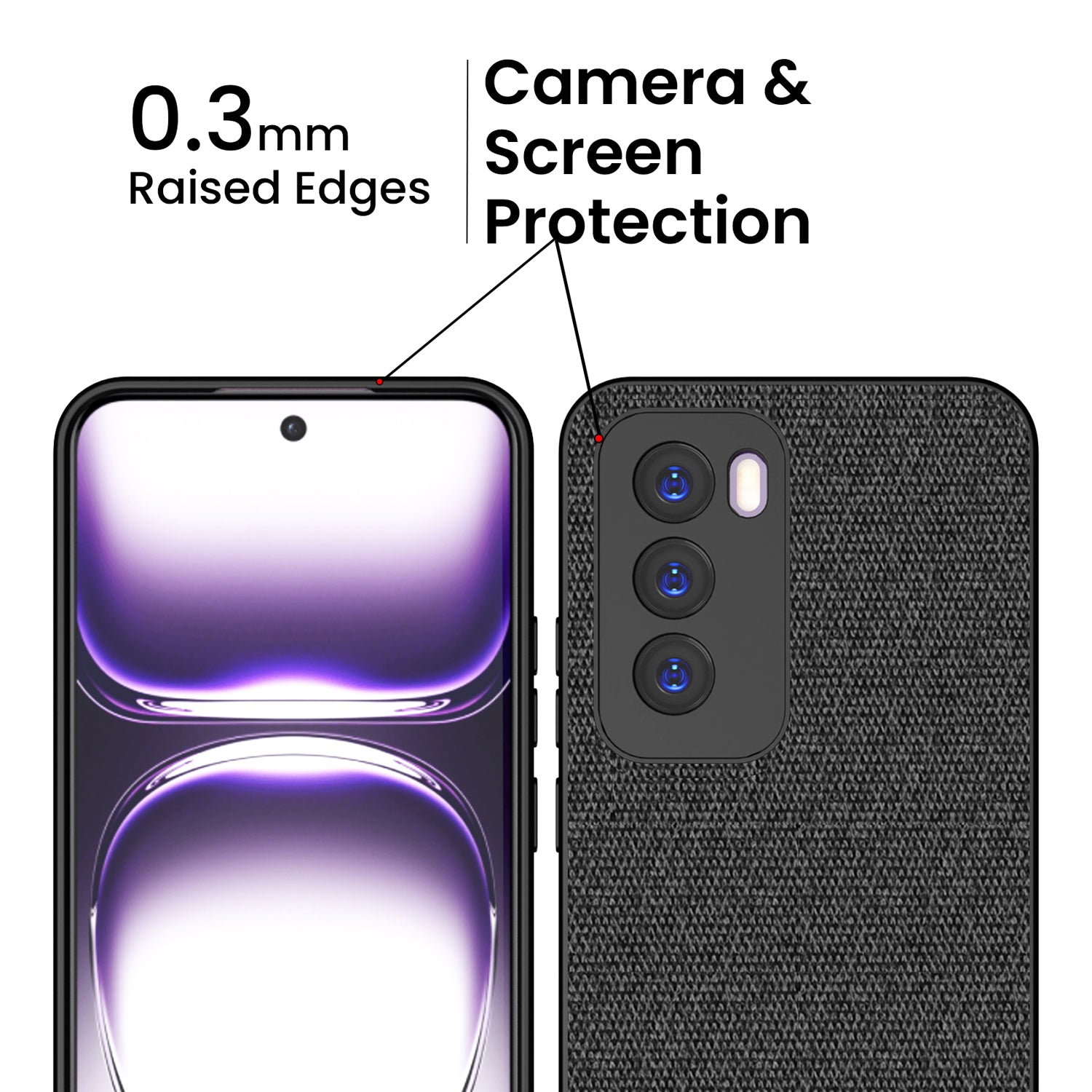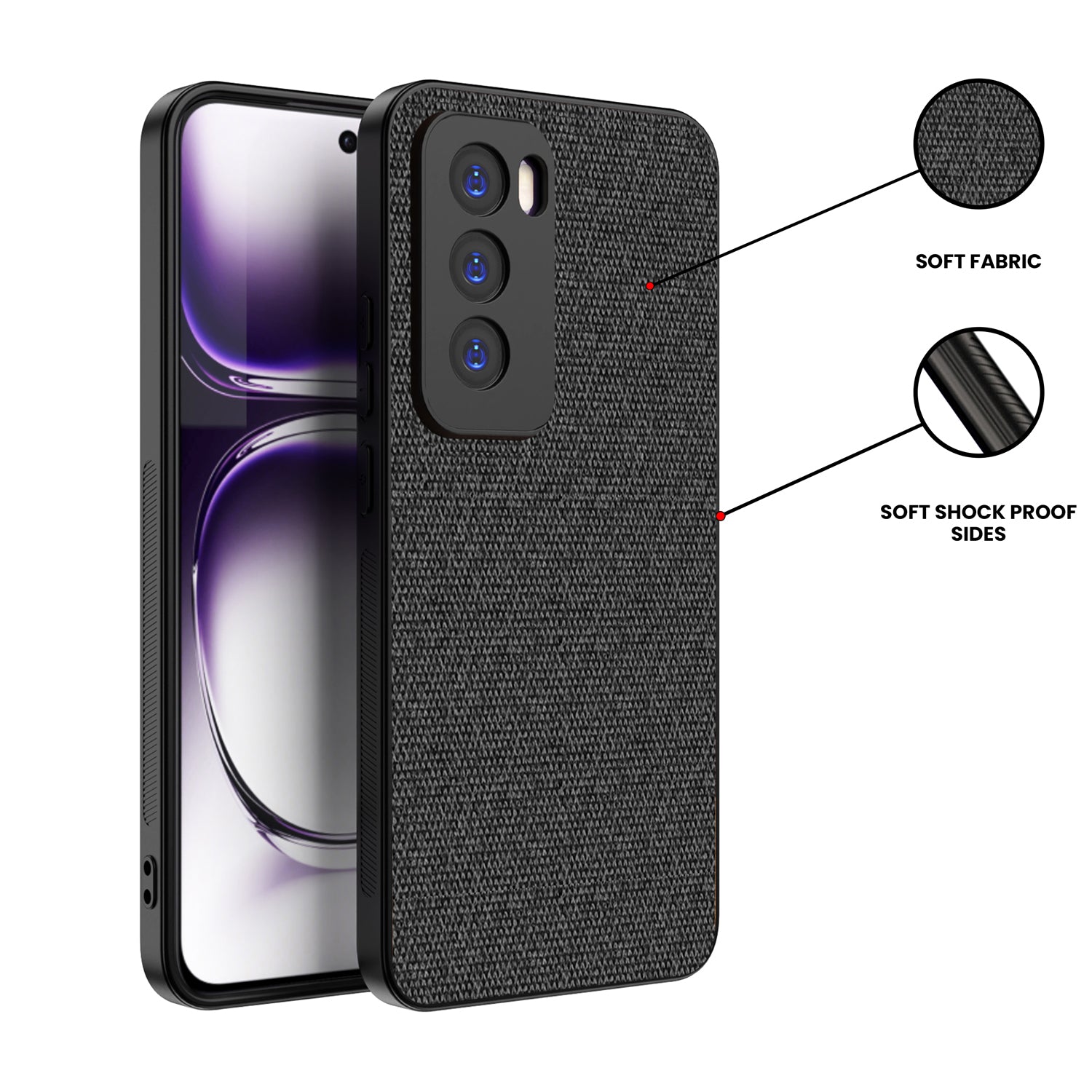 Mobizang Soft Full Fabric Protective Back Case Cover for Oppo Reno 12 (5G) | Shockproof Slim Hard Anti Slip Back Case (Black)
