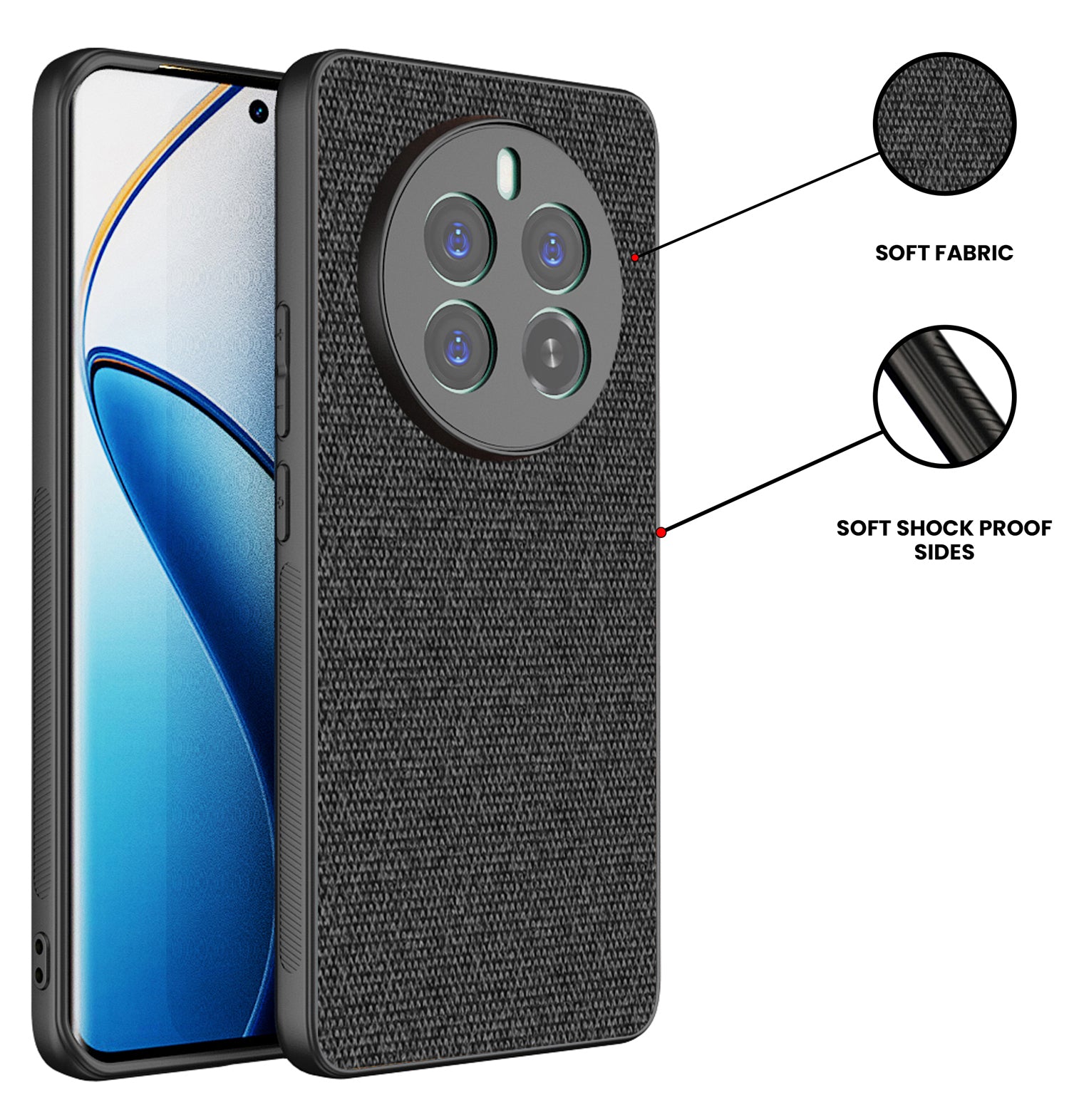 Mobizang Soft Full Fabric Protective Back Case Cover for Realme 12 Plus / Narzo 70 / Narzo 70 PRO | Shockproof Slim Hard Anti Slip Back Case (Black)