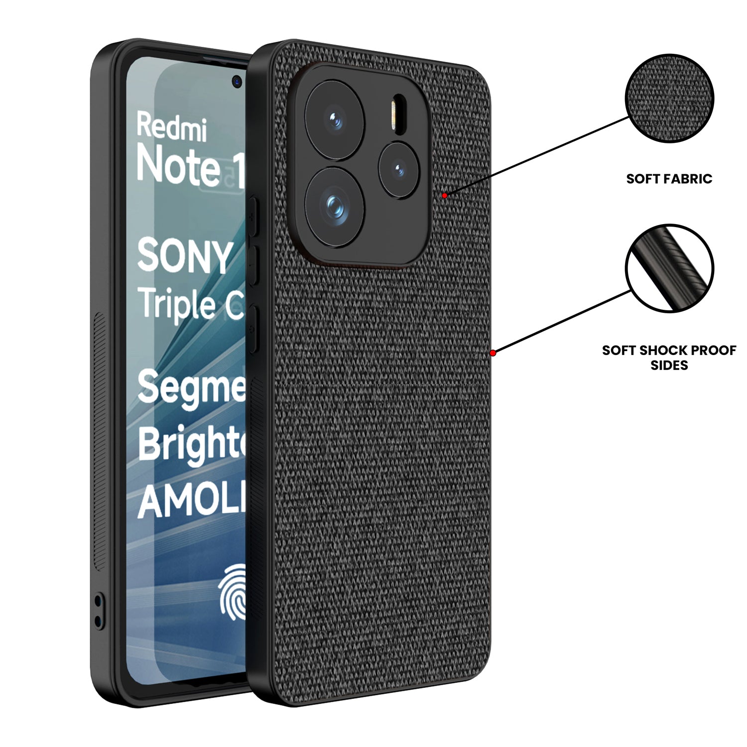 Mobizang Soft Full Fabric Protective Back Case Cover for Redmi Note 14 (5G) | Shockproof Slim Hard Anti Slip Back Case (Black)