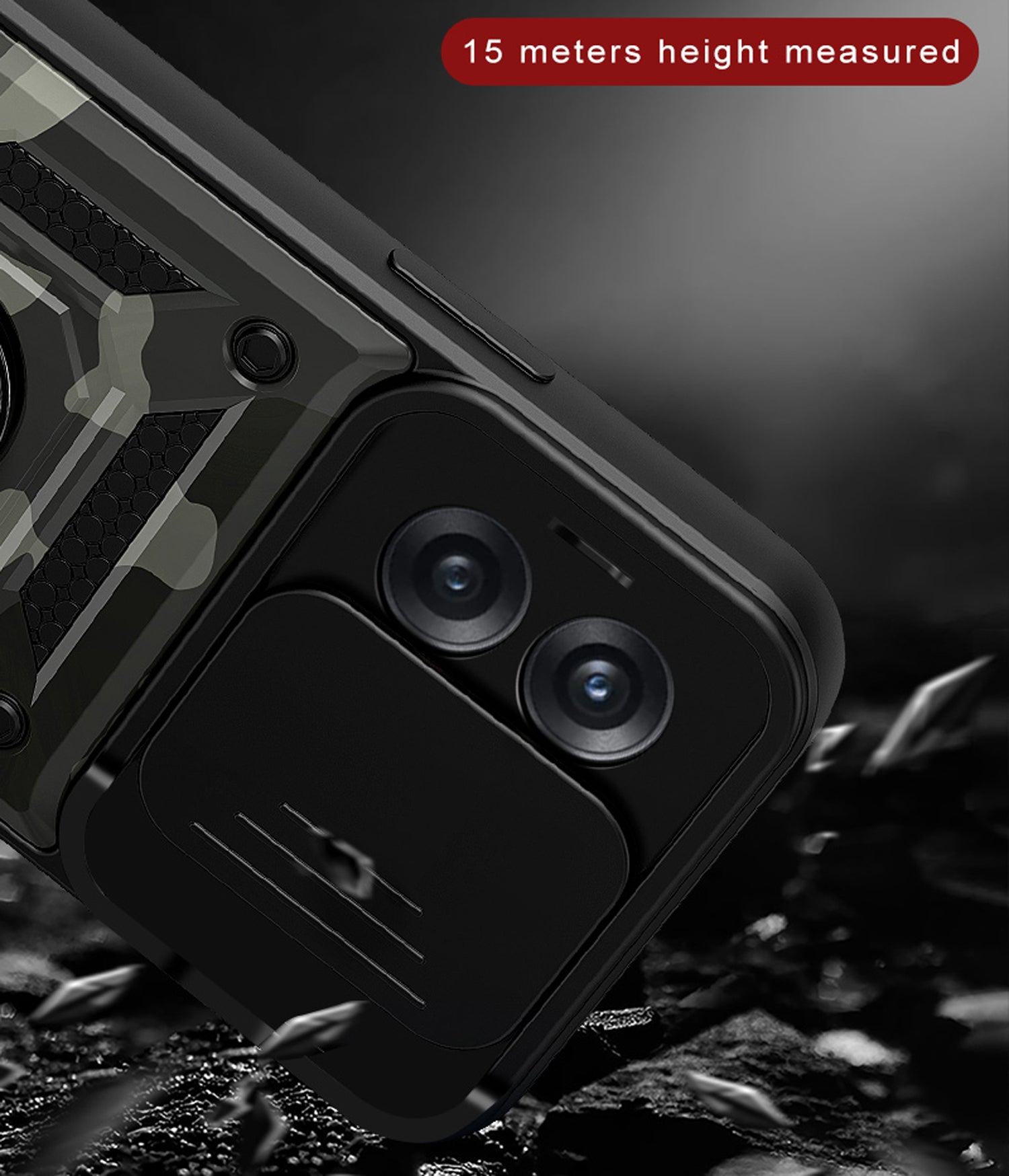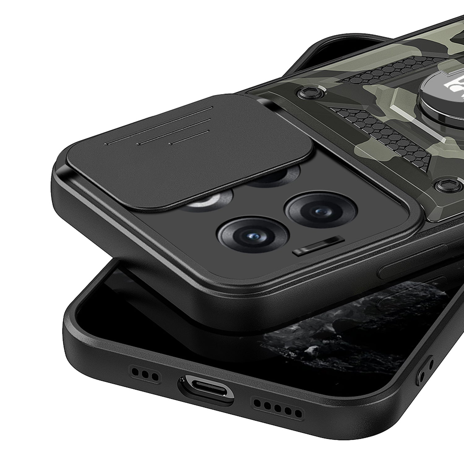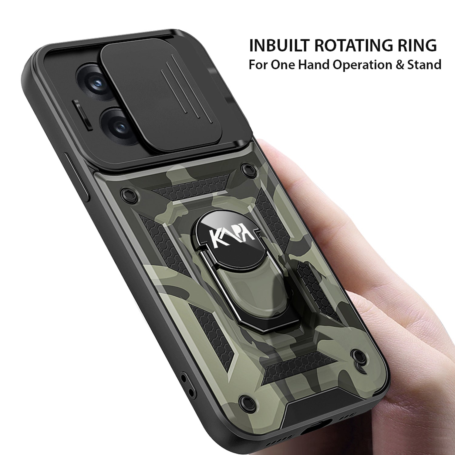 Mobizang Tank Back Cover for OnePLus 10T, Inbuilt Ring + Slider Shockproof Lens Case (Black)
