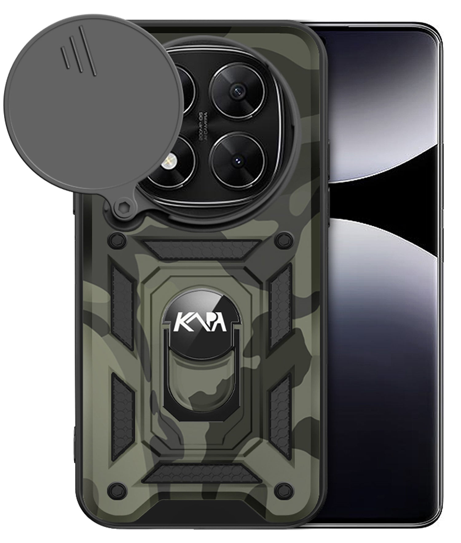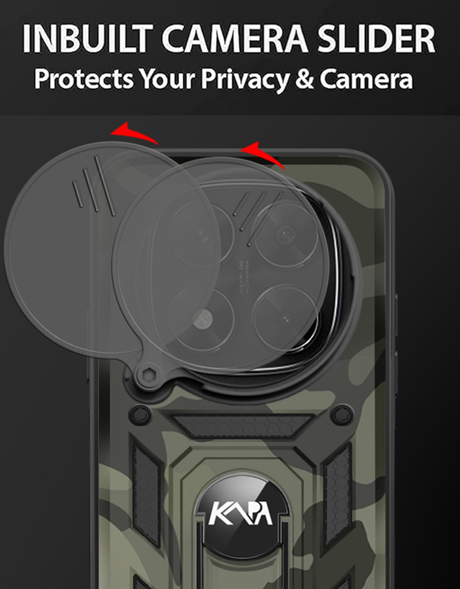 Mobizang Tank Back Cover for Redmi Note 14 Pro Plus | Inbuilt Ring + Slider Shockproof Lens Protection Bumper Back Case (Black)
