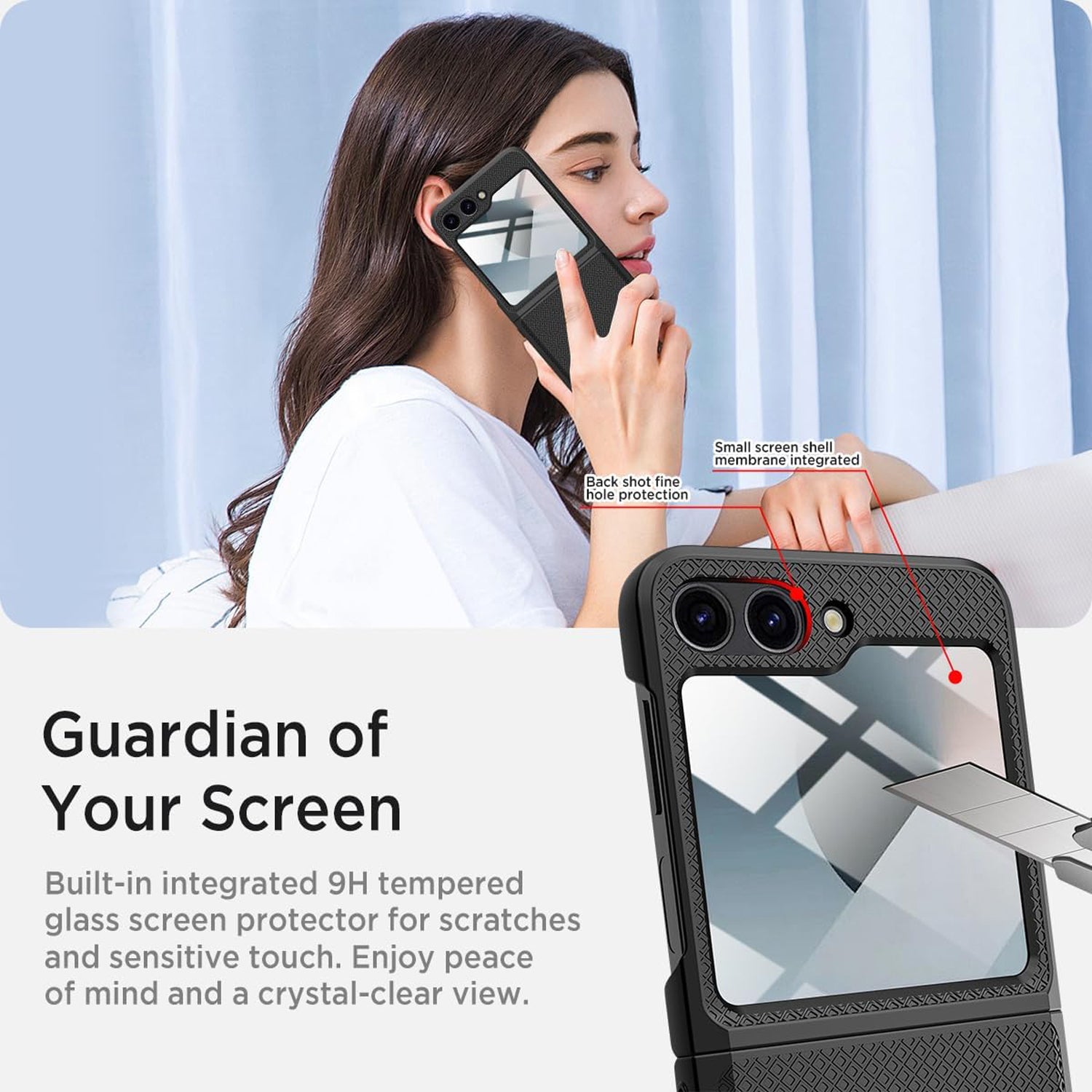 **✅ [HD Screen Protector] This Galaxy Z Flip 6 cover includes a screen protector for the back screen. The Tempered Glass Screen Protector is clear with 99% transparency, present a original clear image quality, and the thin screen cover is high responsive and smooth, preserving the original touch sensitivity.