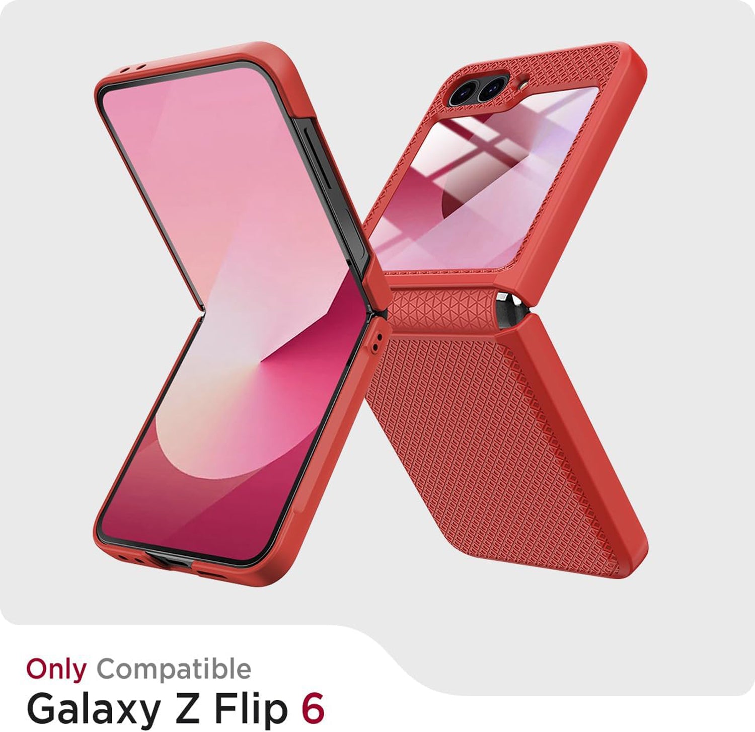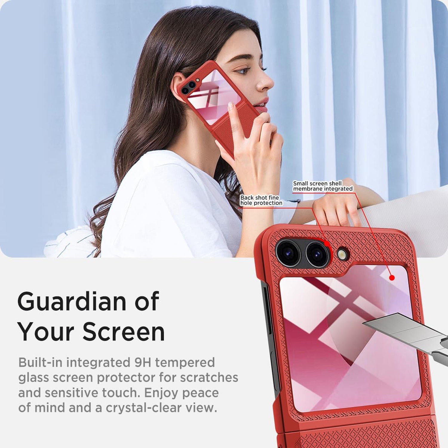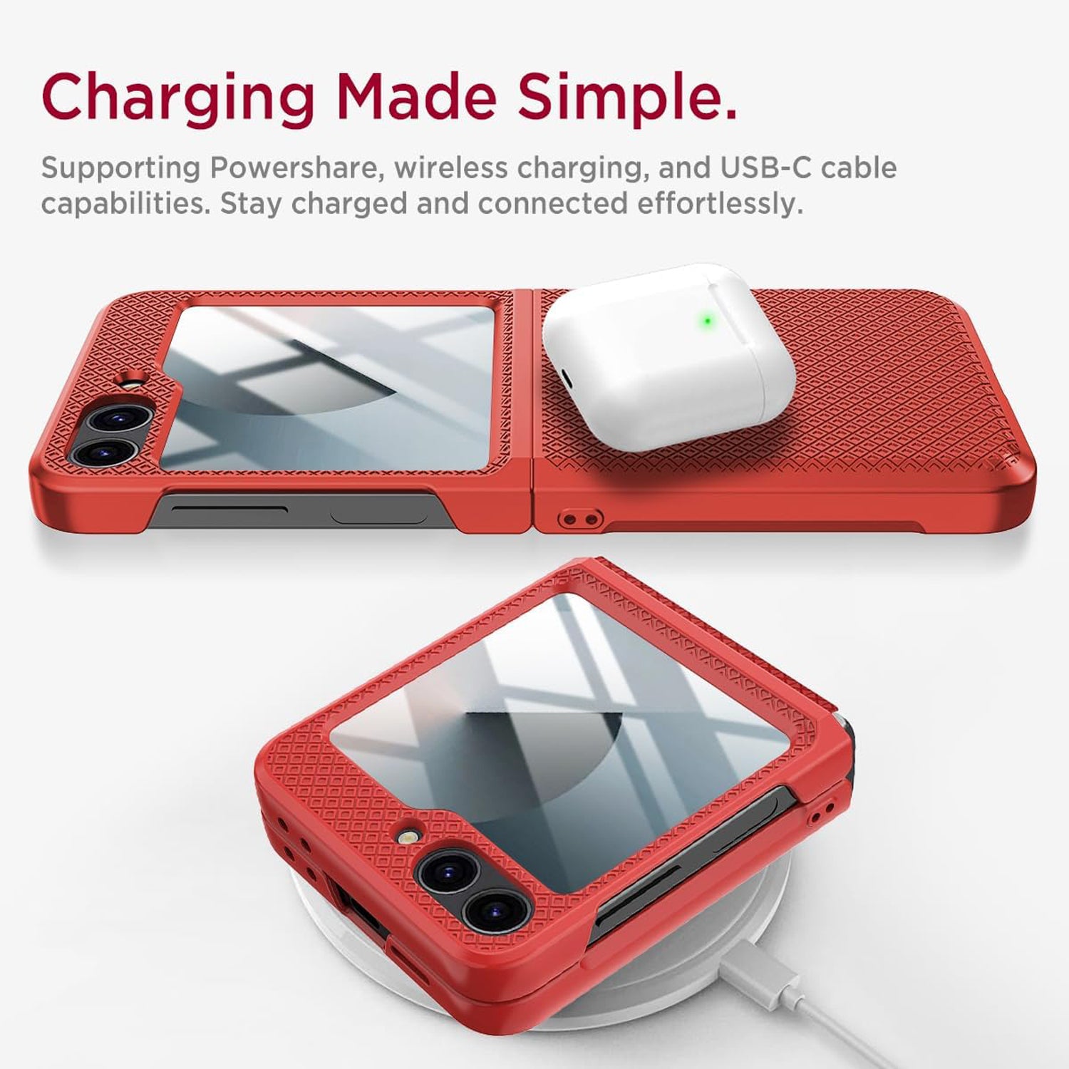 Mobizang Textured Grip Hinge Protection Back Cover for Samsung Galaxy Z Flip6 / Z Flip 6 | with [Inbuilt Glass] Full Body Shockproof Hard Back Case (Red)