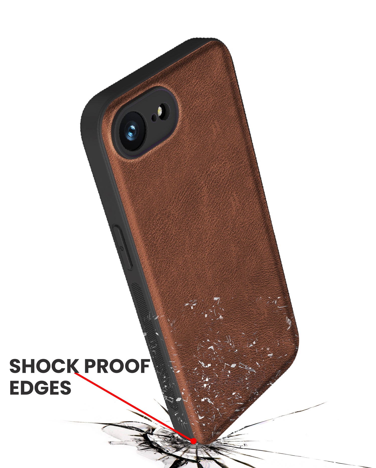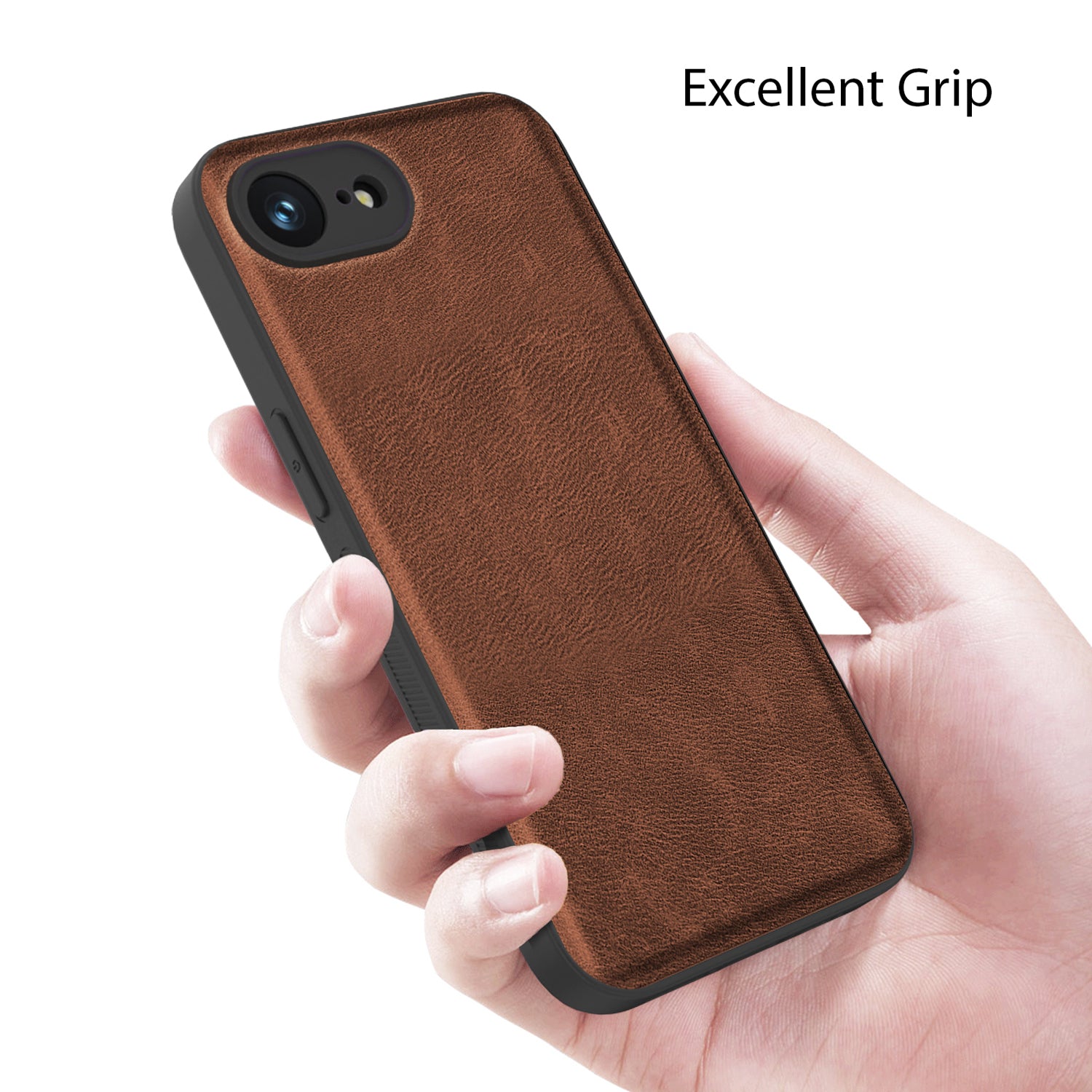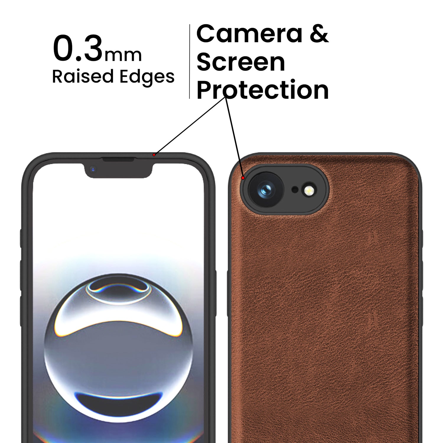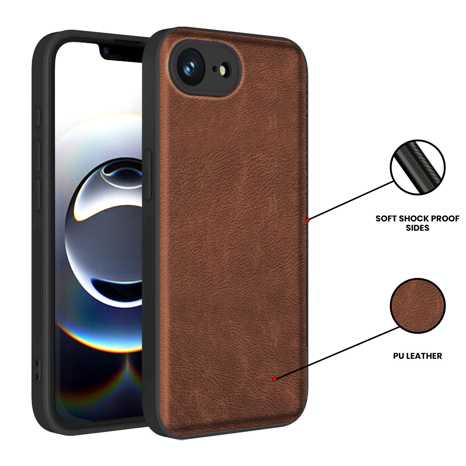Mobizang Tux Leather Back Cover for Apple iPhone 16E | Slim Shockproof Camera Protection Bumper Case (Brown)
