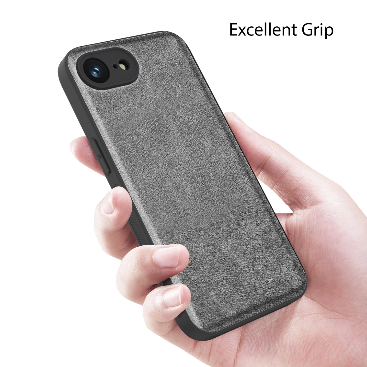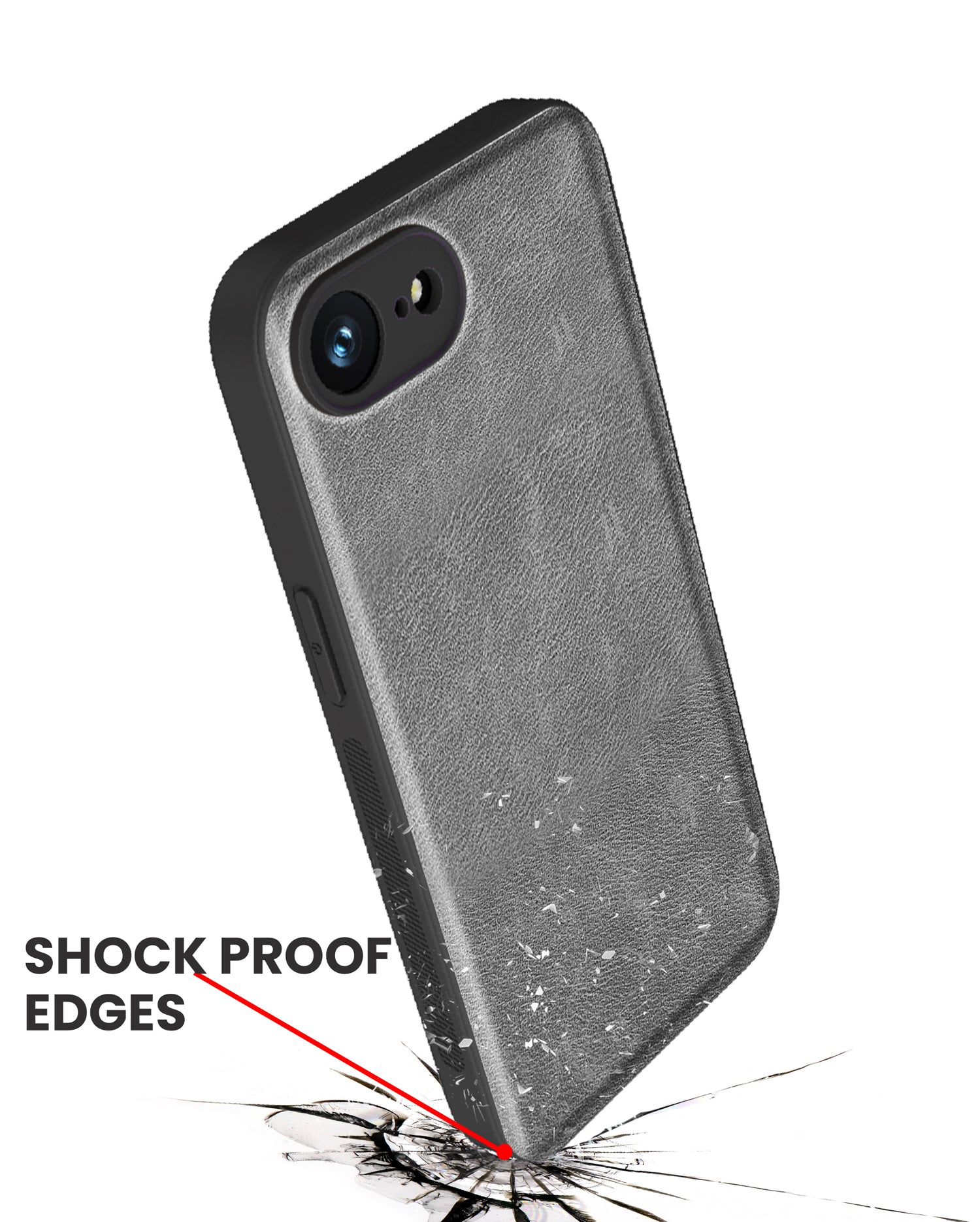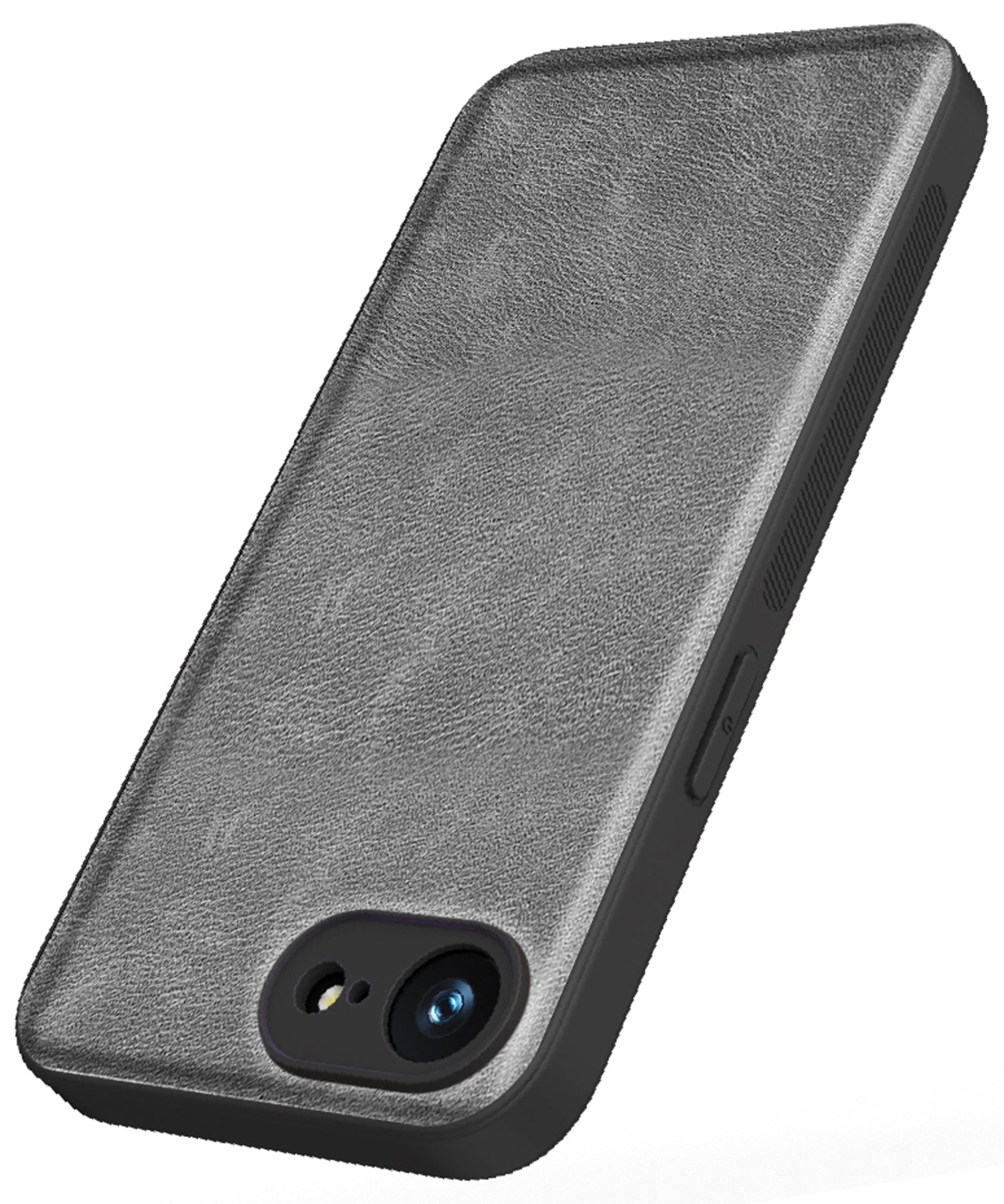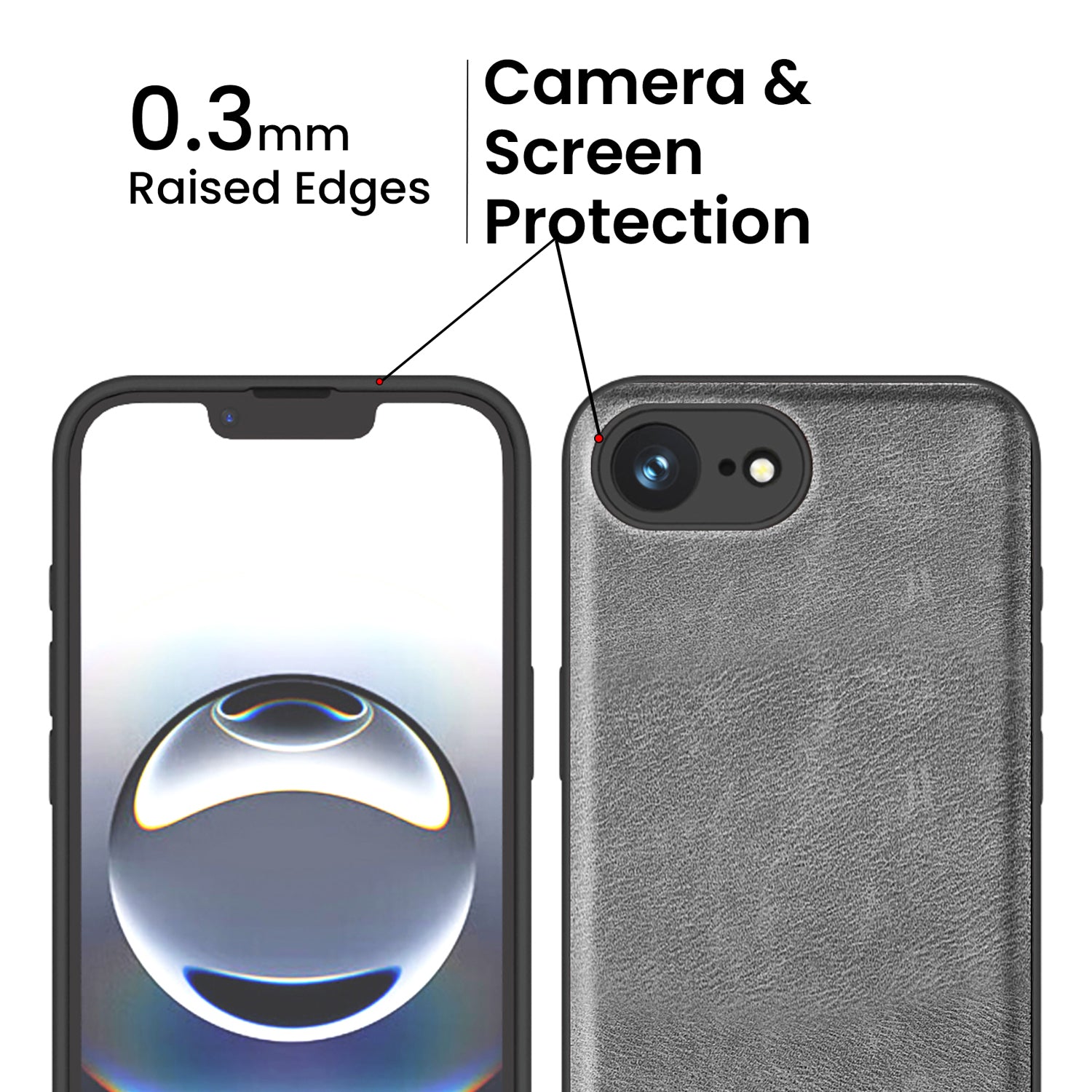 Mobizang Tux Leather Back Cover for Apple iPhone 16E | Slim Shockproof Camera Protection Bumper Case (Grey)