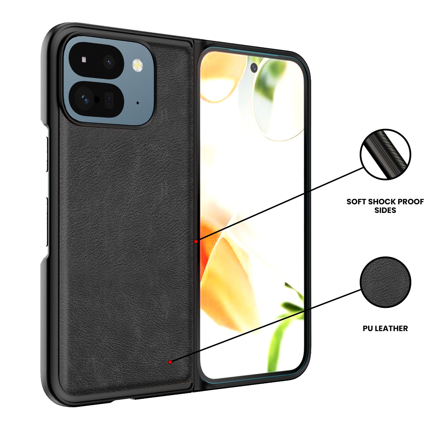 Mobizang Tux Leather Back Cover for Google Pixel 9 Pro Fold | Slim Shockproof Camera Protection Bumper Case (Black)