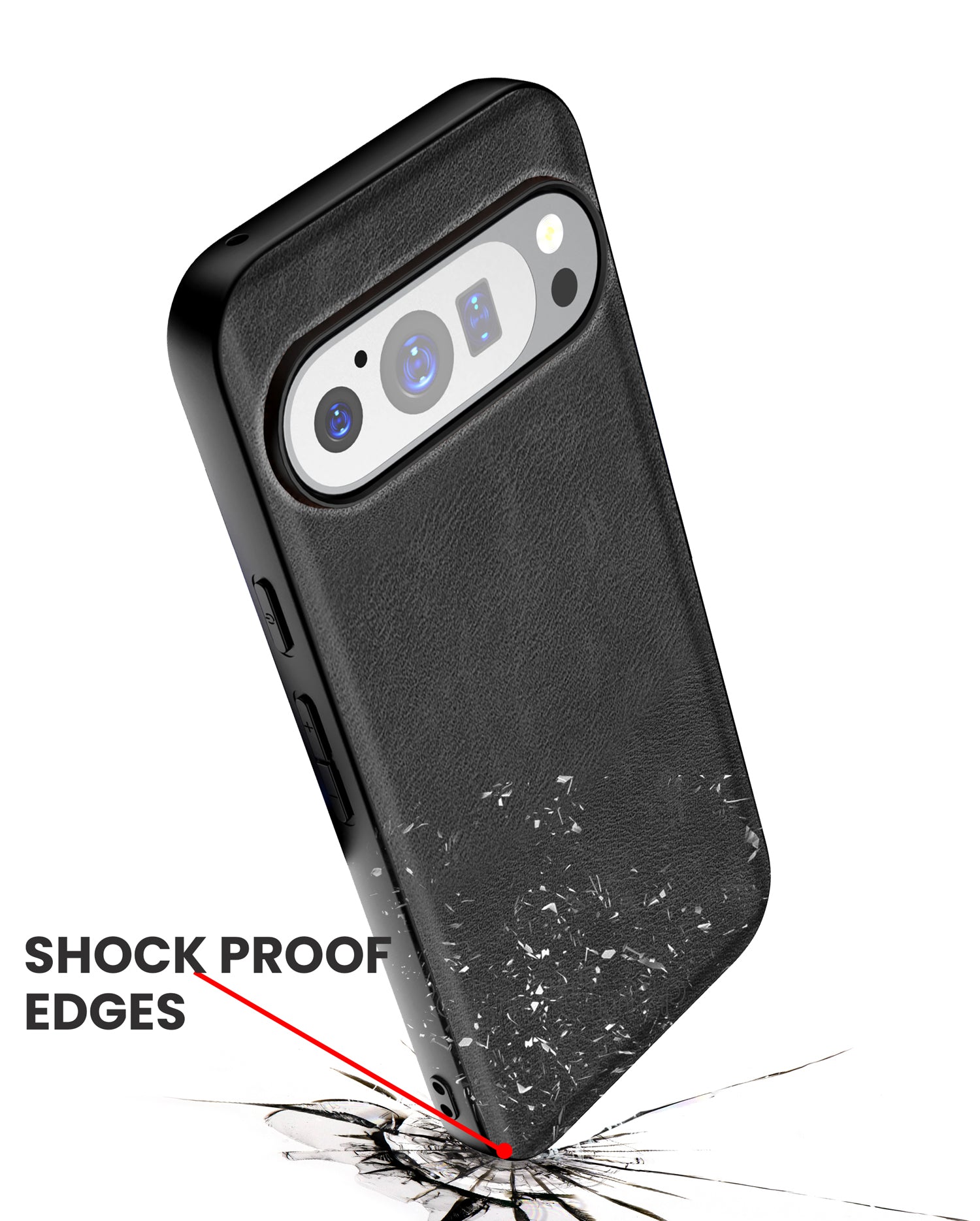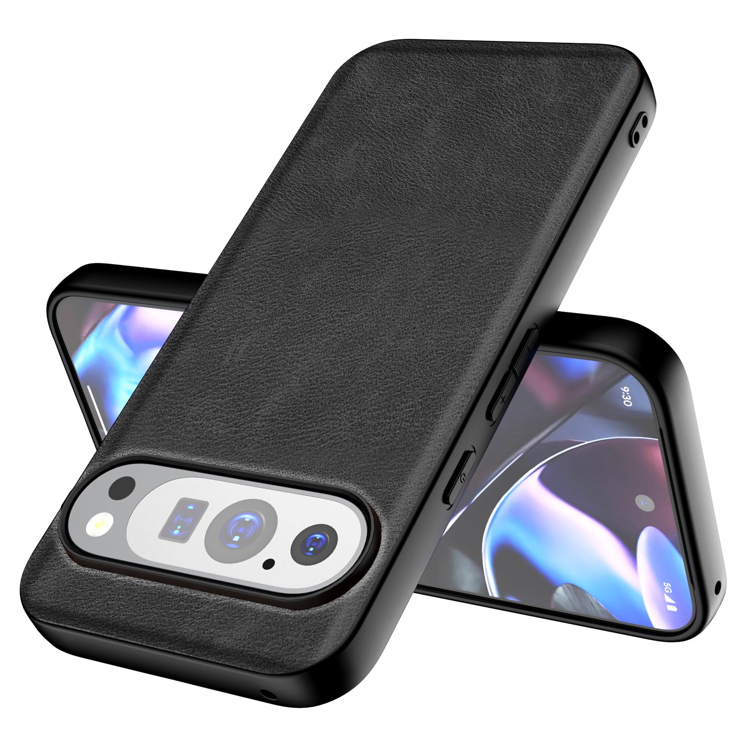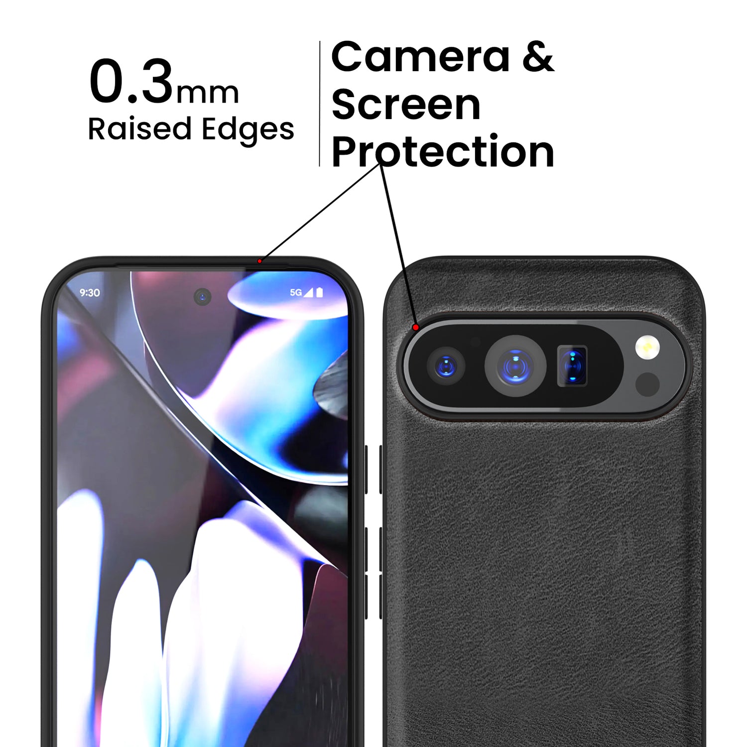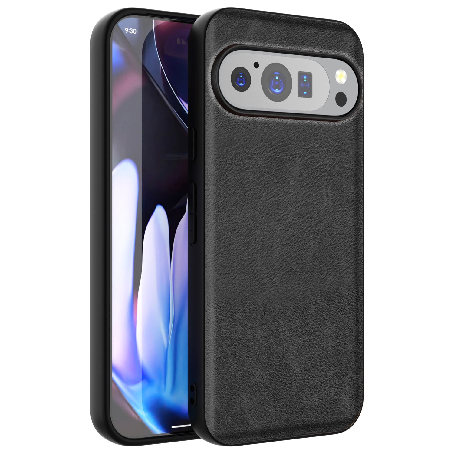 Mobizang Tux Leather Back Cover for Google Pixel 9 Pro XL | Slim Shockproof Camera Protection Bumper Case (Black)