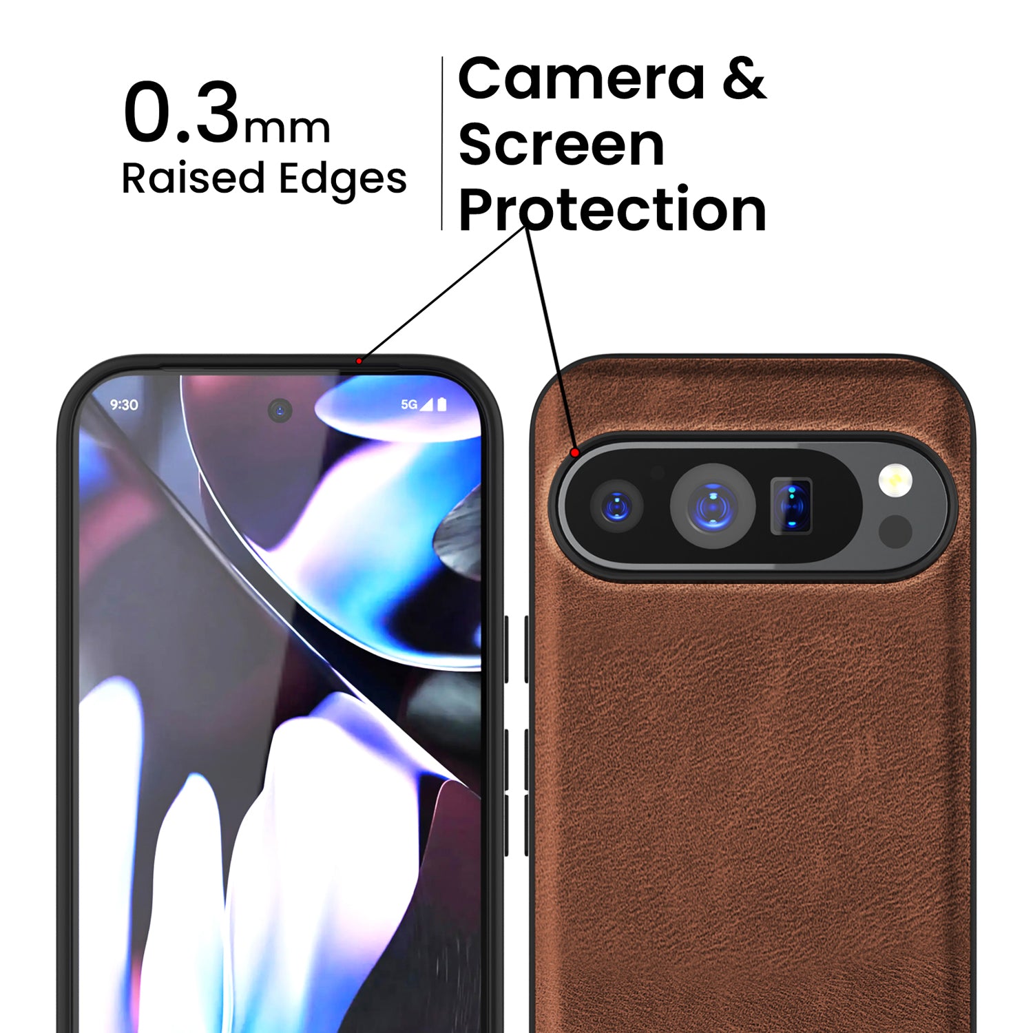 Mobizang Tux Leather Back Cover for Google Pixel 9 Pro XL | Slim Shockproof Camera Protection Bumper Case (Brown)
