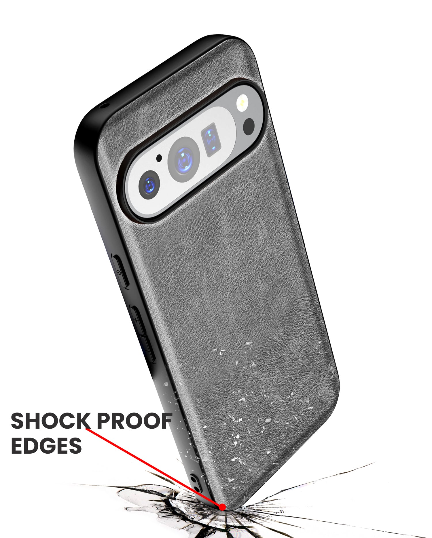 Mobizang Tux Leather Back Cover for Google Pixel 9 Pro XL | Slim Shockproof Camera Protection Bumper Case (Grey)