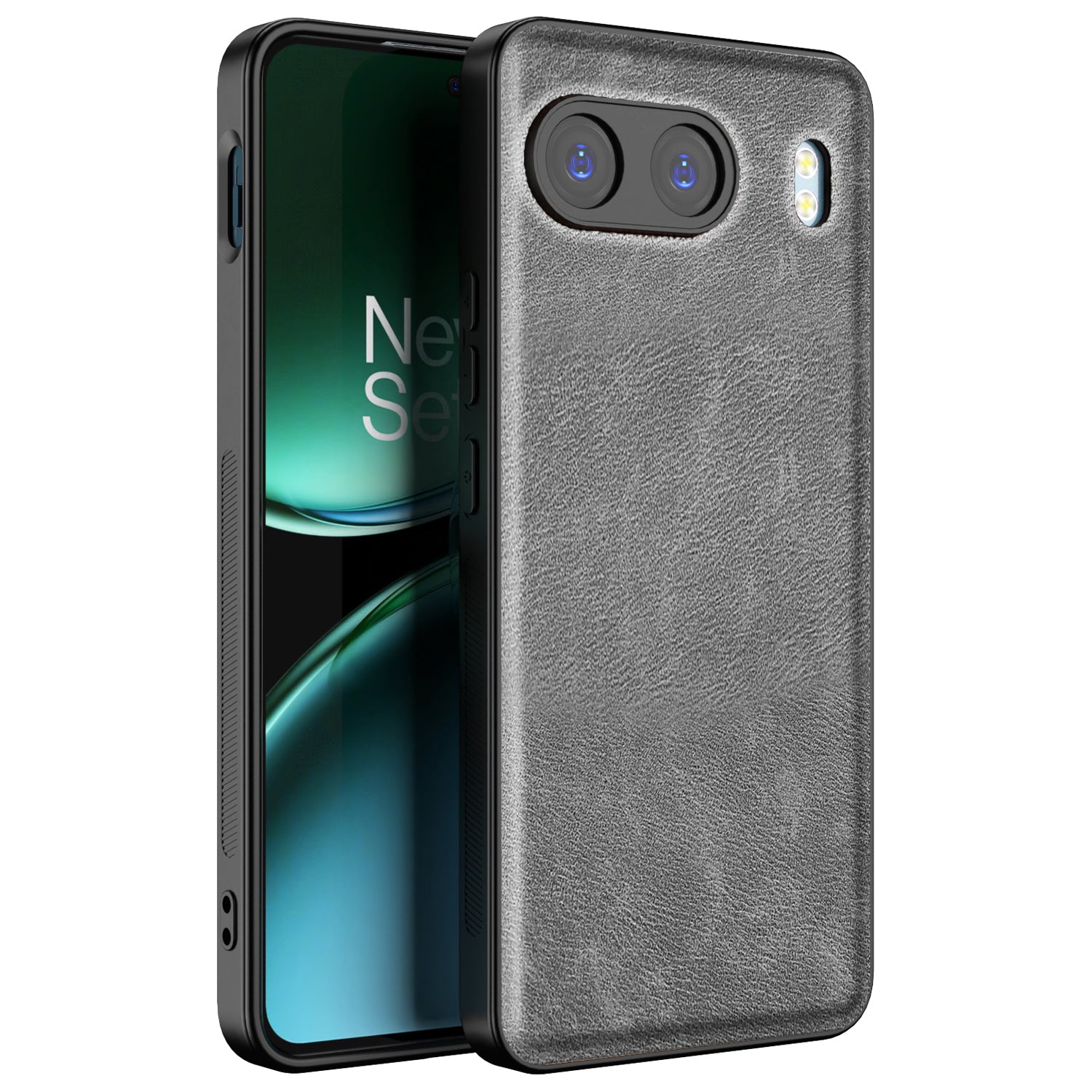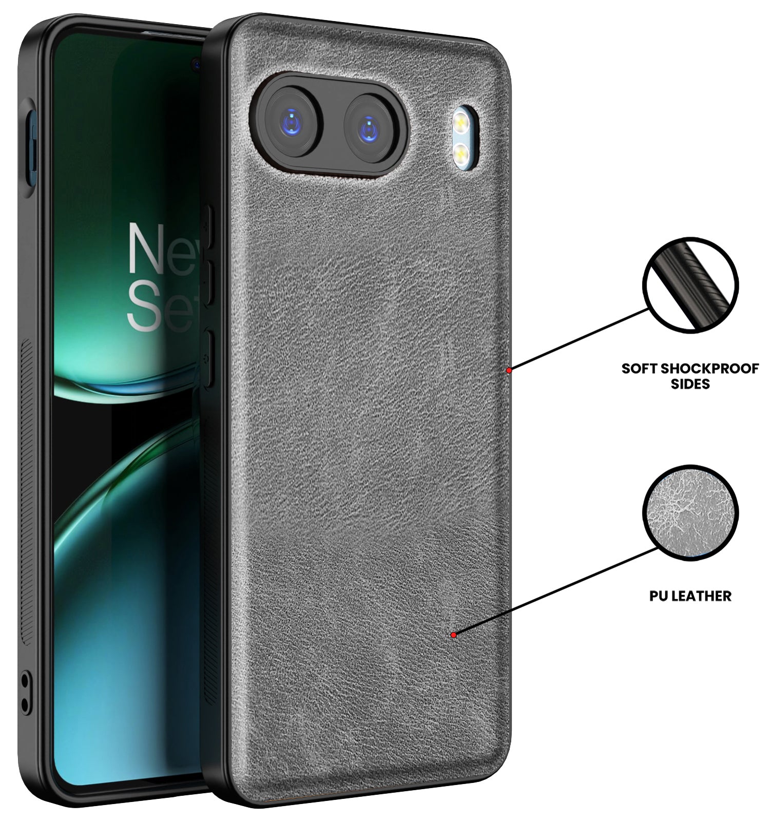 Mobizang Tux Leather Back Cover for OnePlus Nord 4 | Slim Shockproof Camera Protection Bumper Case (Grey)