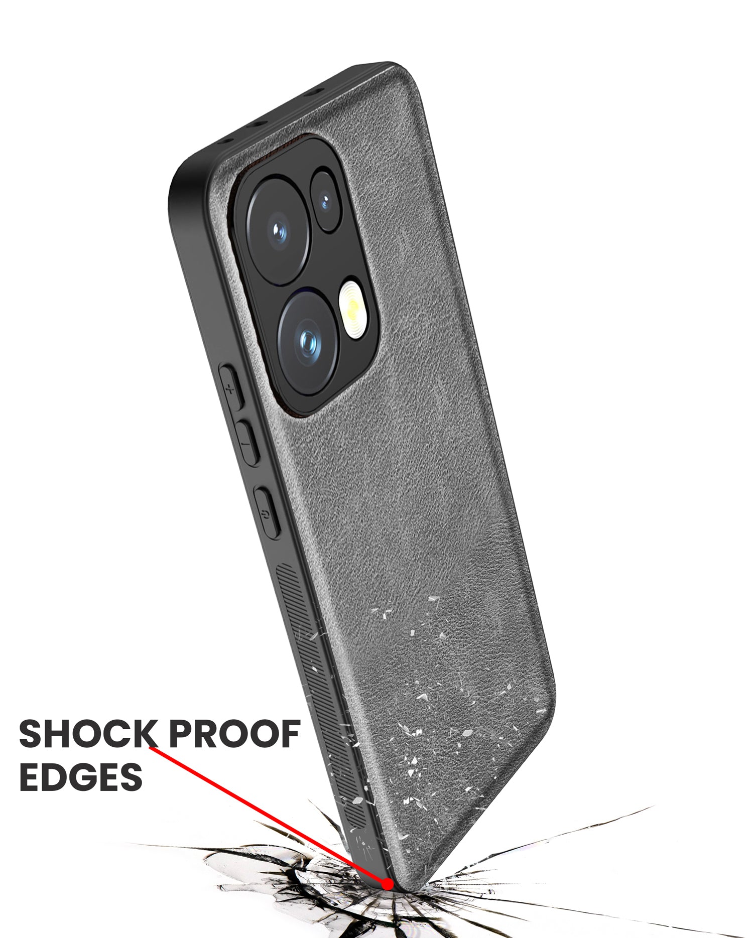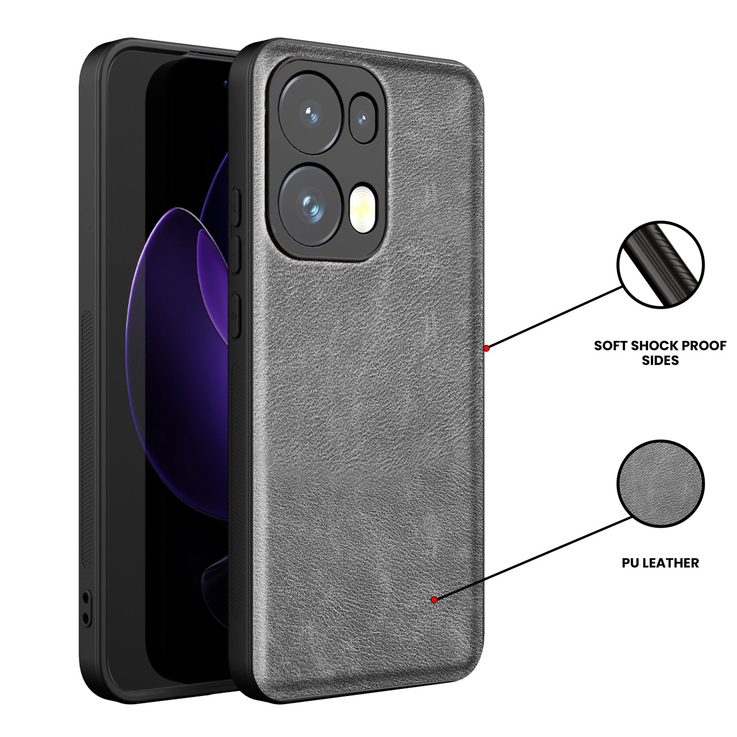 Mobizang Tux Leather Back Cover for Oppo Reno 13 Pro | Slim Shockproof Camera Protection Bumper Case (Grey)