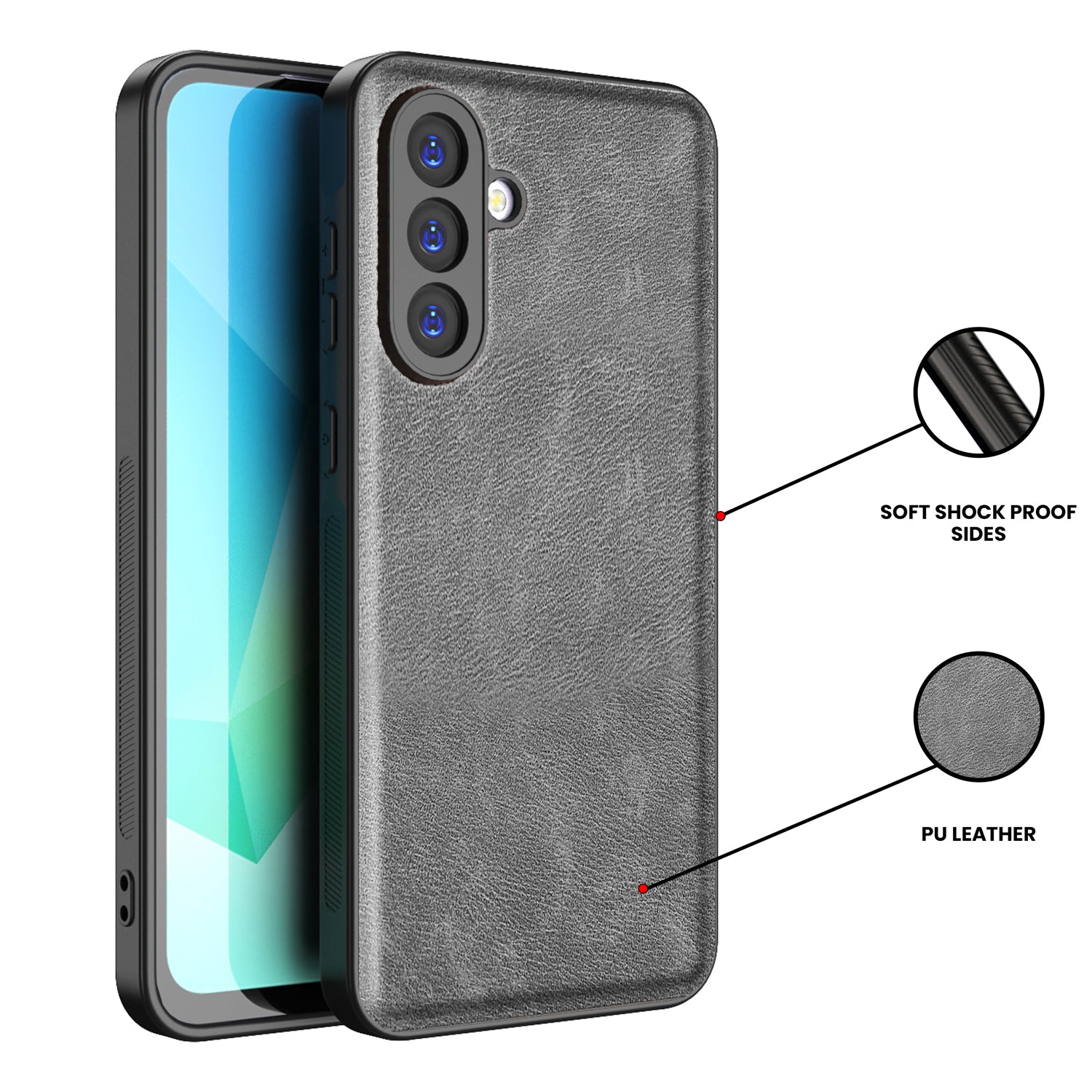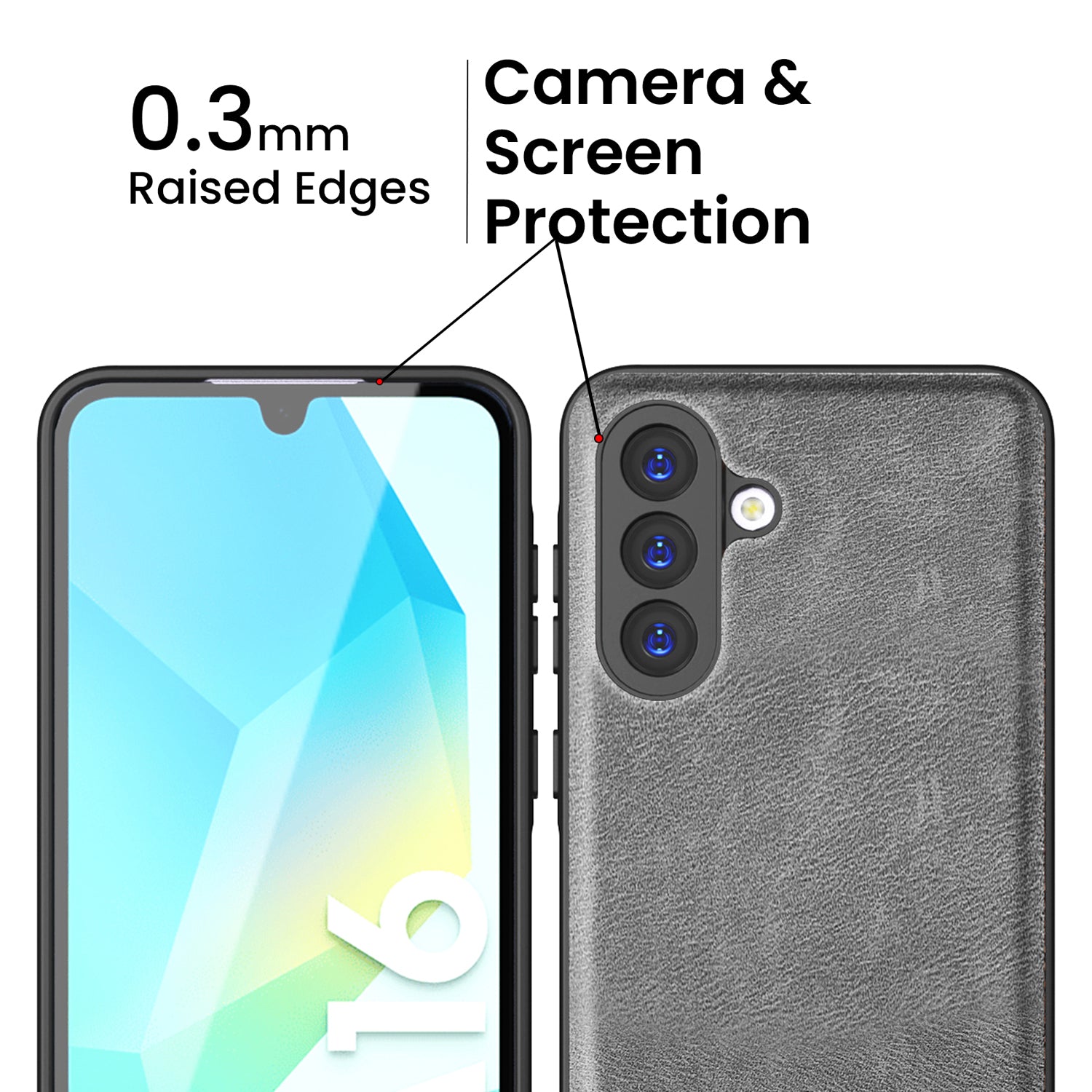 Mobizang Tux Leather Back Cover for Samsung Galaxy A16 | Slim Shockproof Camera Protection Bumper Case (Grey)