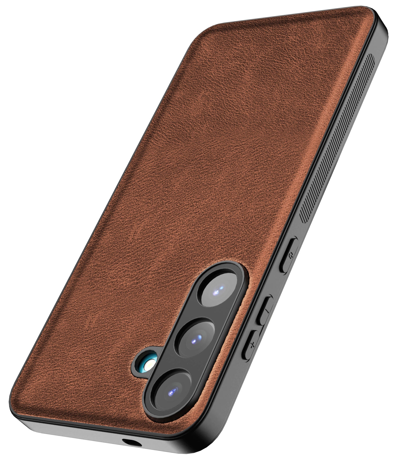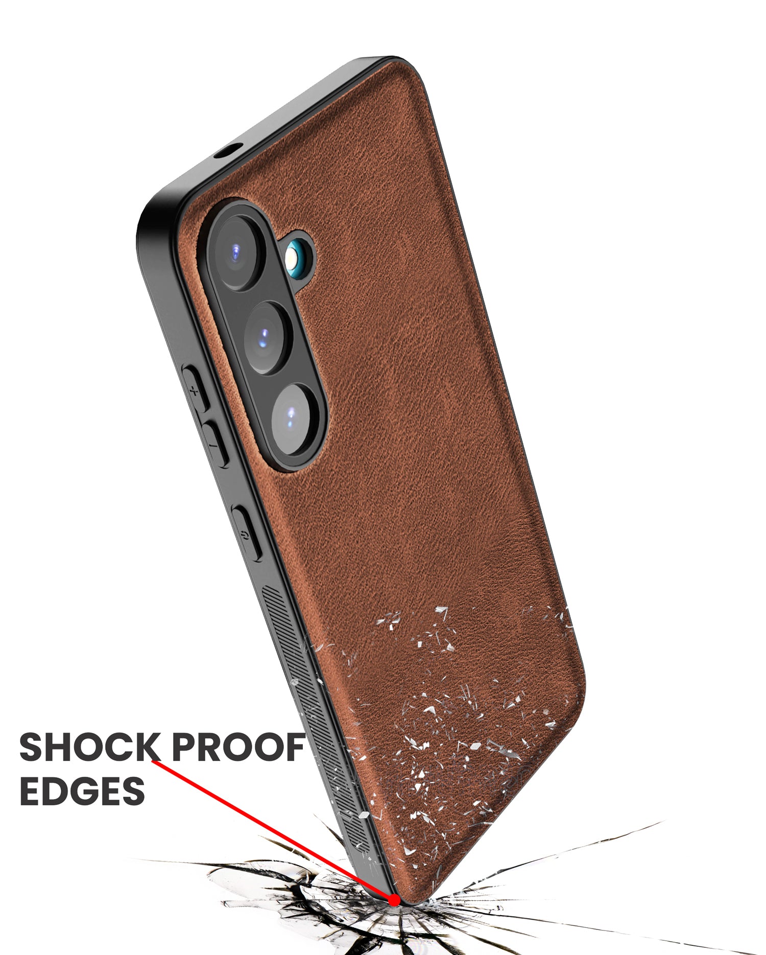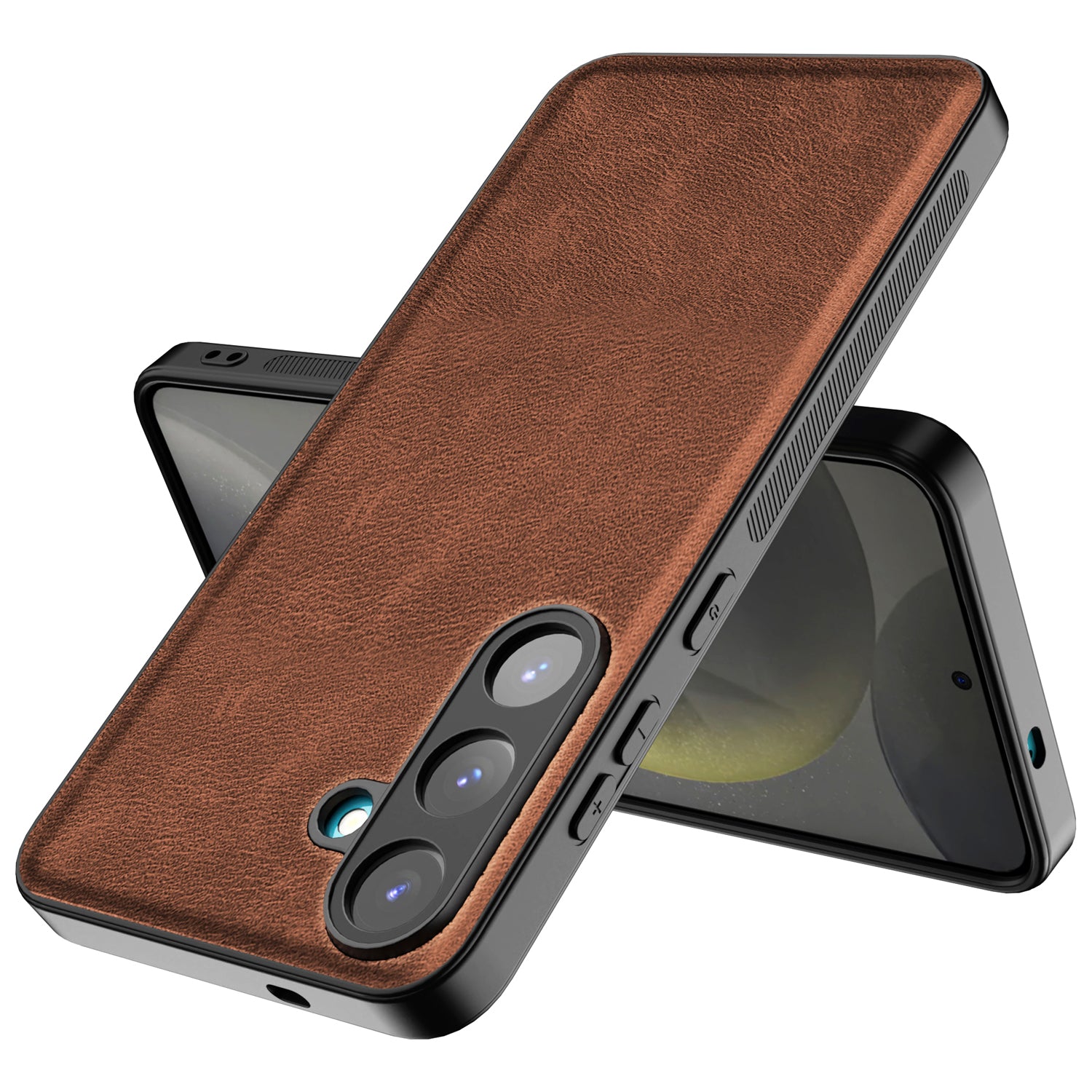 Mobizang Tux Leather Back Cover for Samsung Galaxy S25 Plus | Slim Shockproof Camera Protection Bumper Case (Brown)