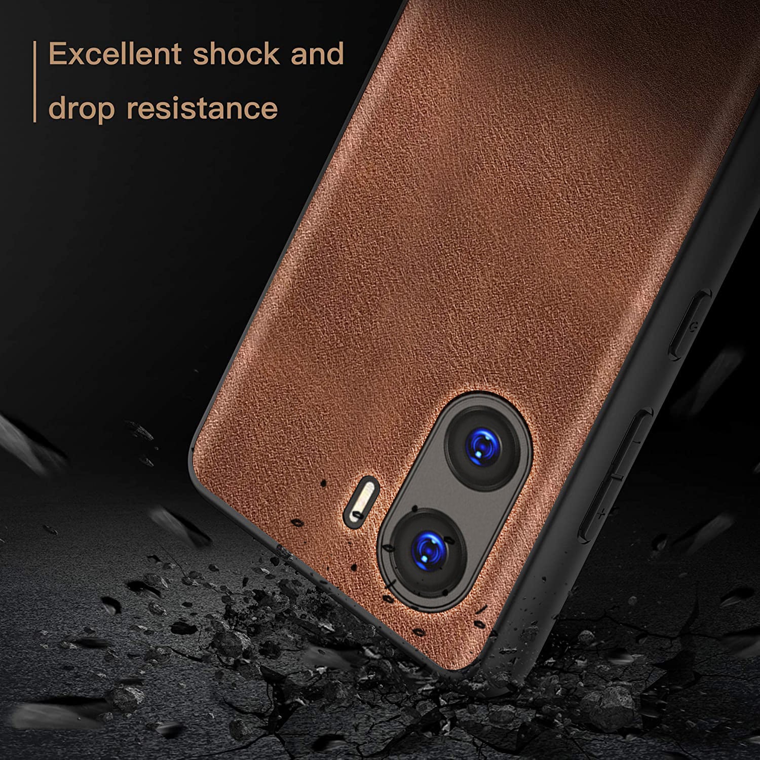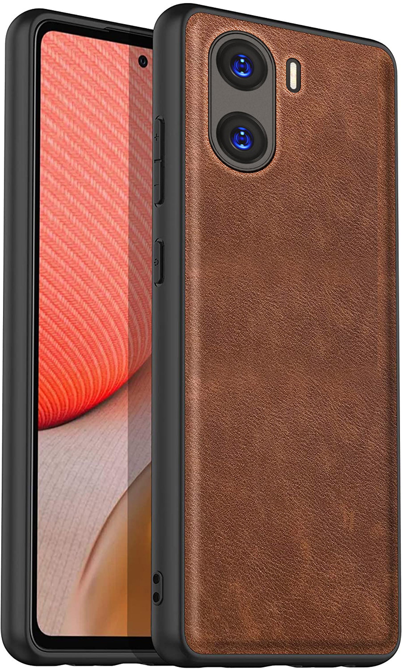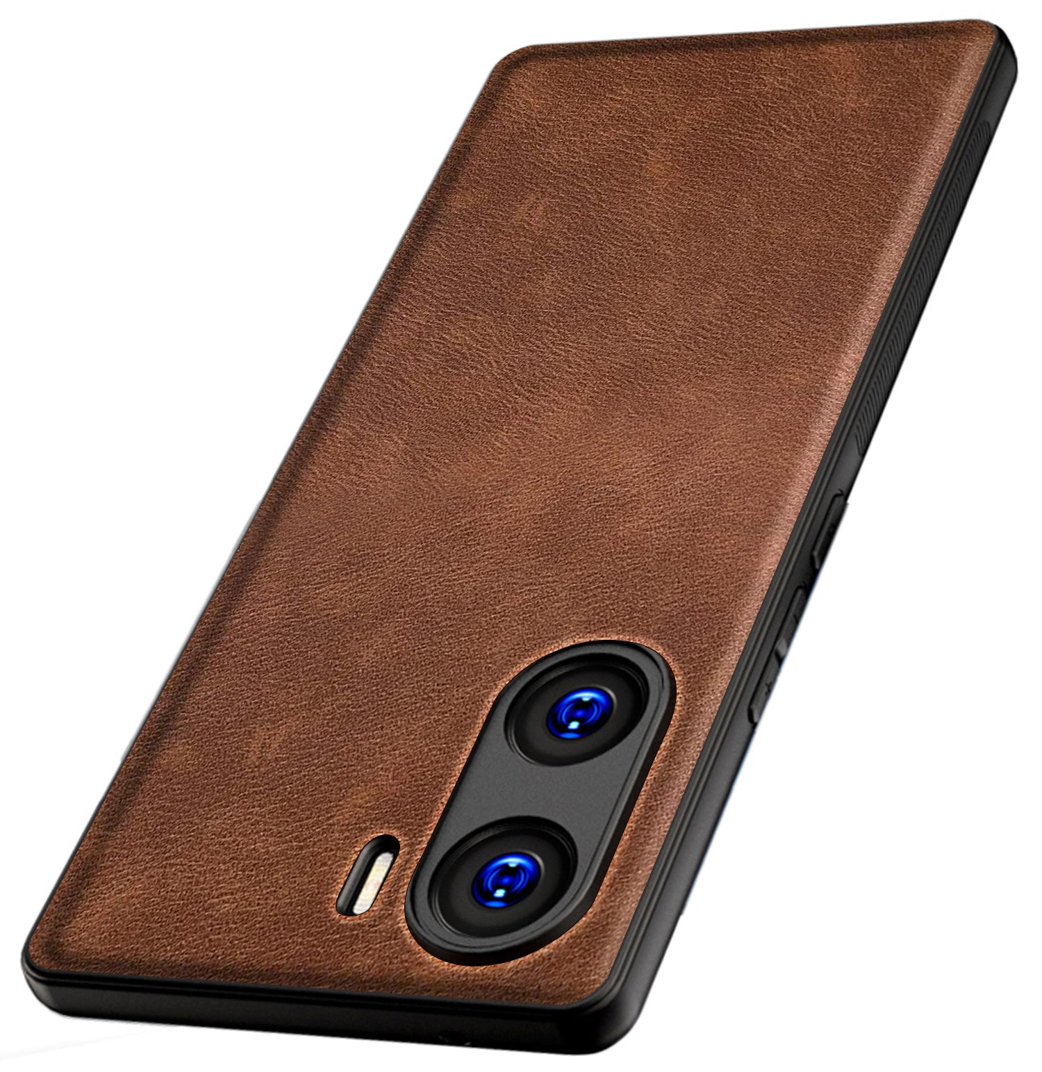Mobizang Tux Leather Back Cover for Vivo V29E | Slim Shockproof Camera Protection Bumper Case (Brown)