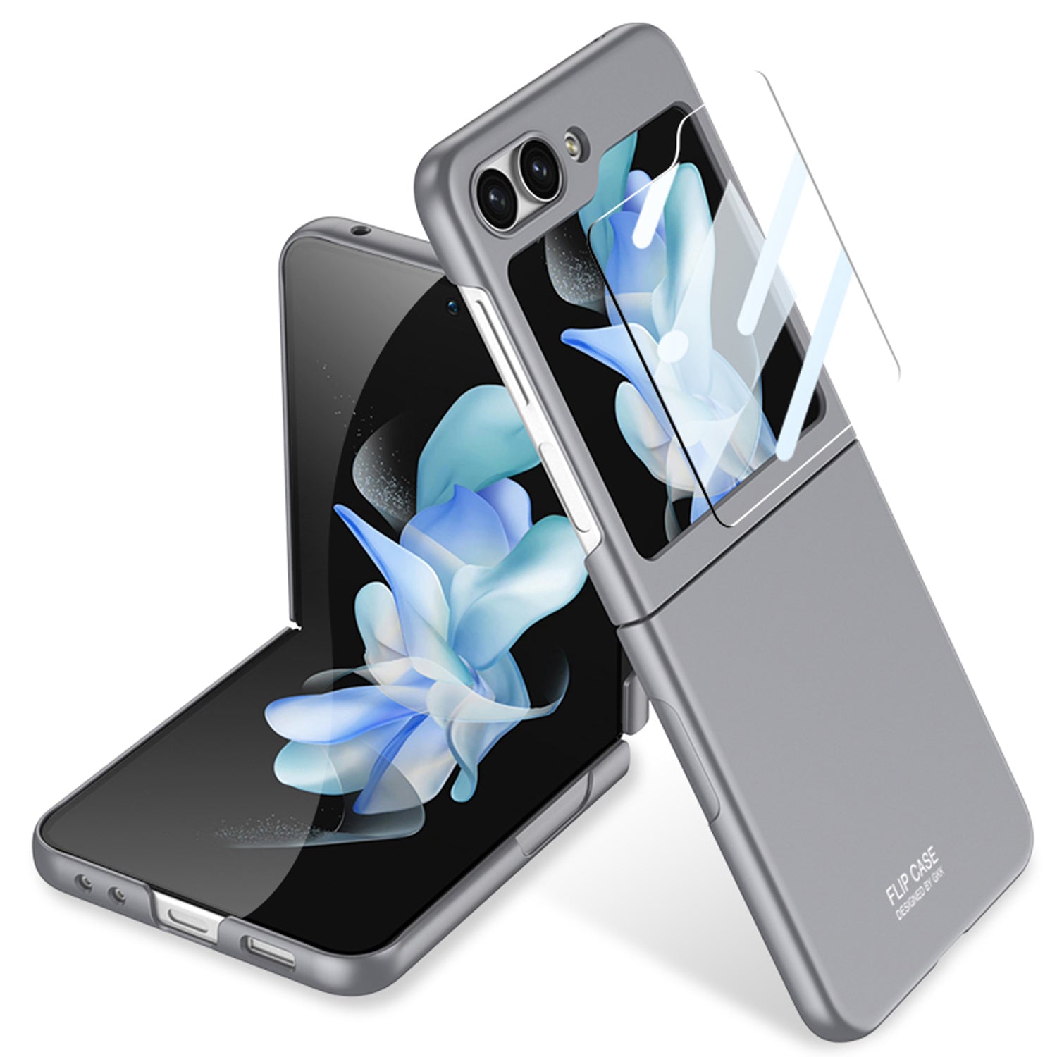 Mobizang Ultra Thin Back Case for Samsung Galaxy Z Flip 5 with Inbuilt Glass | Full Body Protection Hard Back Cover , Grey