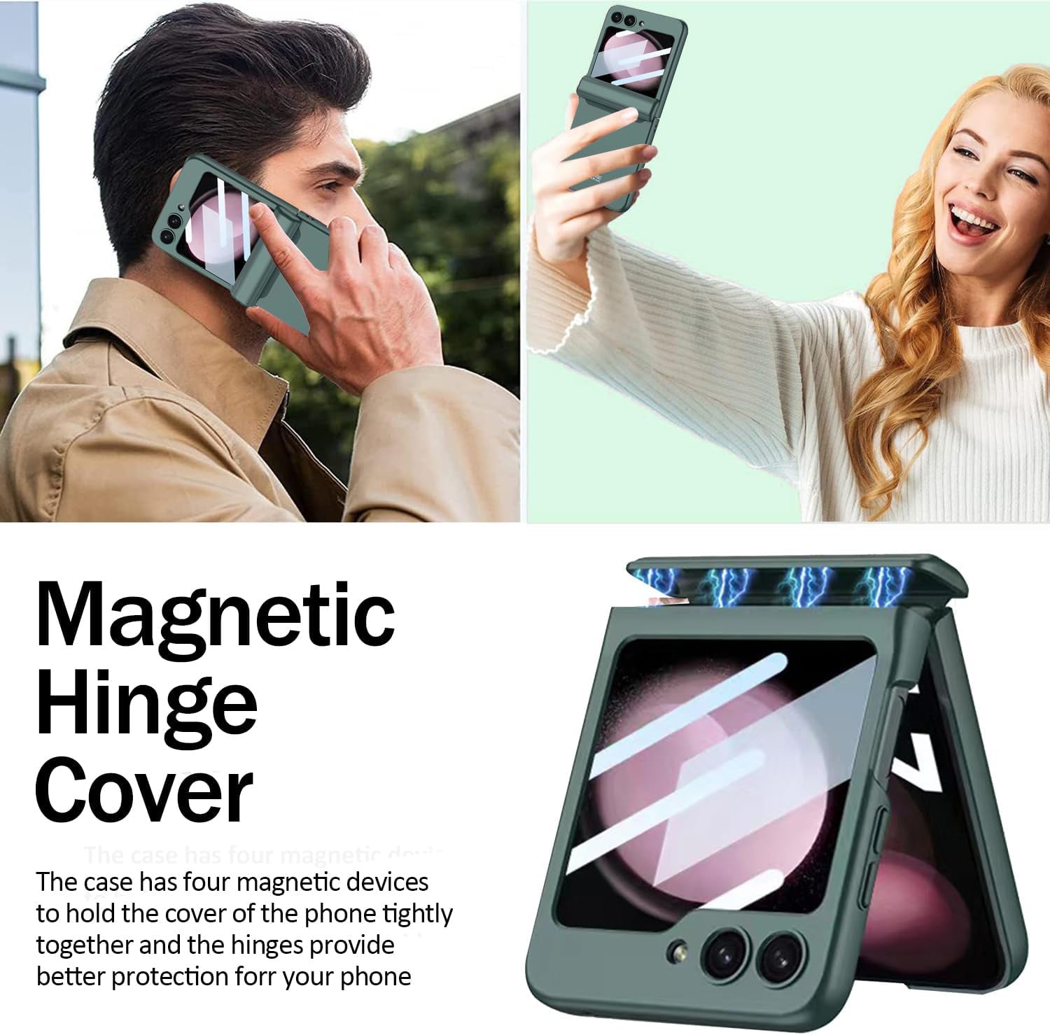 Mobizang Ultra Thin Back Cover for Galaxy Z Flip6 / Z Flip 6 | With [Magnetic Hinge Protection] and Inbuilt Glass Window Protection (Green)