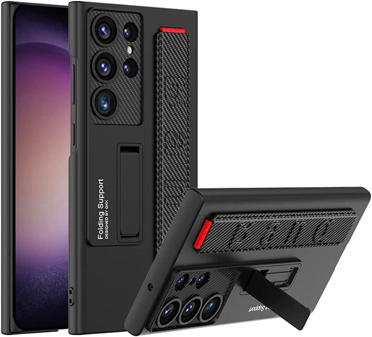 Mobizang Ultra Thin Band + Stand Back Case for Samsung S24 Ultra | Slim Camera Lens Protection Cover with Kickstand (Black)