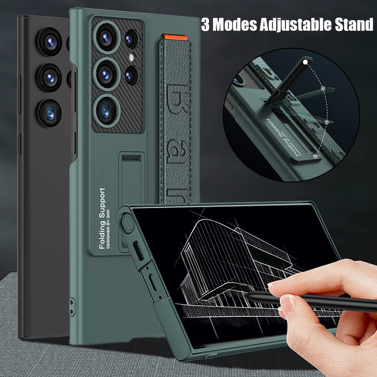 Mobizang Ultra Thin Band + Stand Back Case for Samsung S25 Ultra | Slim Camera Lens Protection Cover with Kickstand (Green)