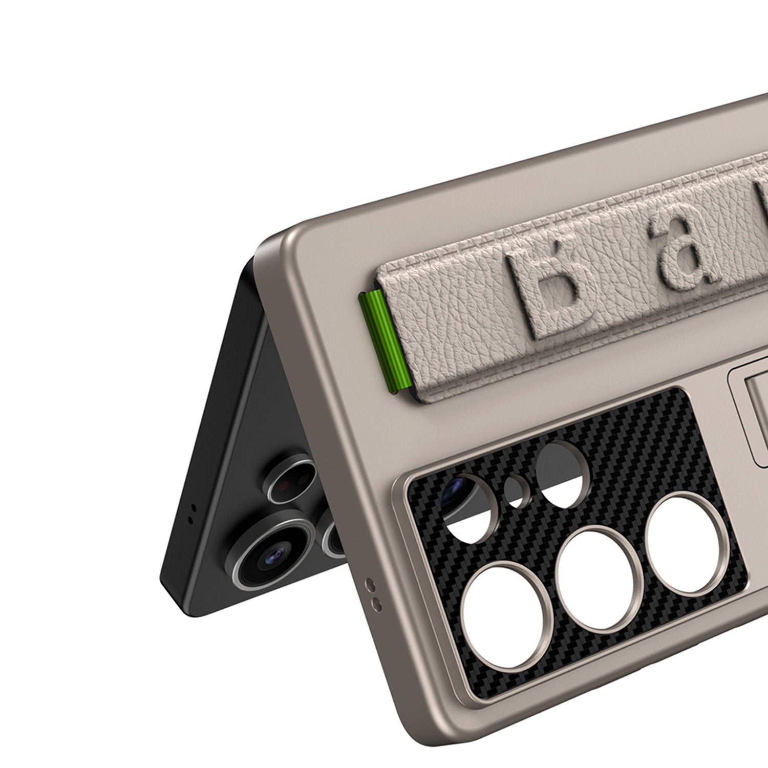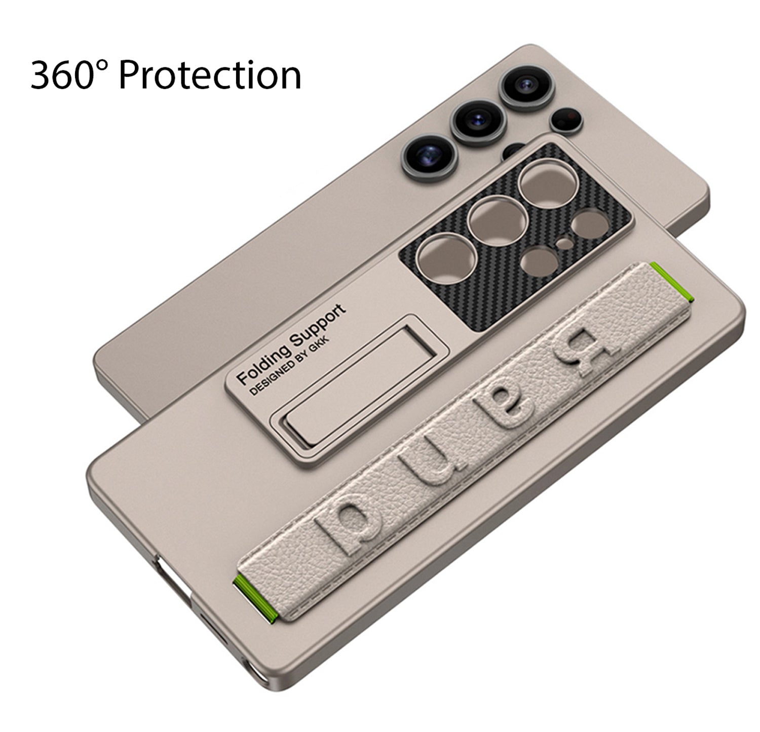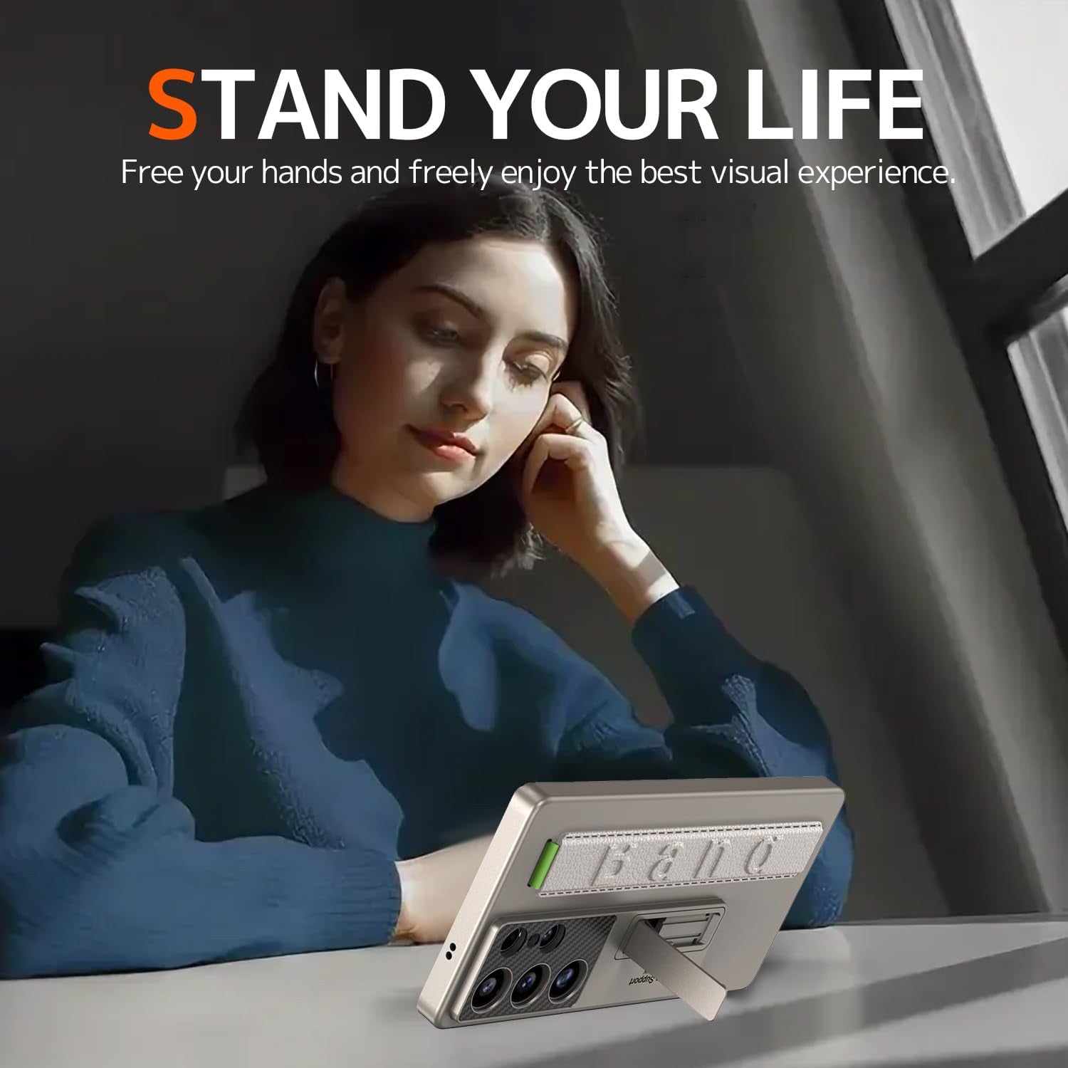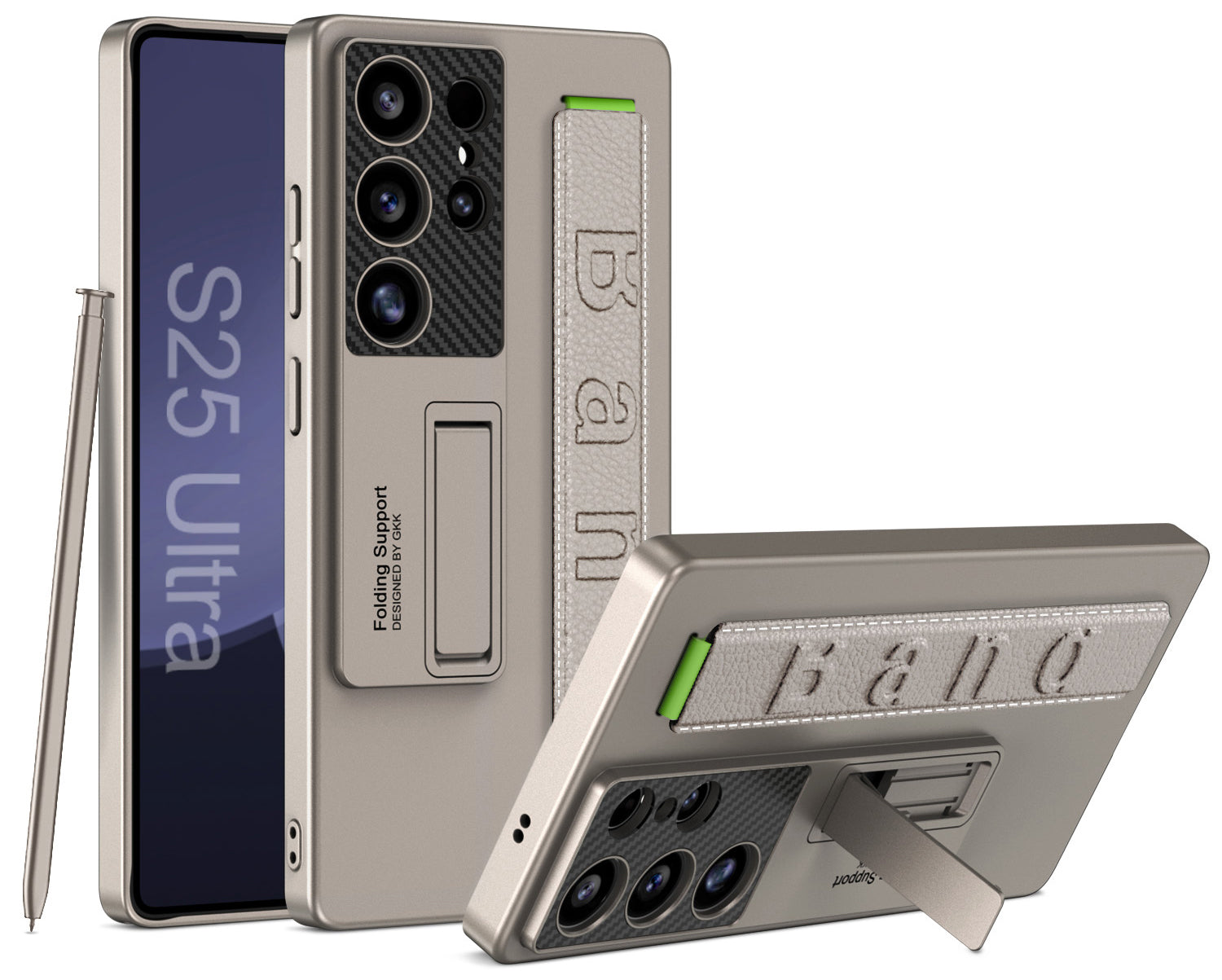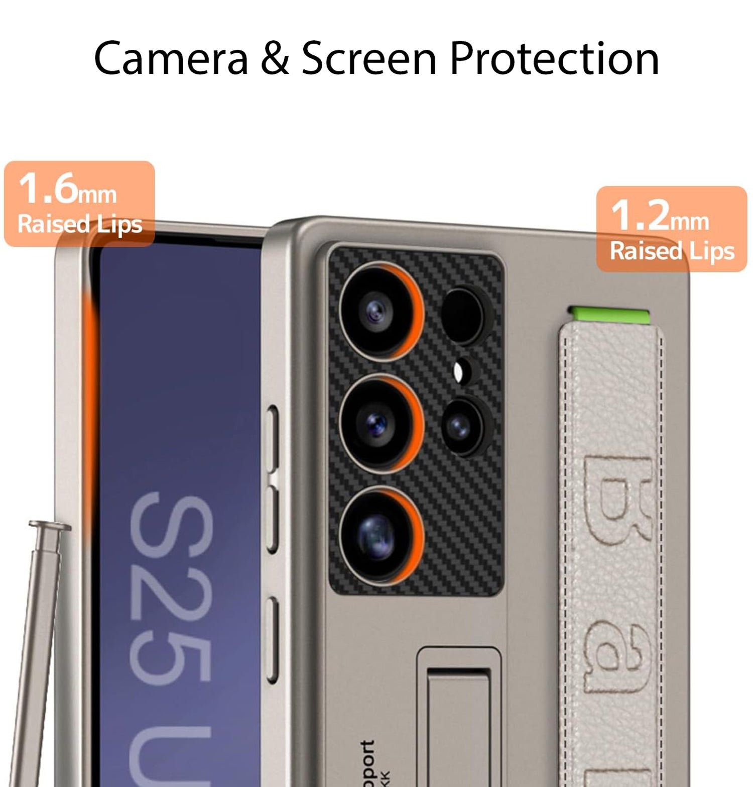 Mobizang Ultra Thin Band + Stand Back Case for Samsung S25 Ultra | Slim Camera Lens Protection Cover with Kickstand (Titanium)