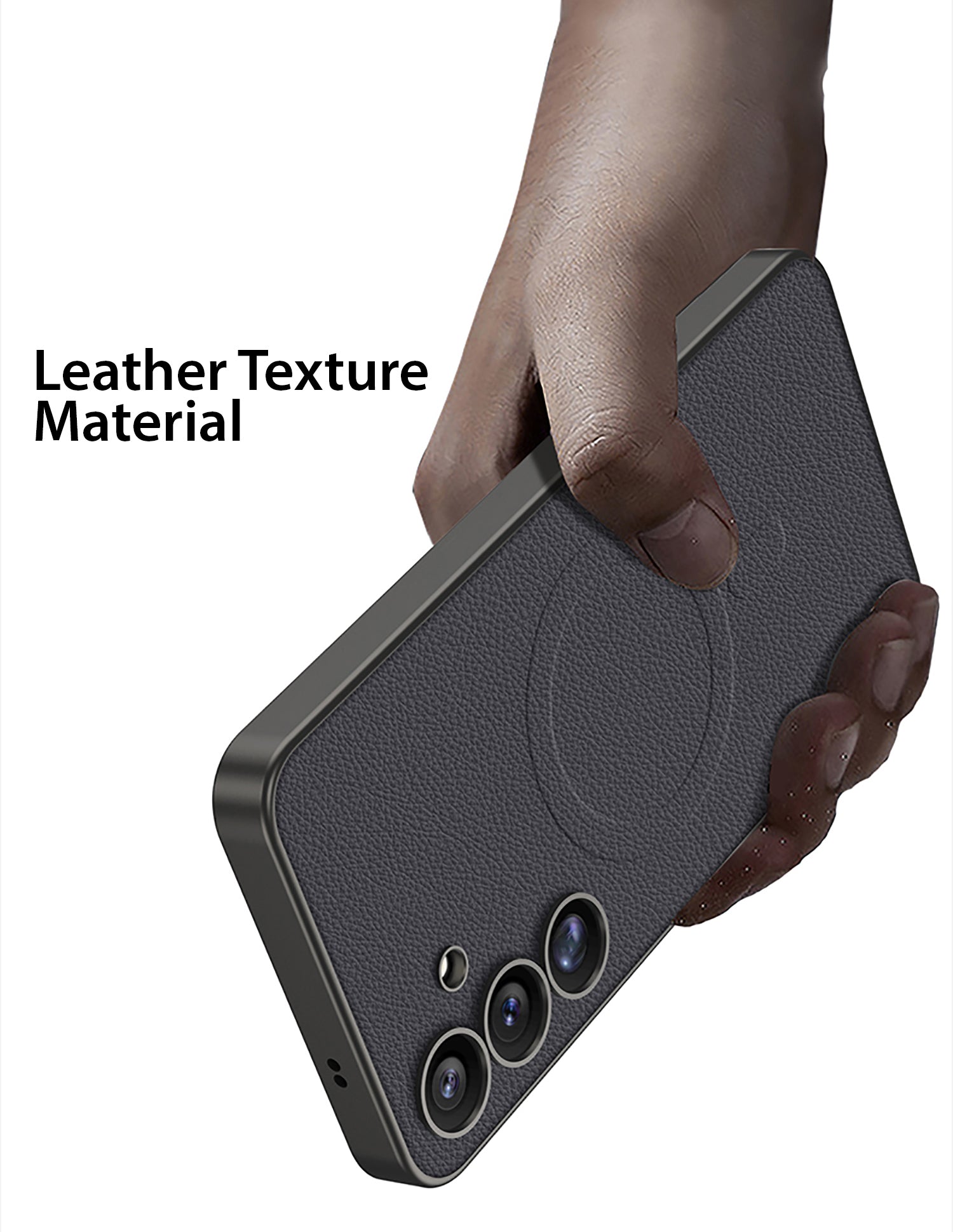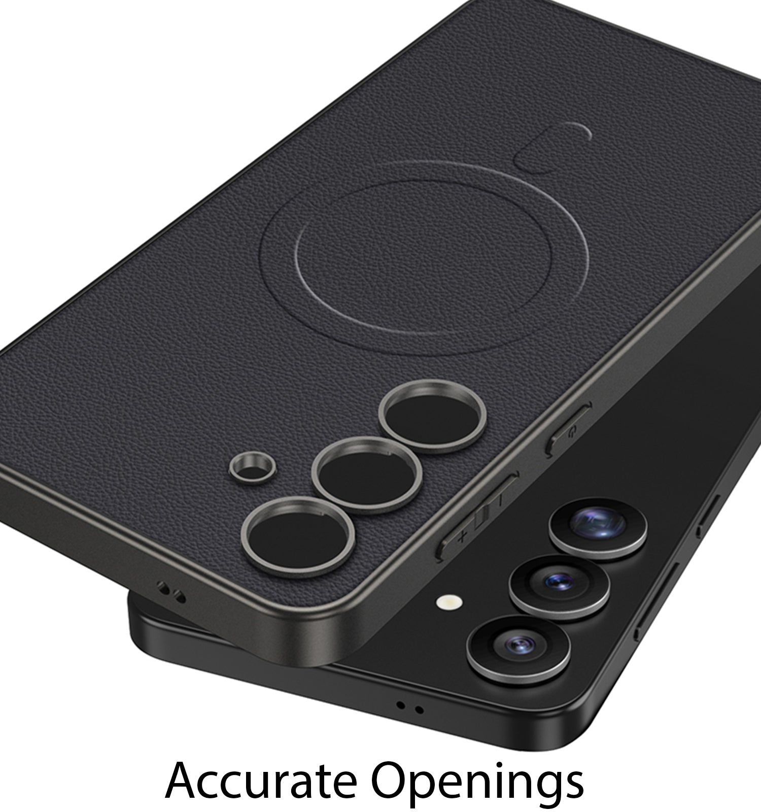 Mobizang Ultra Thin Leather & Magsafe Back Case for Samsung Galaxy S25 | with Wireless Charging Support Ring Full Body Protection Back Cover (Black)