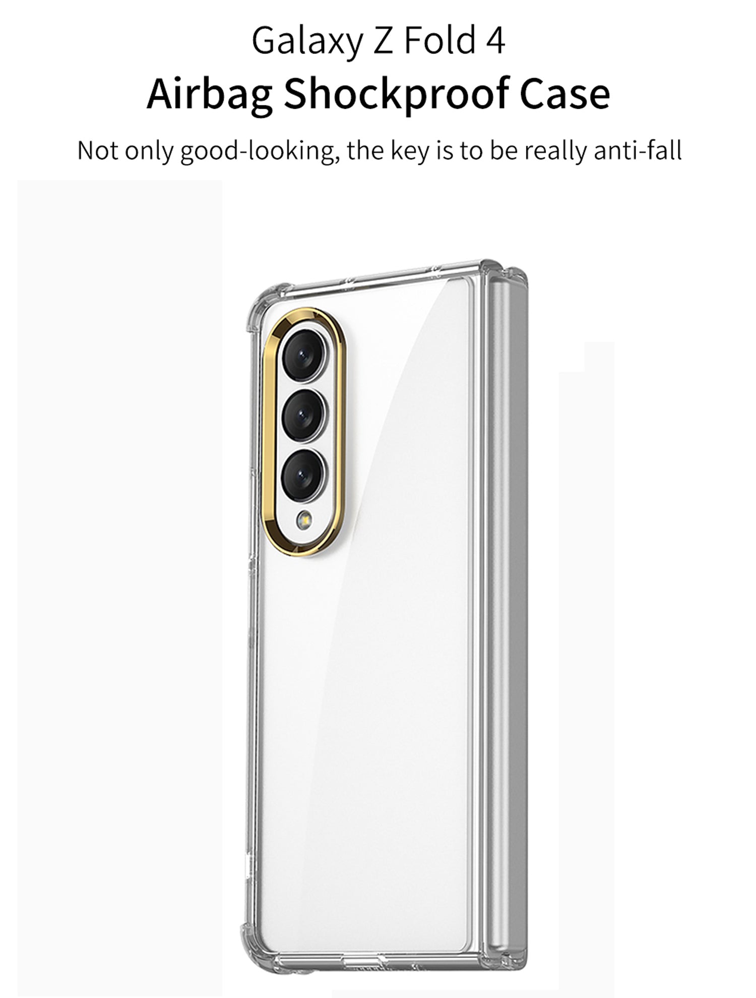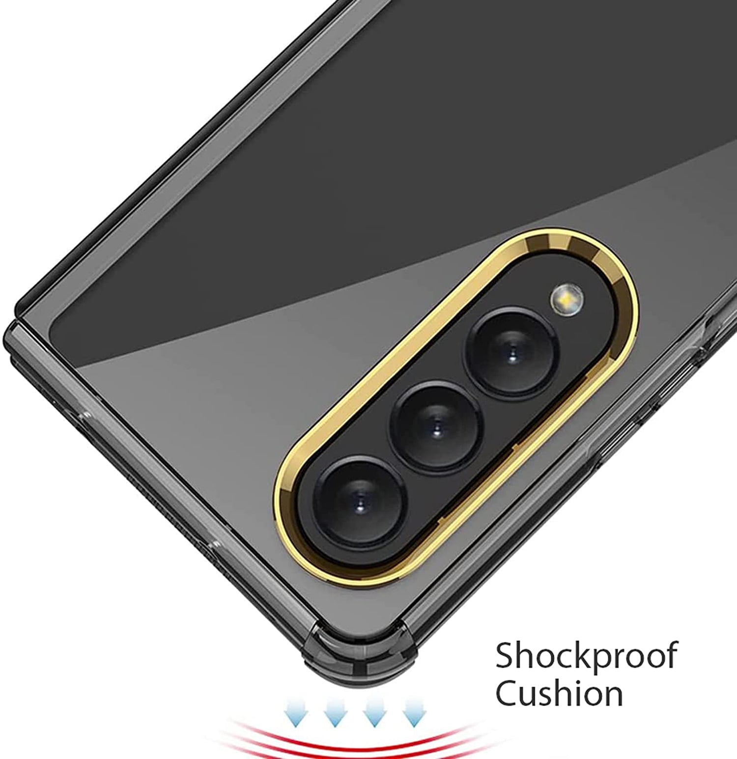Mobizang Ultra Thin PC Case with Golden Lens Ring for Galaxy Z Fold4 - Clear