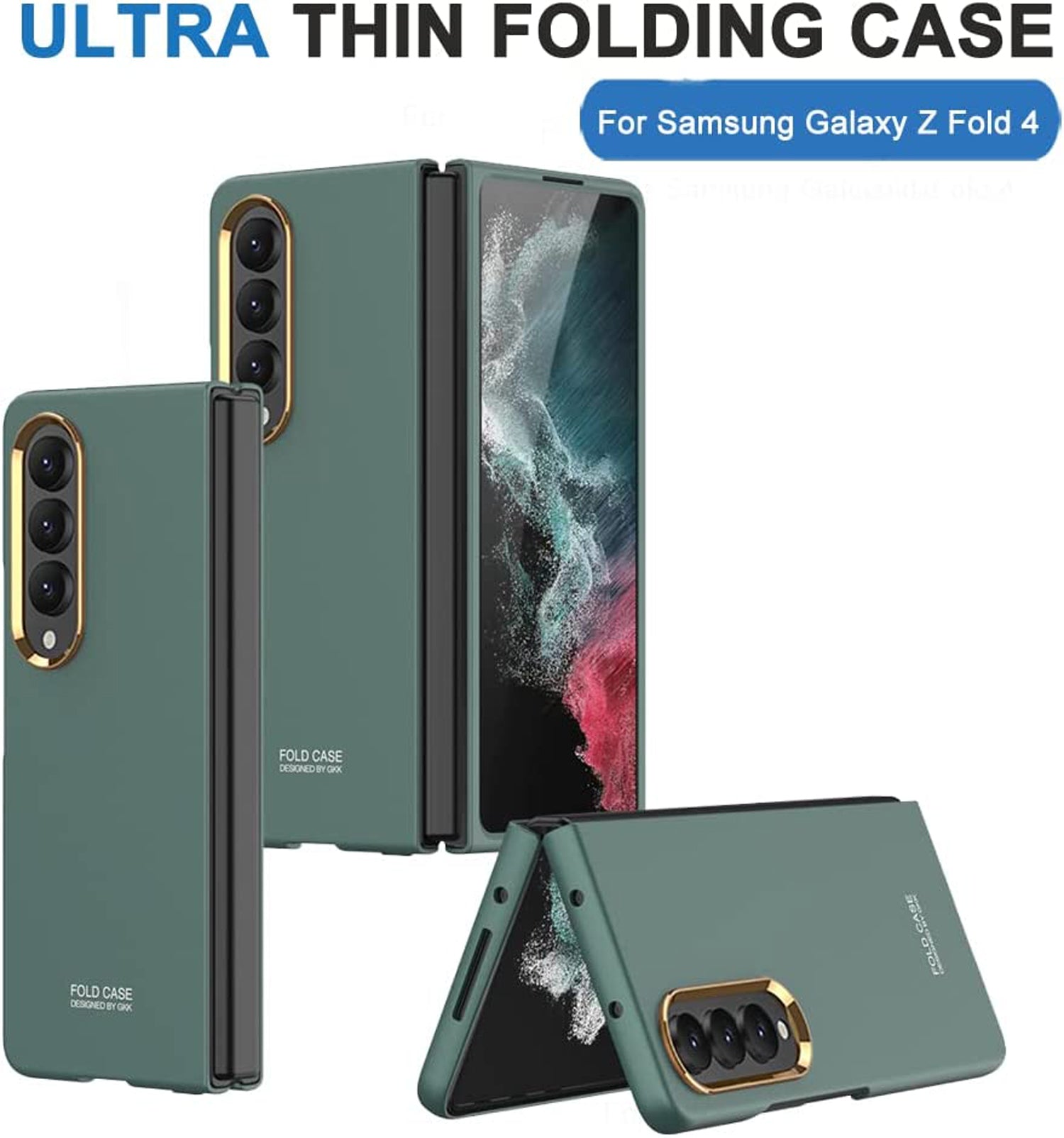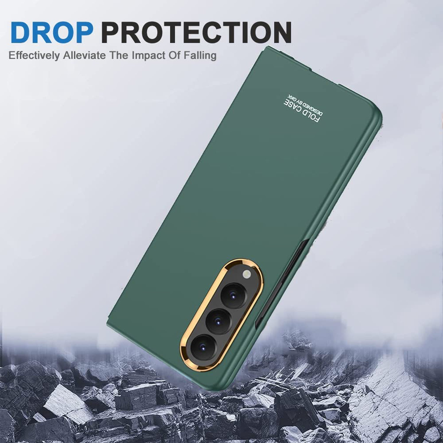 Mobizang Ultra Thin PC Case with Golden Lens Ring for Galaxy Z Fold4 - Green