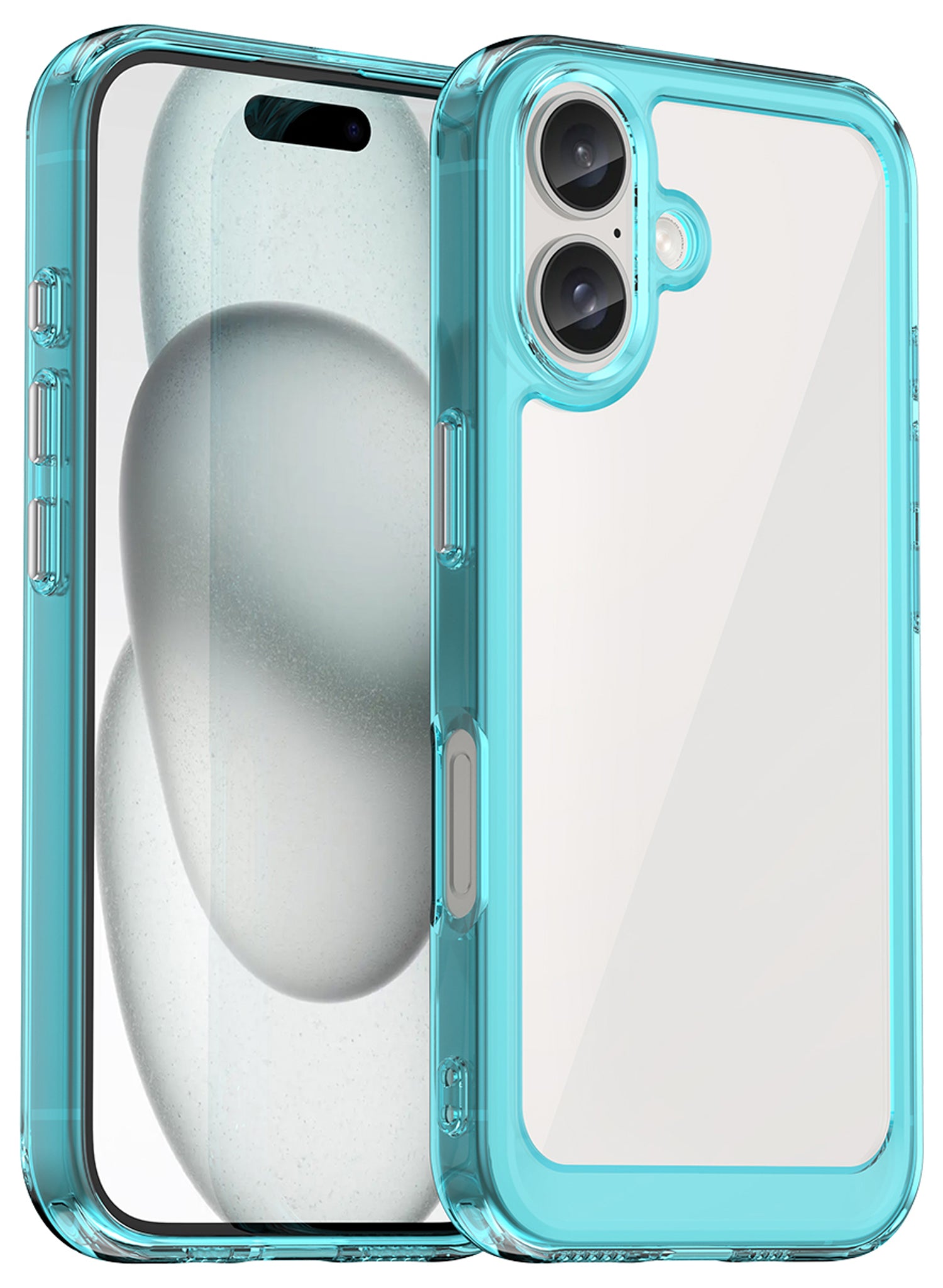 Mobizang Unicorn Acrylic Clear Back Cover For Apple iPhone 16 Plus | Slim Shockproof [Military Grade Protection] Hybrid Bumper Case (Blue Sides)